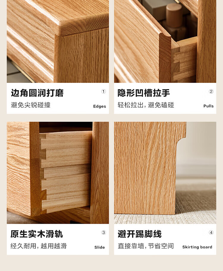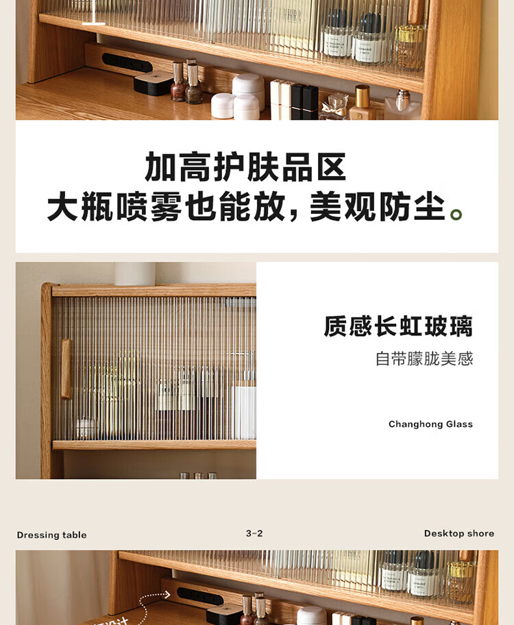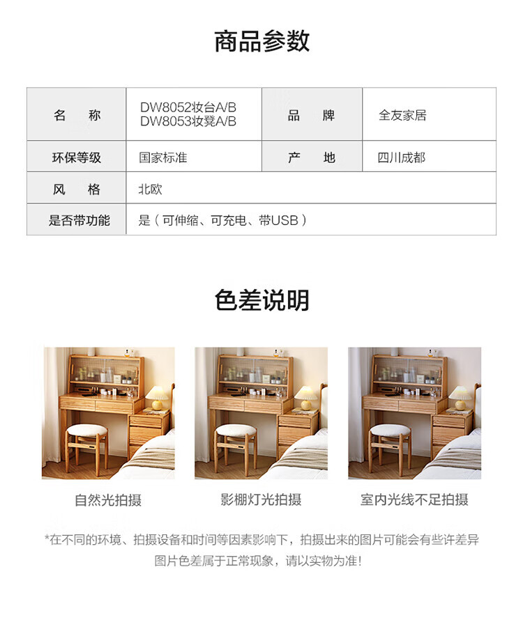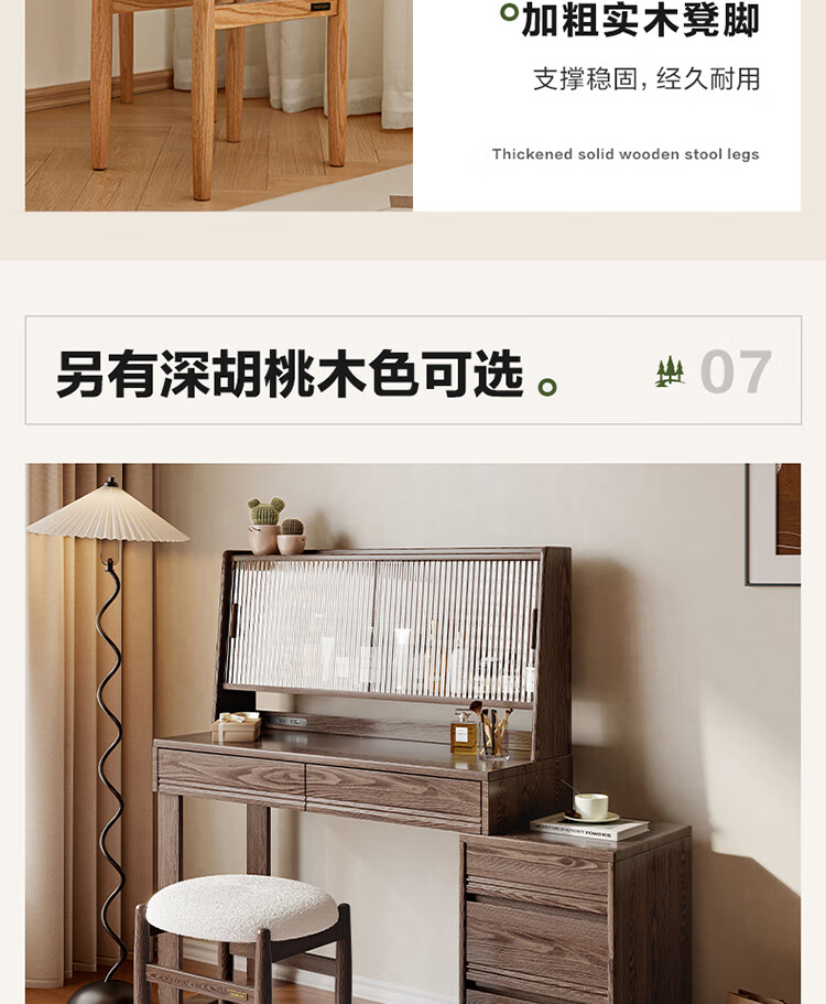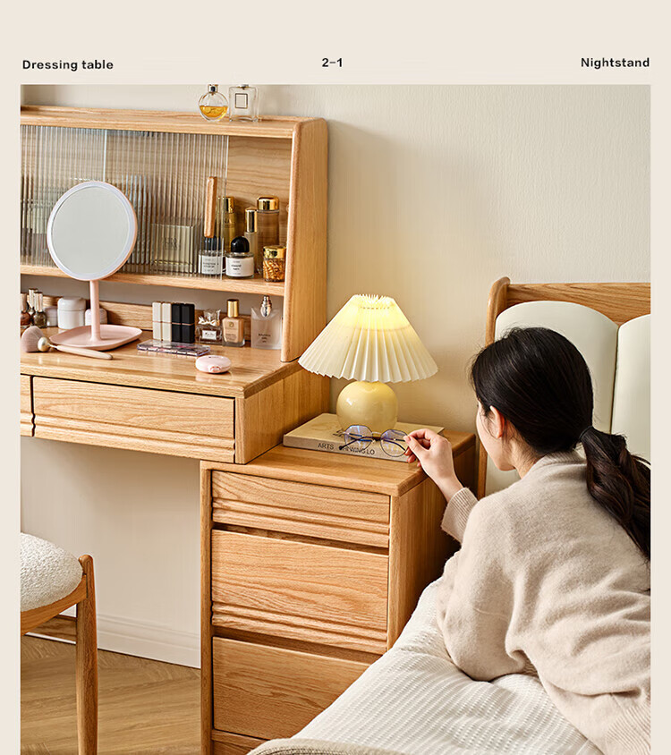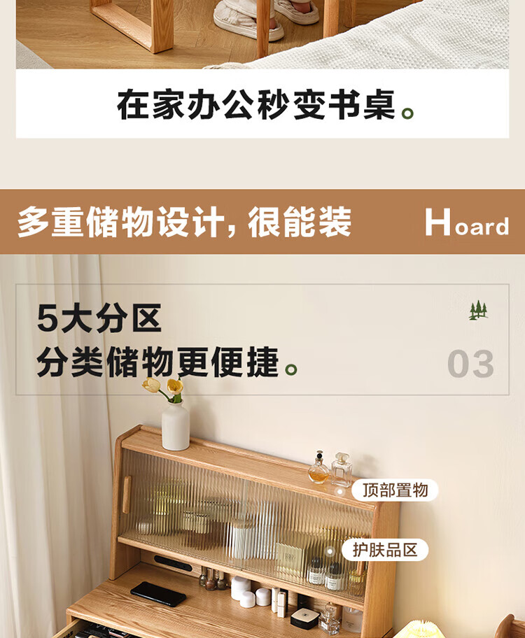 Quanyou (QUANU) home multifunctional solid wood retractable dressing table integrated bedroom bedside table desk cosmetics storage cabinet red oak 0.9m dressing table A + makeup stool A