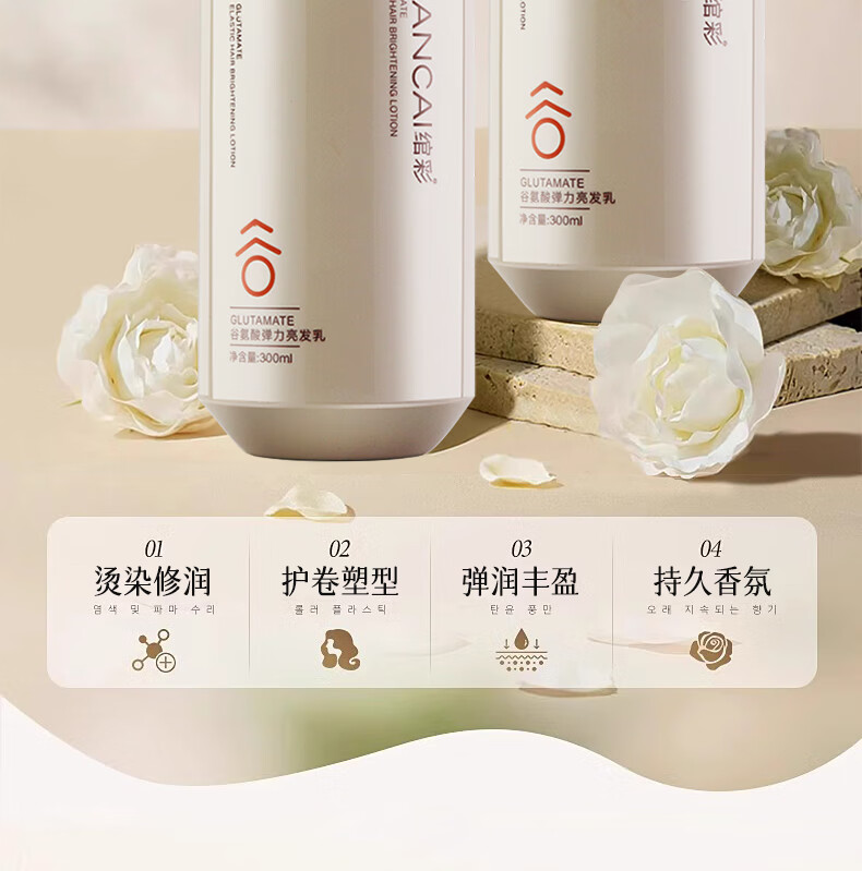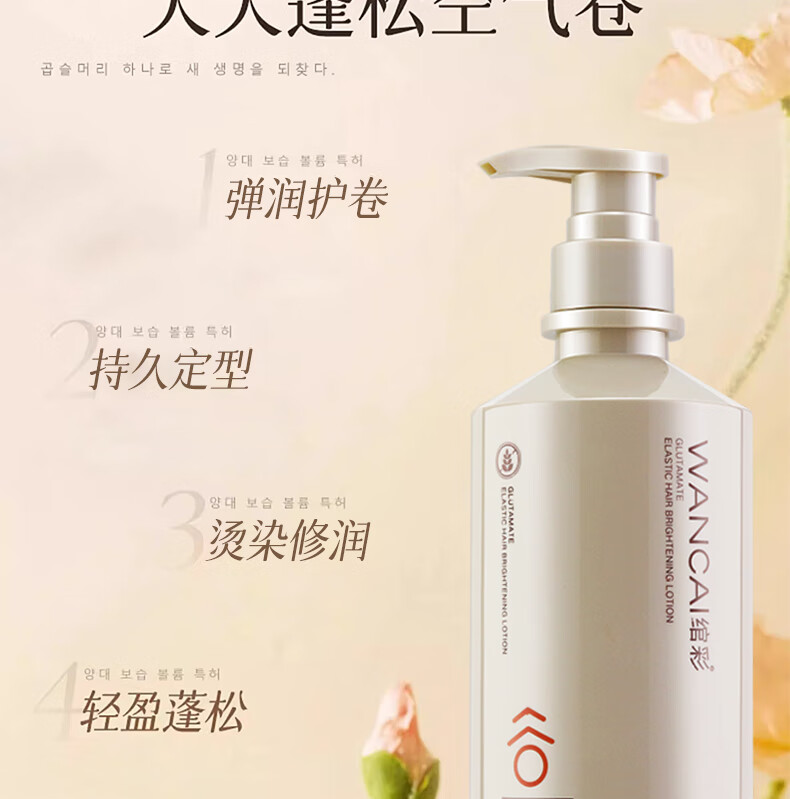Wancai Glutamic Acid Elastic Hair Cream Moisturizing Styling Fluffy Essence Long-lasting Q-Elastic Hair Care After Perm Hair 300ml 1 Bottle Glutamic Acid Elastic Hair Cream Elastin