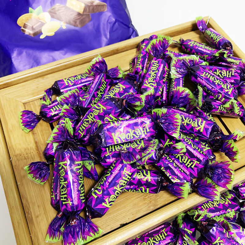 Shifangyi Russian Purple Candy Original Imported Snacks Chocolate Candy KDV Purple Candy Chinese New Year Candy Purple Candy 500g (about 70 pieces)