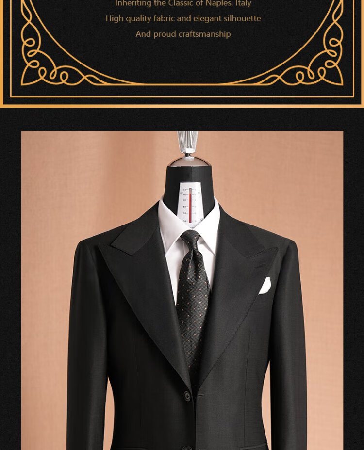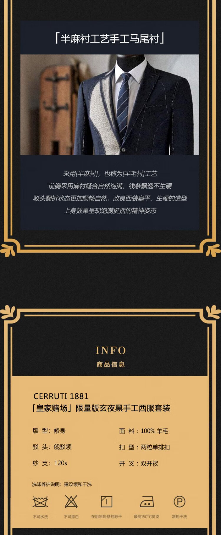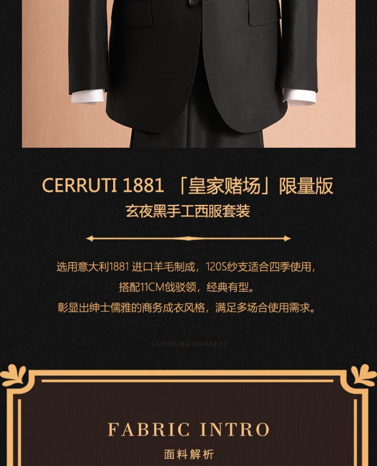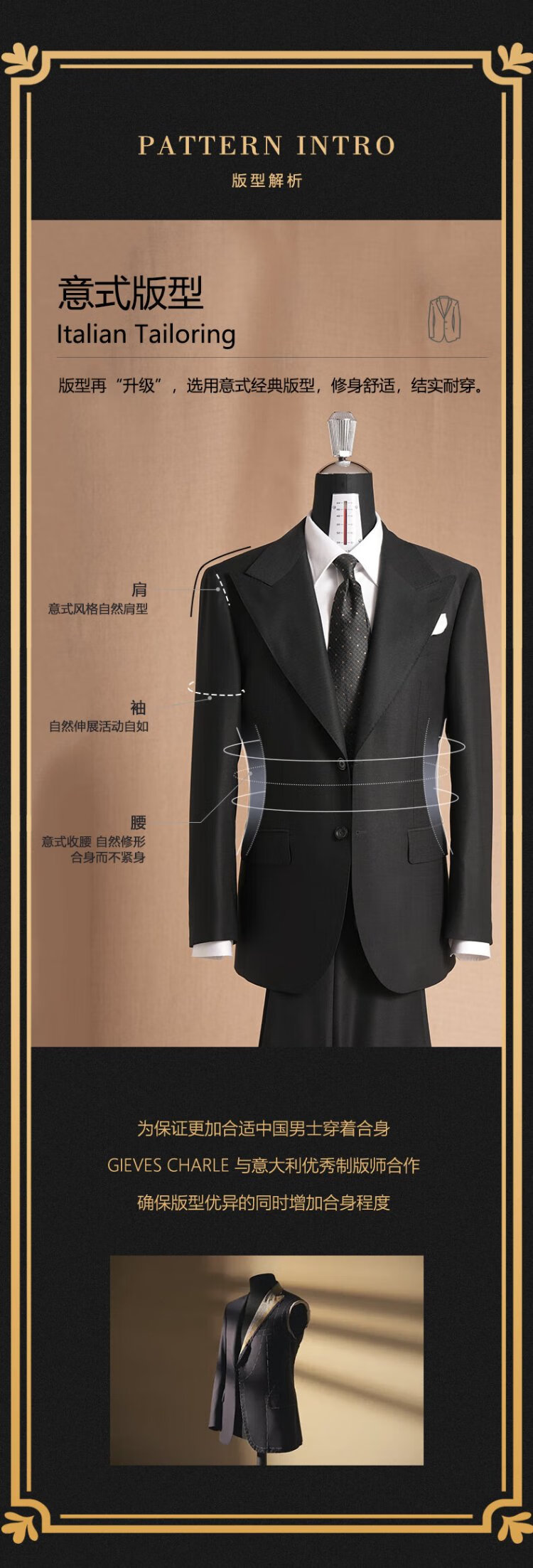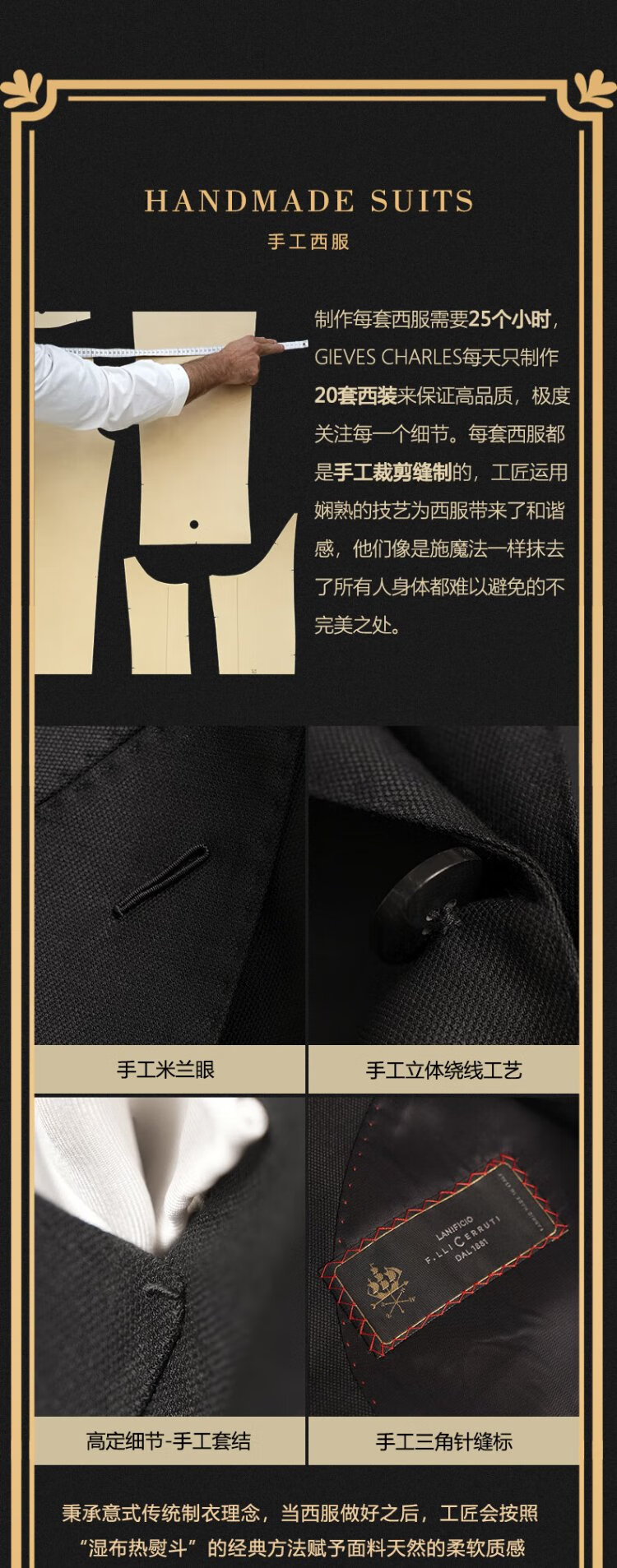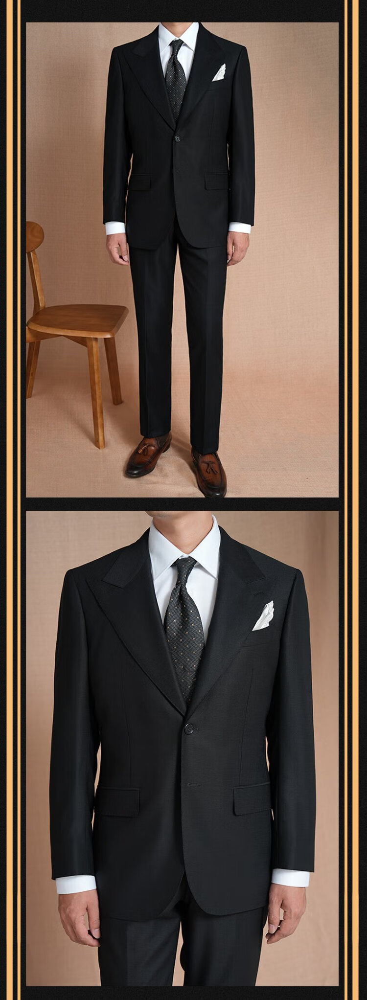 GIEVES CHARLES 1881 Italian worsted wool fabric Royal Casino black night handmade business suit Royal Casino 46