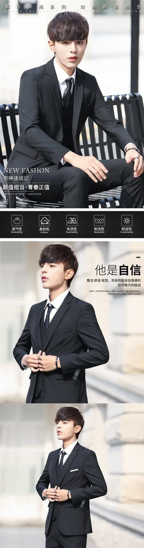 Luo Meng High School Adult Dress Suit Boys Suit Suit Men's Five-piece Korean Slim Small Suit Horse Black Suit + Pants + Vest + Shirt + Tie 2XL 140-155Jin Jin is equal to 0.5 kg