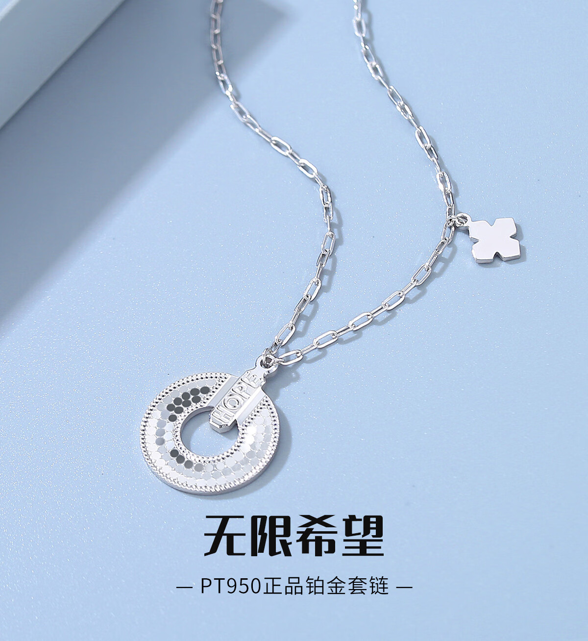 Aido Diamond pt950 platinum necklace for women, fashionable platinum infinite hope ring set chain for girlfriend, weight 5.2-5.4 grams, length 42+3cm