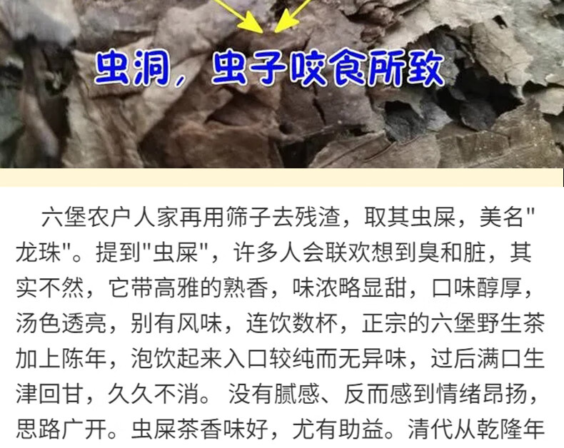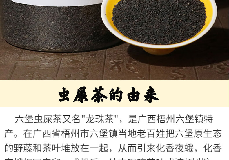 Qiu Boyuan Liubao Tea Worm Shit Tea Wuzhou Specialty Insect Tea Worm Treasure Herbal Fragrance Eighteen Years Old Liubao Loose Tea Farm Tea