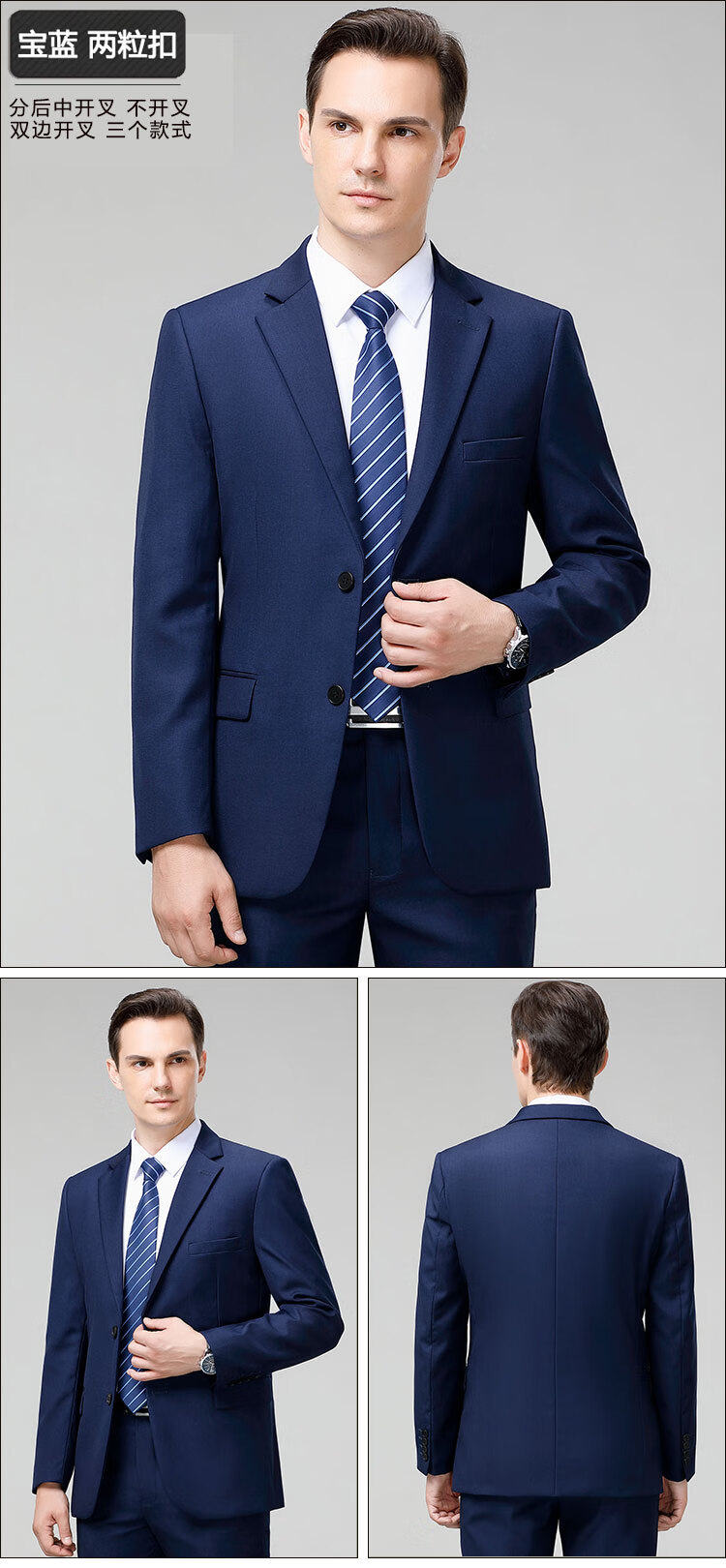 ROMON suit men's custom spring and autumn business large size middle-aged dad casual professional formal dress groom wedding suit navy suit (suit + trousers + shirt) 2XL size
