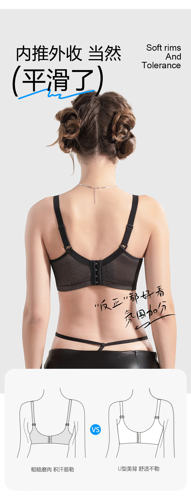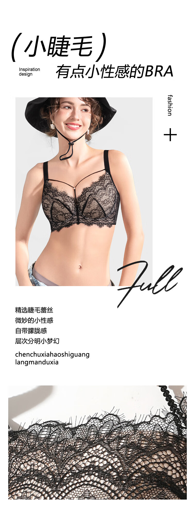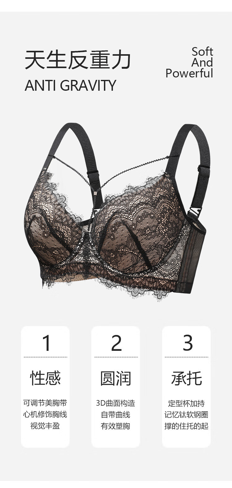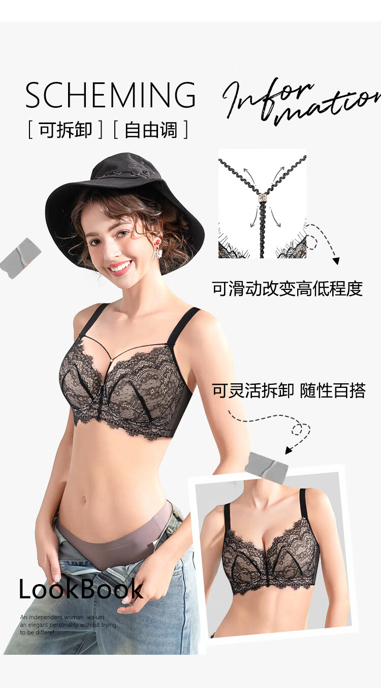 Sugar grain large size underwear for women with big breasts and small breasts, sexy lace push-up support to prevent sagging and reduce side breasts, thin bra, black and translucent 90C