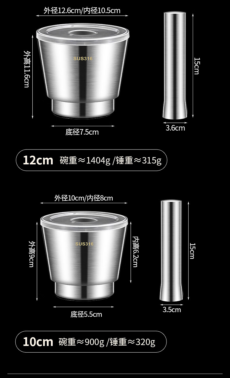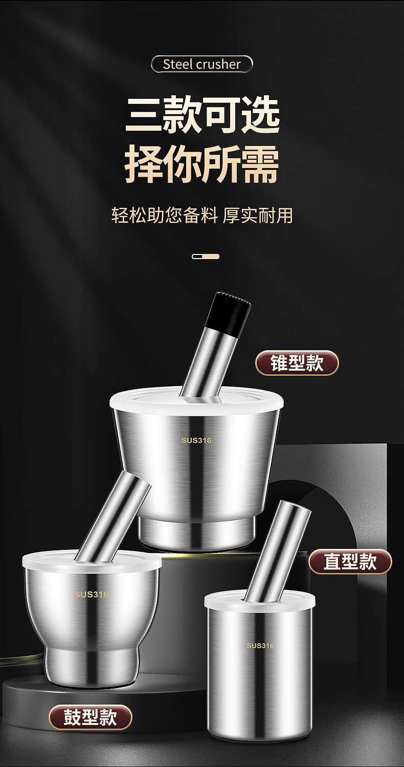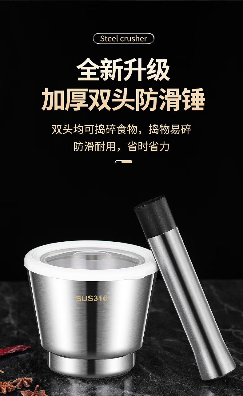 The legend of the pot 316 stainless steel solid medicine jar household thickened medicine mortar garlic paste garlic mortar grinding bowl 304 316 stainless steel 10cm conical masher