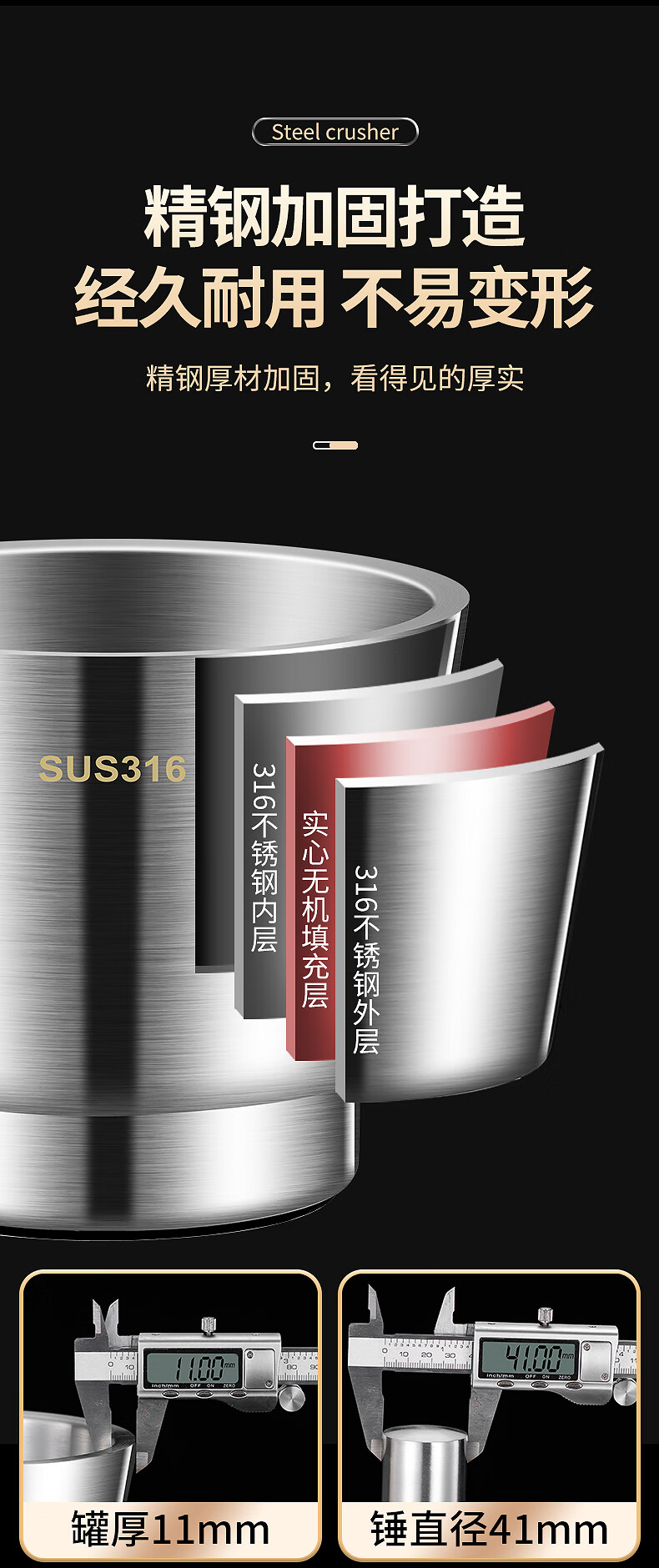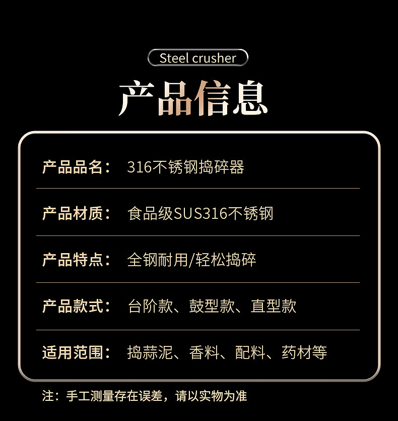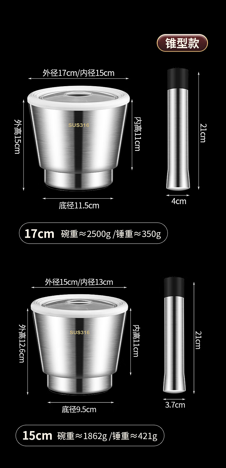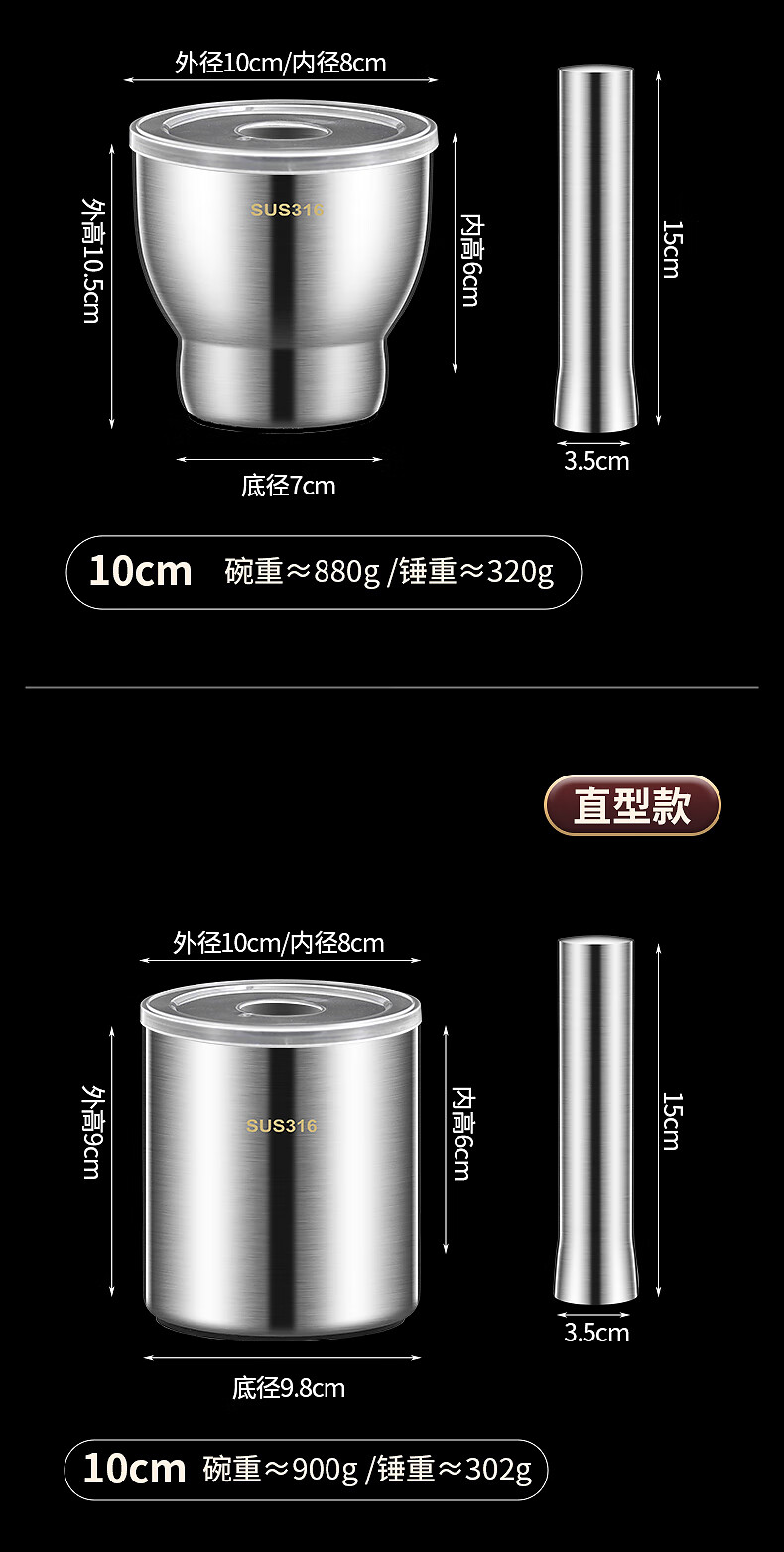 The legend of the pot 316 stainless steel solid medicine jar household thickened medicine mortar garlic paste garlic mortar grinding bowl 304 316 stainless steel 10cm conical masher