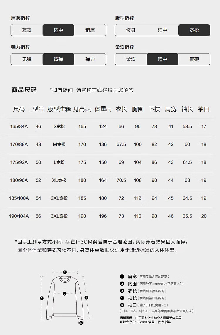 China (cm) 165 / 88-90 170 / 96-98 175 / 108-110 180 / 118-122 185 / 126-130