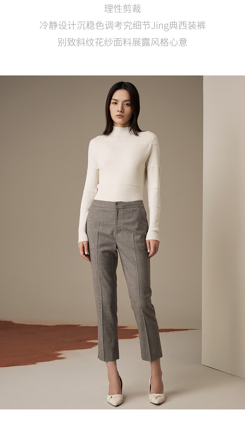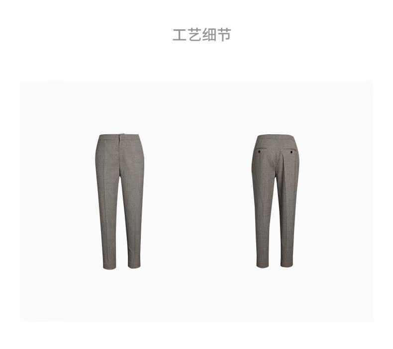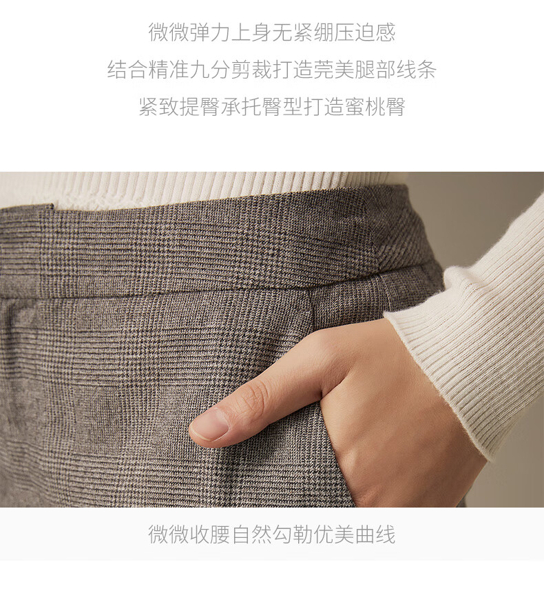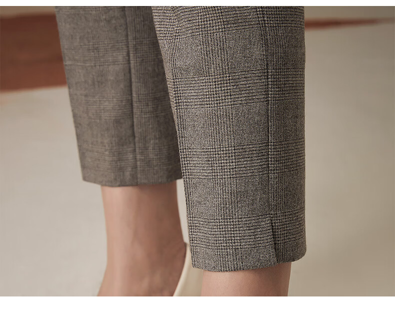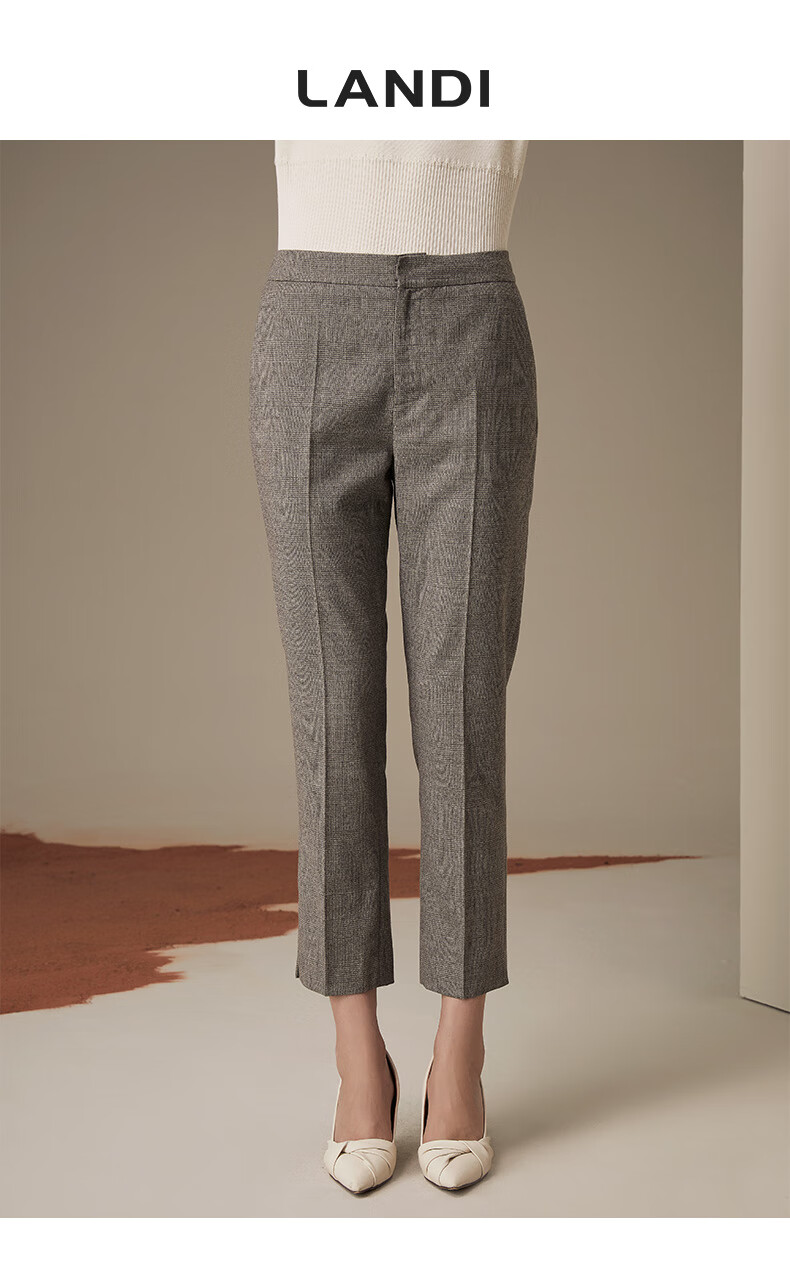 LANDI Checked Wool Suit Pants Women's New Winter Dark Gray Slim Fit Pants Trousers Gray Brown L