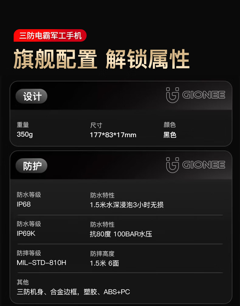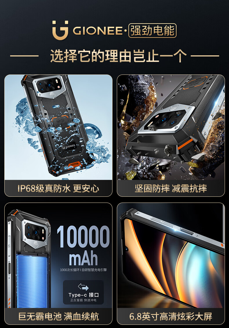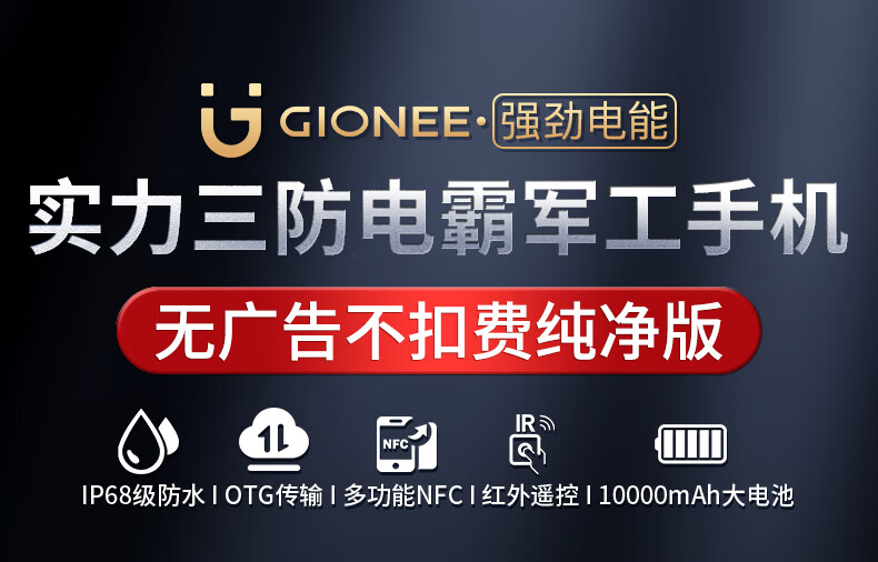 Gionee WP28 pure version without ads Seiko three-proof power 10000 mAh battery ultra-long standby IP68 true waterproof and drop-proof 8 cores + 256G smart full network support NFC black 1W mAh large battery + IP68 true waterproof + infrared remote control 8 cores + 256GB