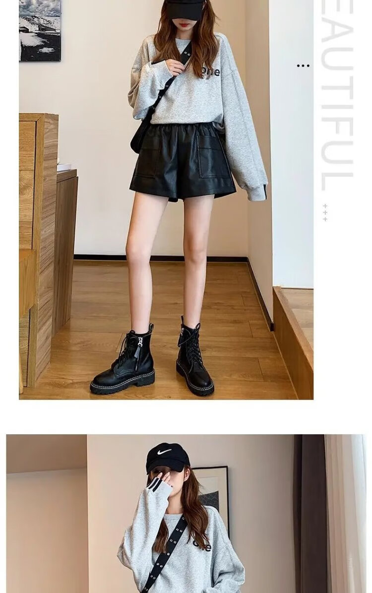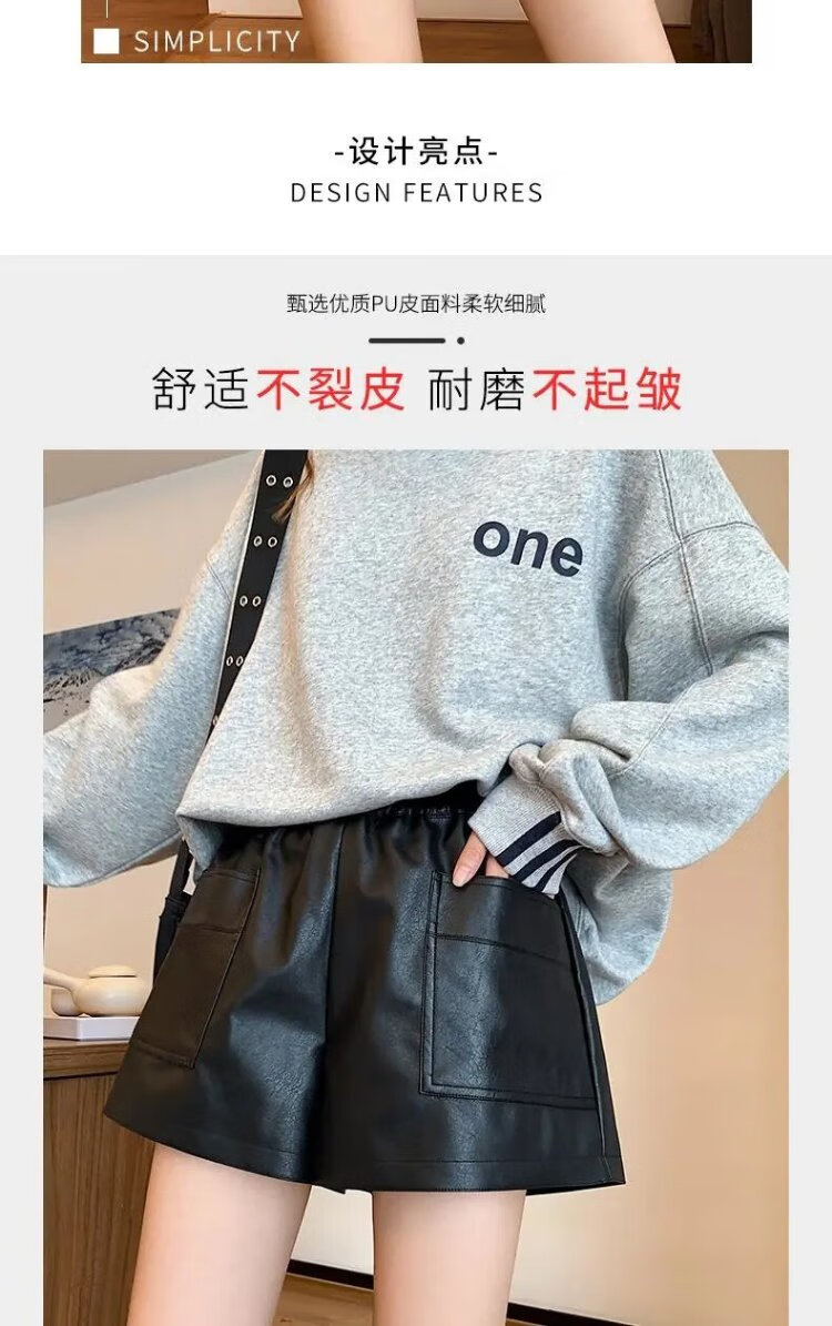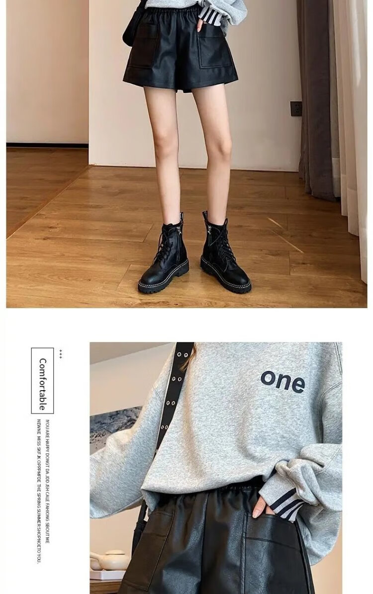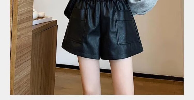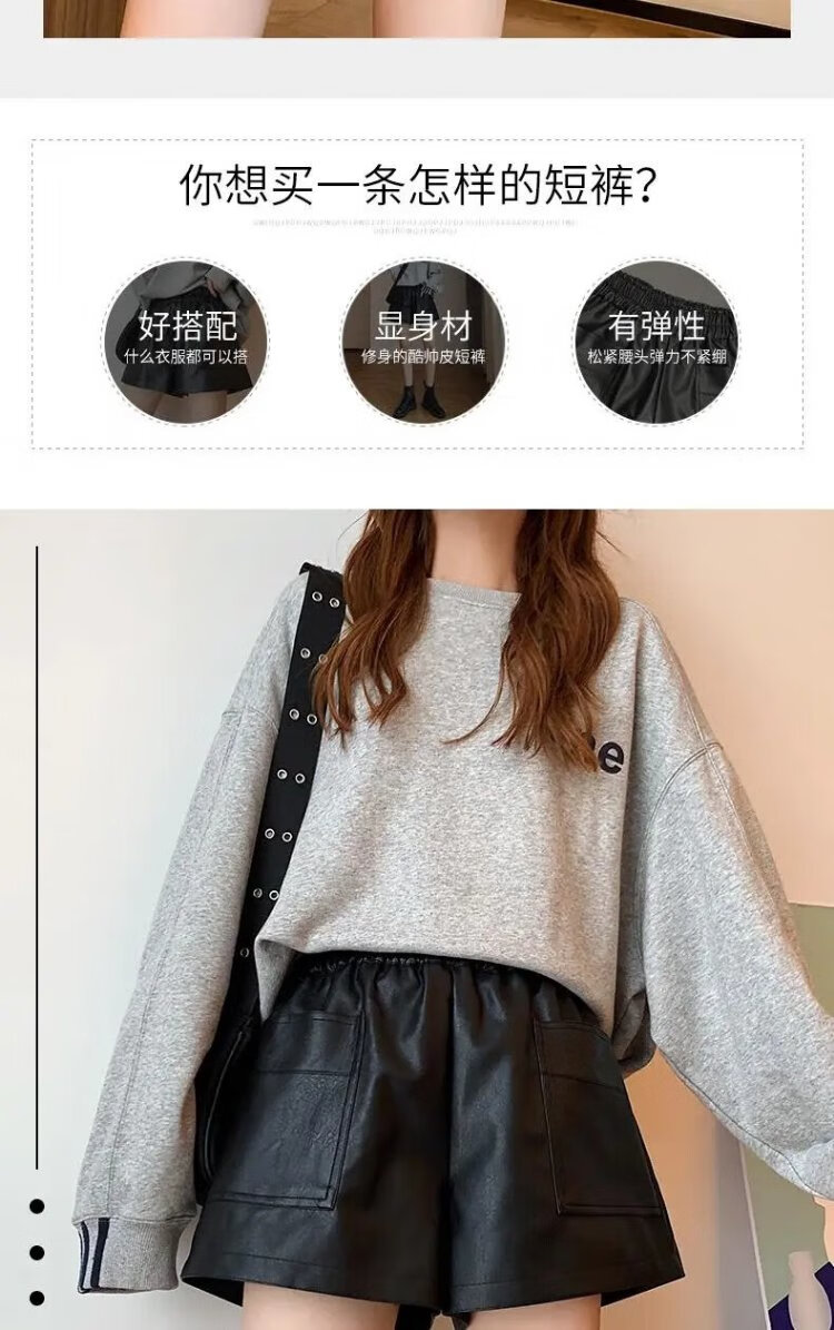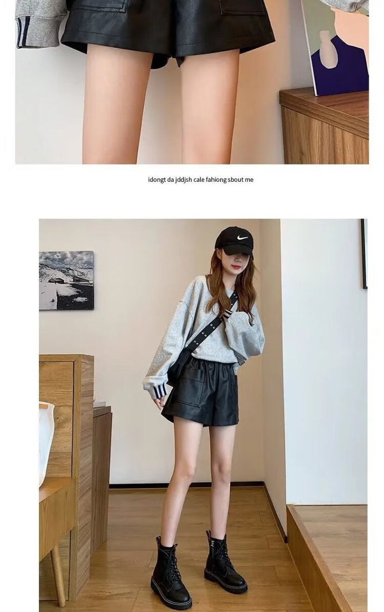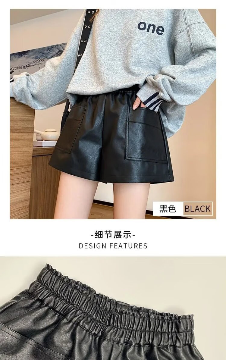 Lanqi shorts women's outer leather pants spring and autumn black hot pants 2025 new style with boots boot pants high waist versatile black vertical purse leather shorts L 100-120 Jin Jin equals 0.5 kg