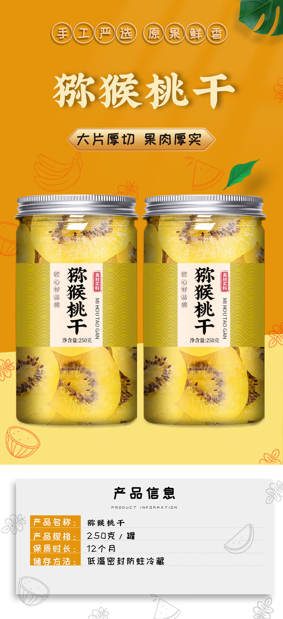 Hanning Yellow Heart Dried Kiwi Fruit Sugar-free No Additives Shaanxi Specialty Yellow Heart Dried Kiwi Fruit Dried Green Heart Kiwi Fruit (250g*2)