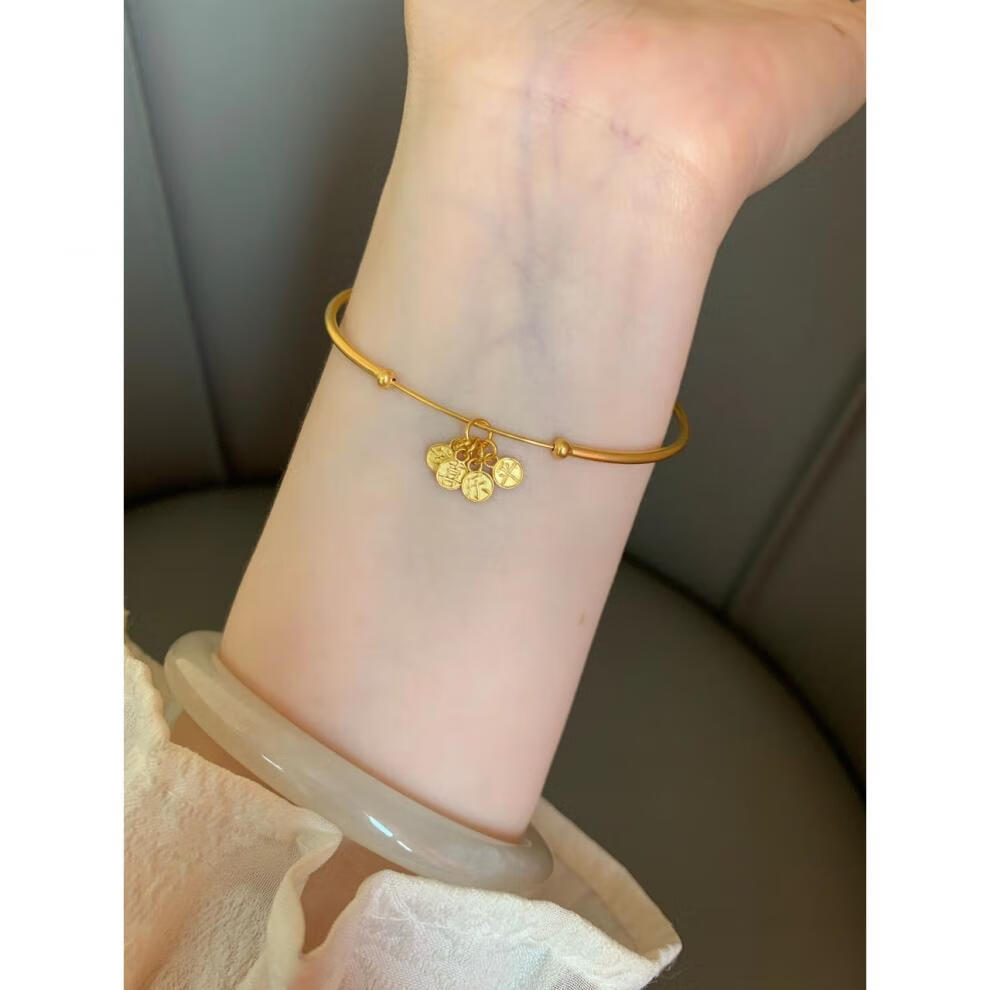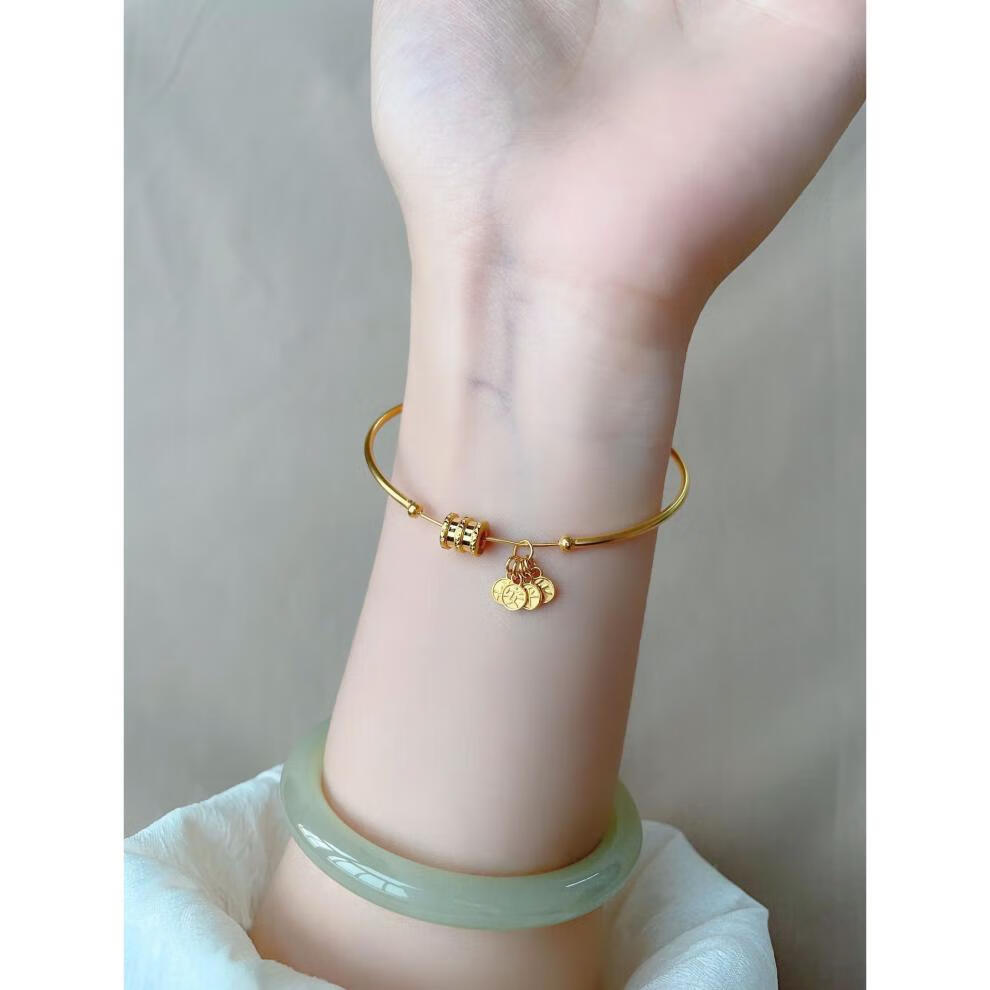 Mr. Ouyang's Little Fat Blessing Peach Blossom Bracelet Gold Color Bracelet Female Niche Simple and Exquisite Light Luxury Style Little Peach Blossom Bracelet Fat Blessing Peach Blossom Bracelet-58 Closed Mouth