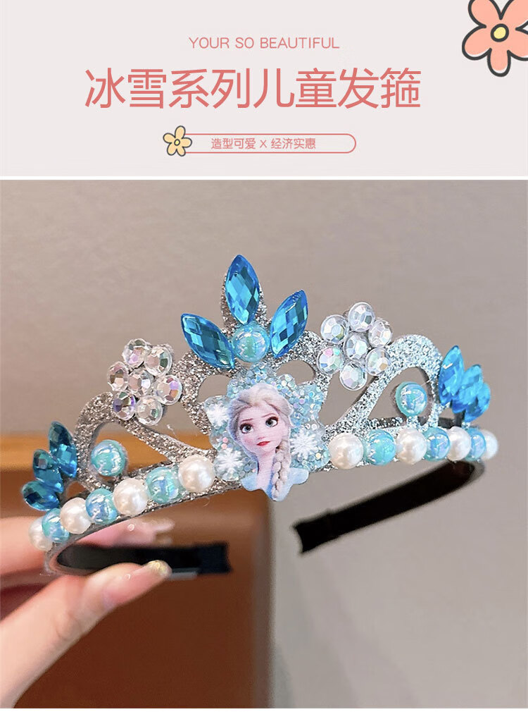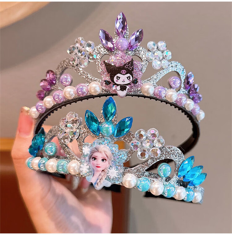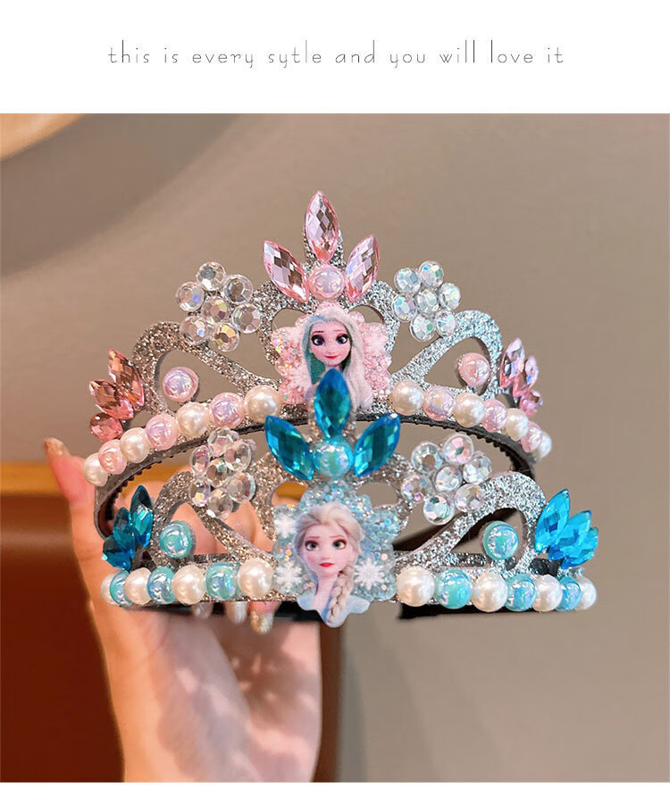 BARY REEF Girls' Frozen Hairband Elsa Crown Children's Girls Performance Cartoon Kurome Melody Crown Tiara Part 2 Elsa Princess Hairband