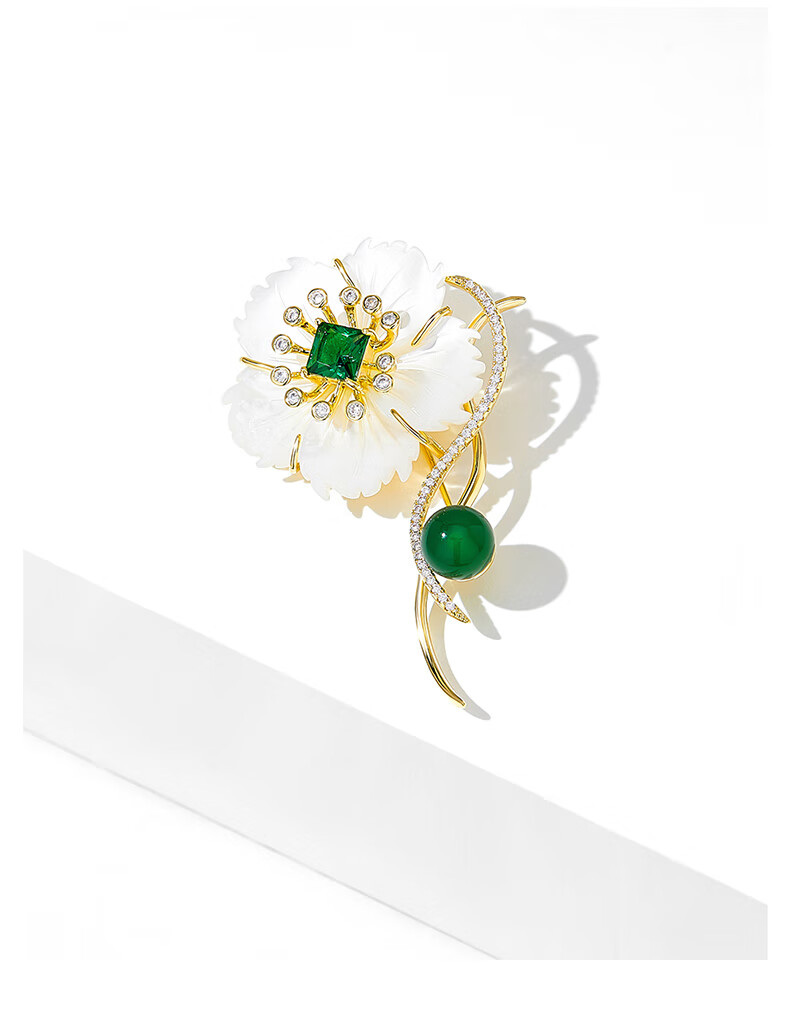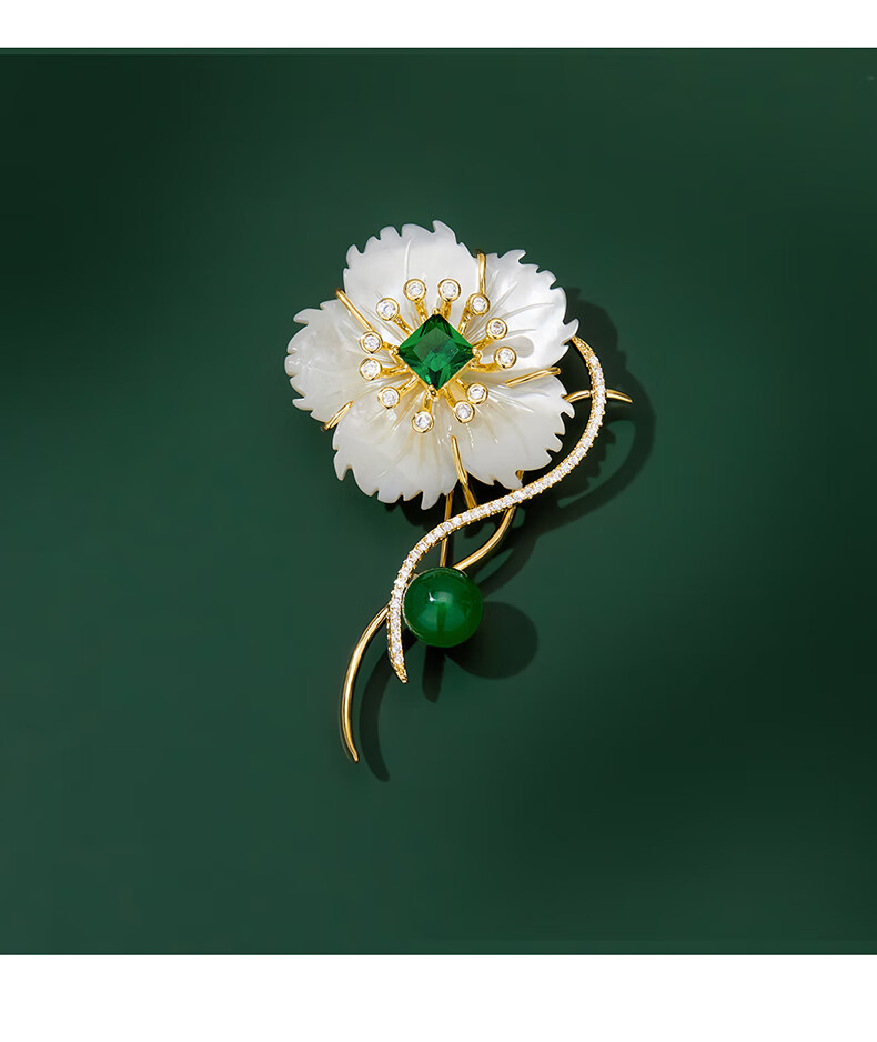Jay white shell hibiscus brooch, female corsage, suit accessories, birthday gift for elder mother and mother-in-law