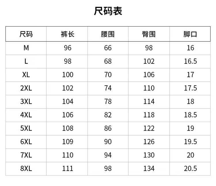 Outseam (cm) 99 cm 101.5 cm 104 cm 106.5 cm 109 cm