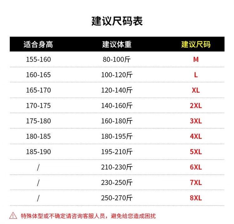 China (cm) 165 / 88-90 170 / 96-98 175 / 108-110 180 / 118-122 185 / 126-130