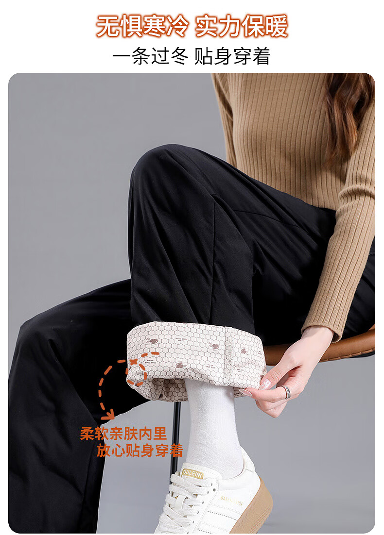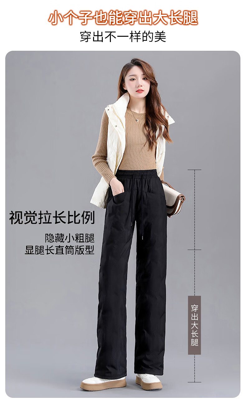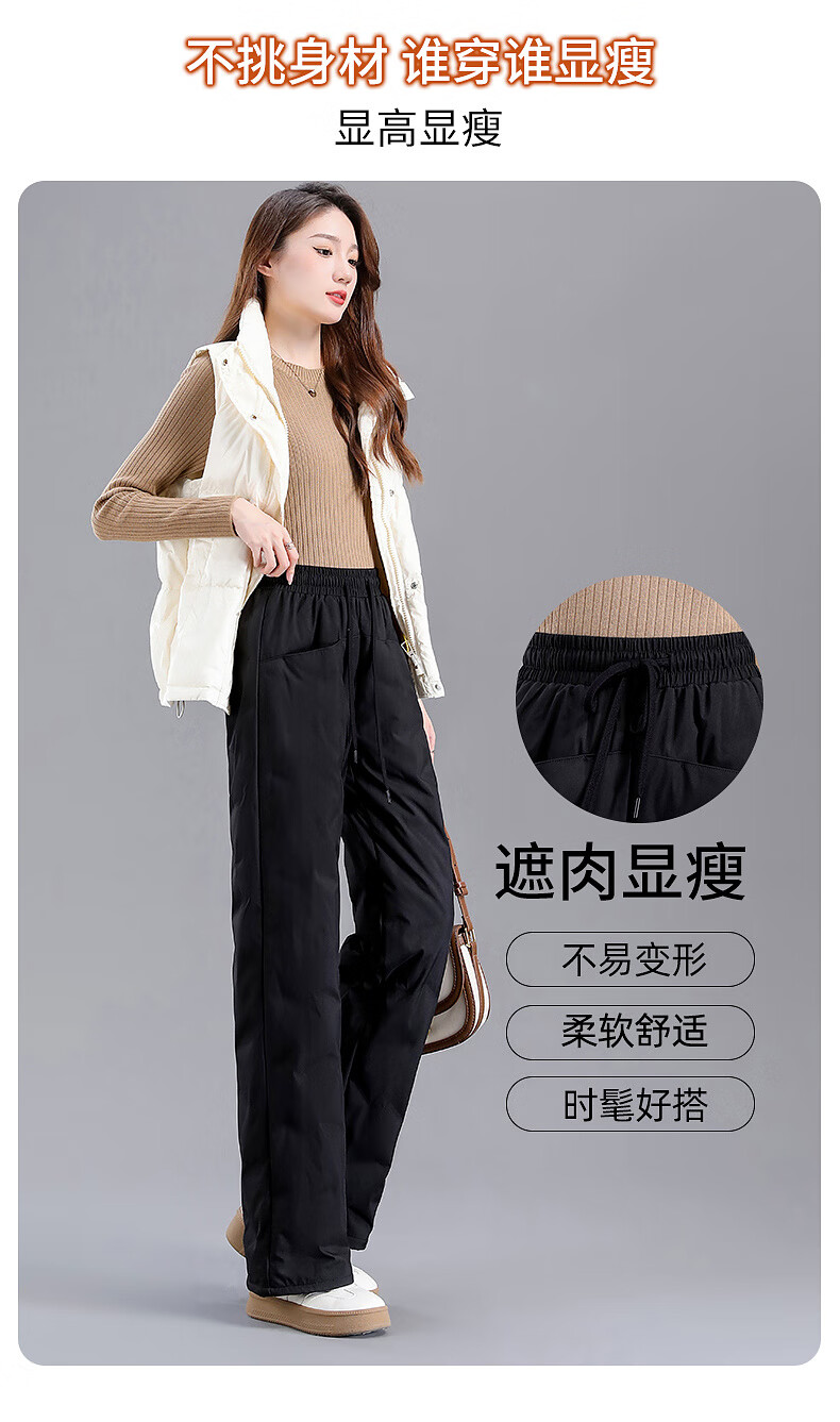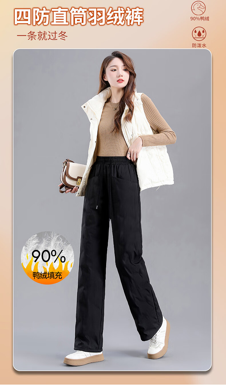 Flying in the Snow Autumn Women's Down Outer Pants Duck Down Straight Slimming Warm Down Jacket Black|8056 175/80A
