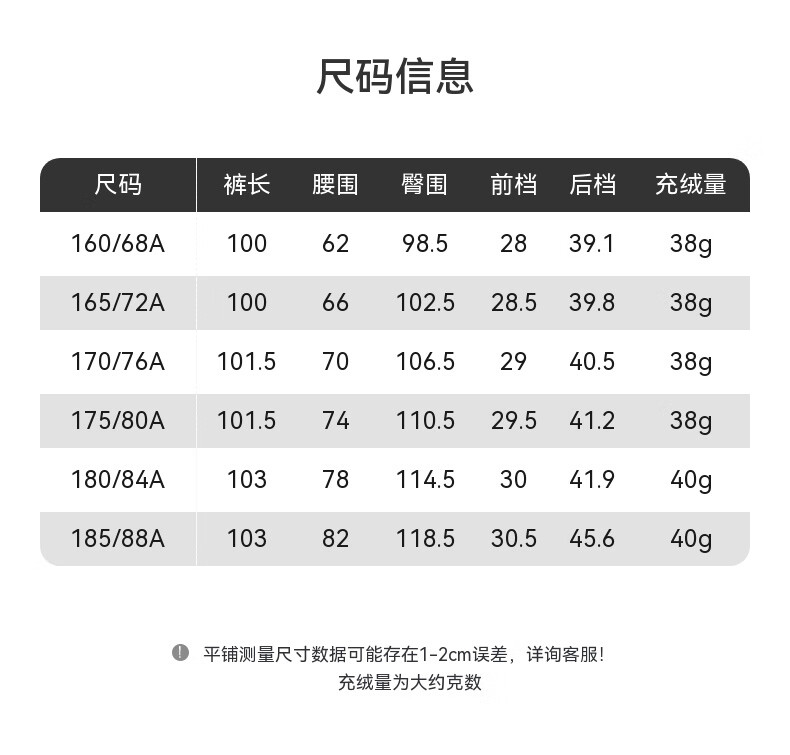 China (cm) 165 / 88-90 170 / 96-98 175 / 108-110 180 / 118-122 185 / 126-130