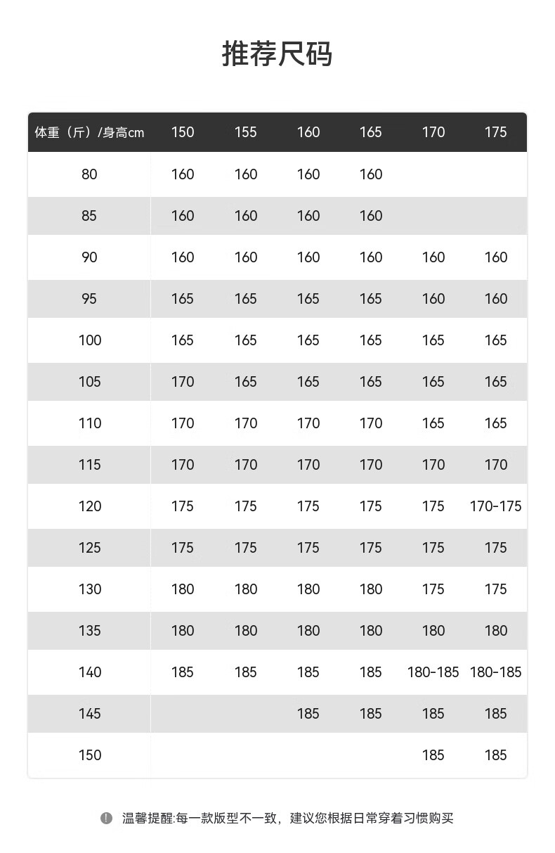 China (cm) 160-165/84-86 165-170 / 88-90 167-172 / 92-96 168-173 / 98-102 170-176 / 106-110