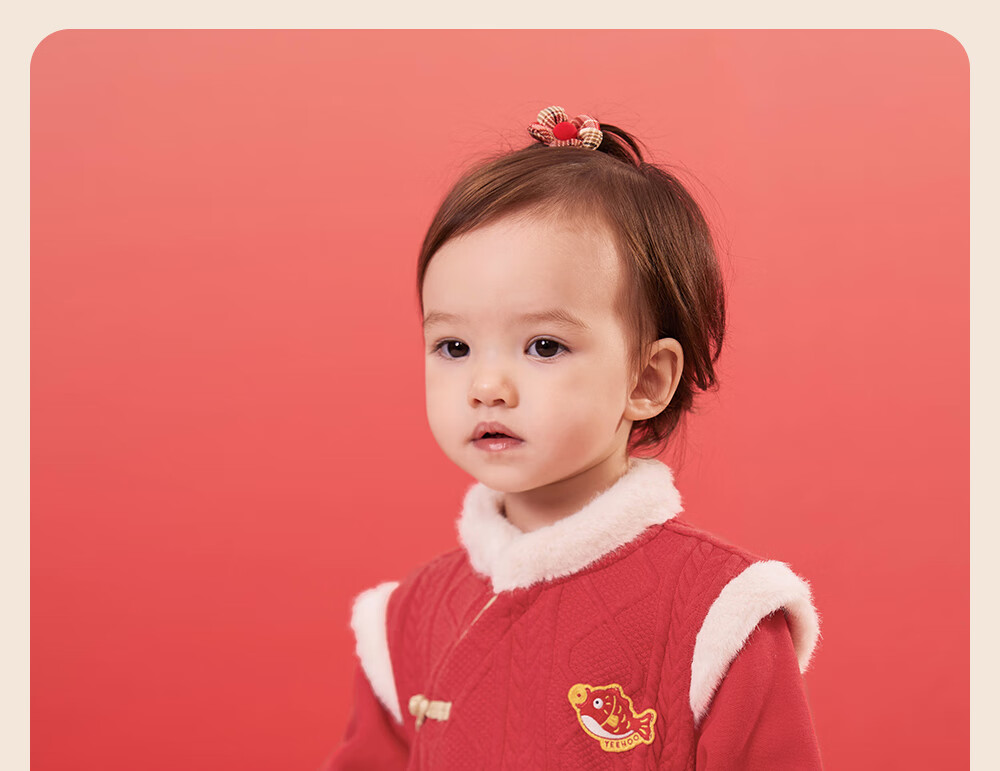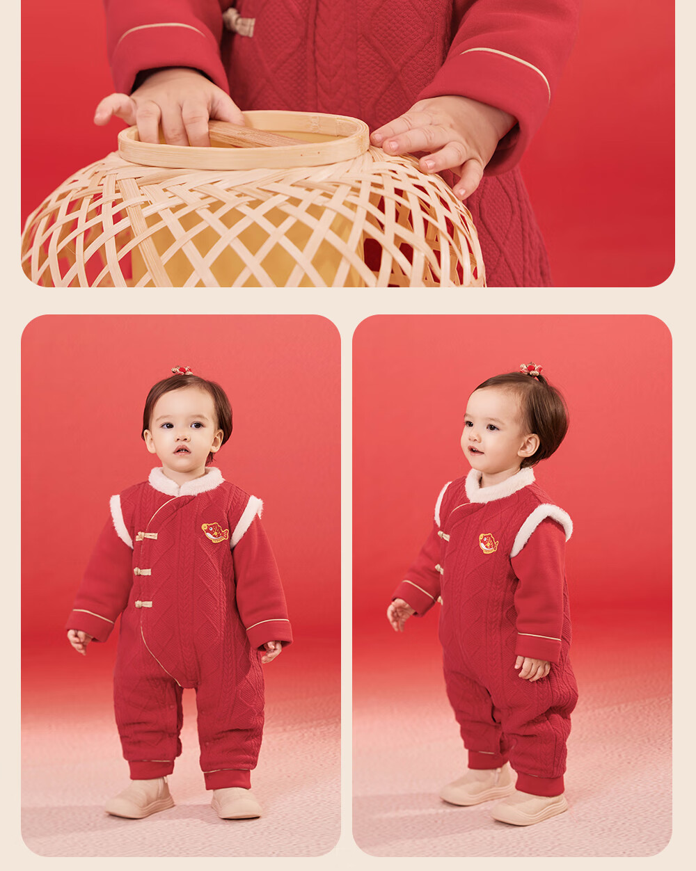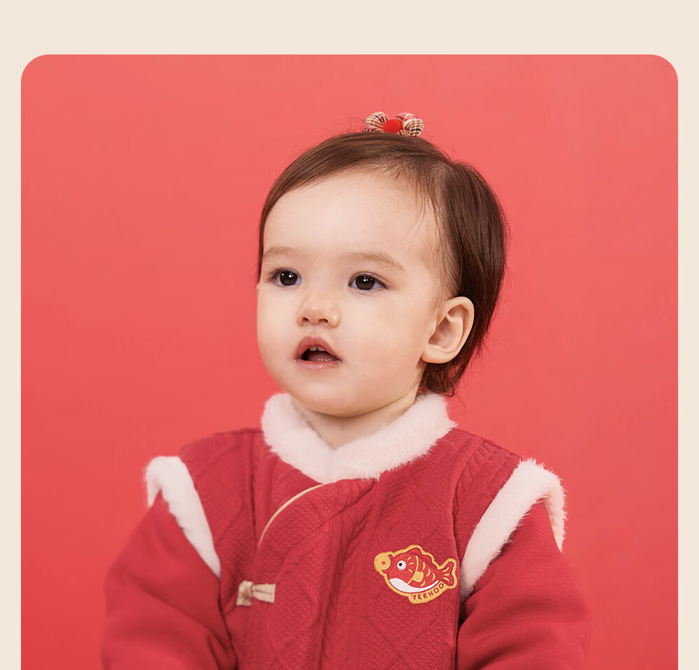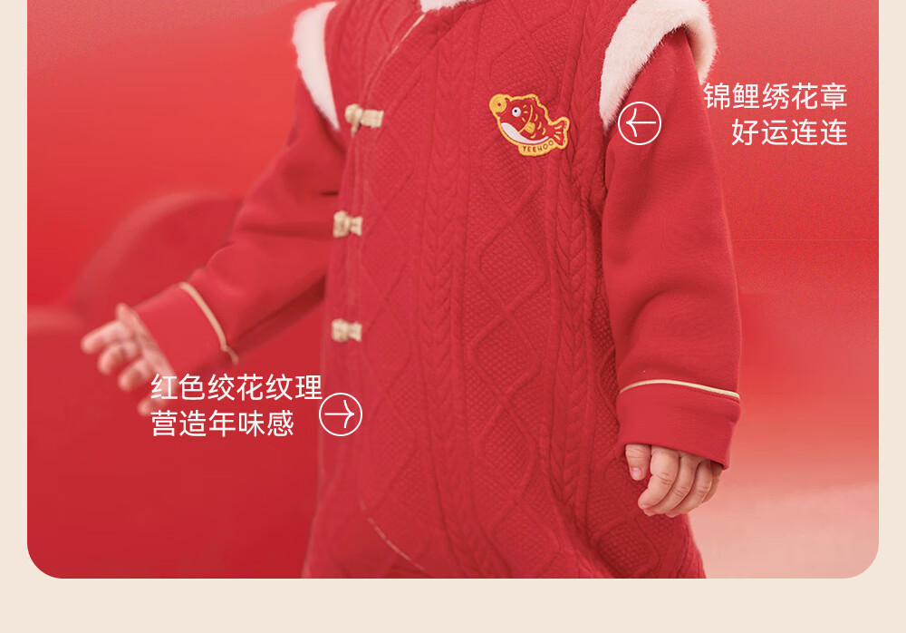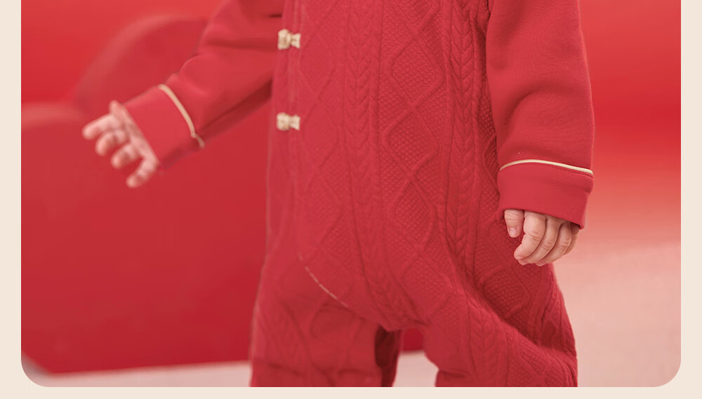 YEEHOO Baby New Year Clothes Autumn and Winter Warm Baby Clothes New Chinese Style Baby Jumpsuit Festive New Year Red-Unpadded Style 90cm (Recommended Height 78-90cm)