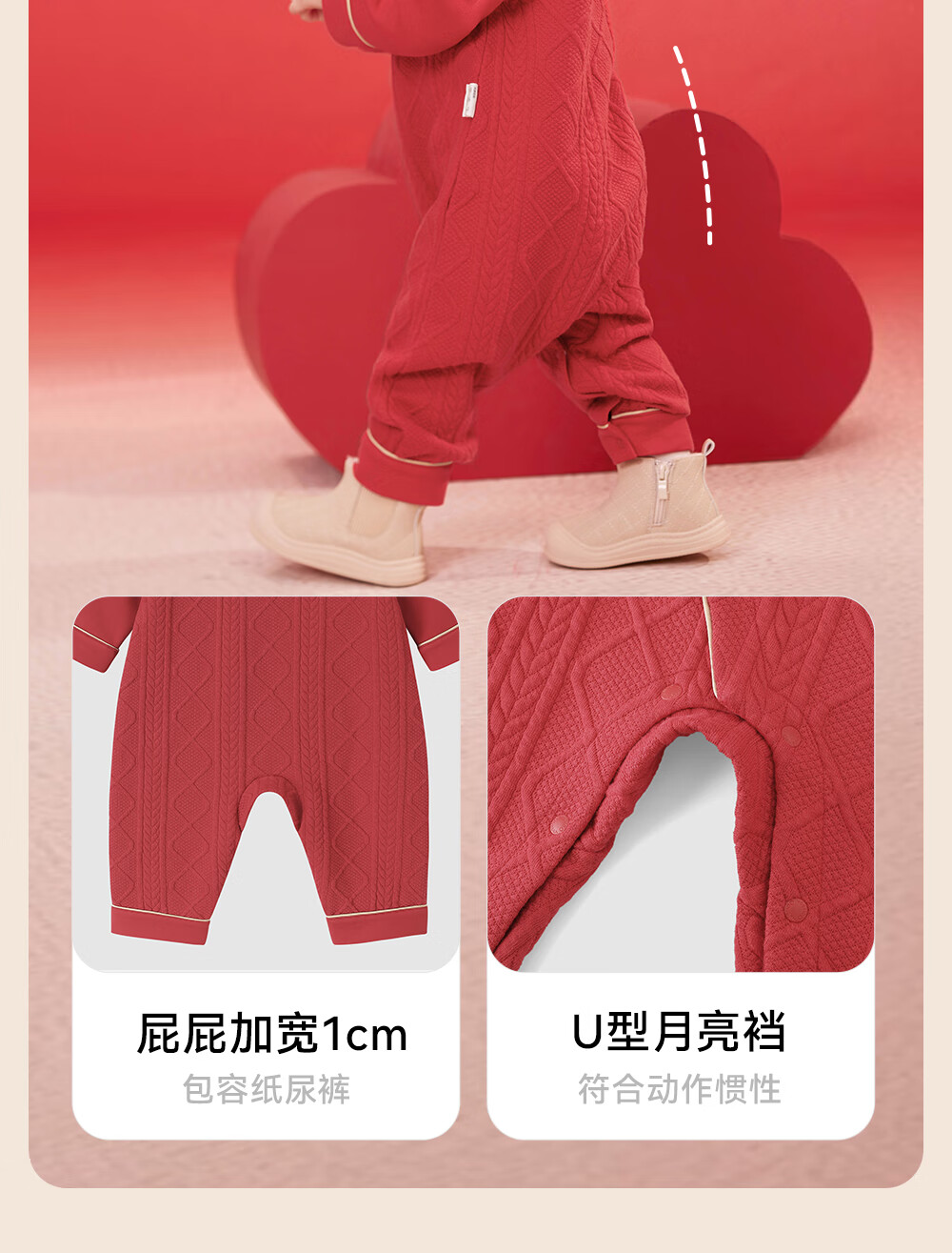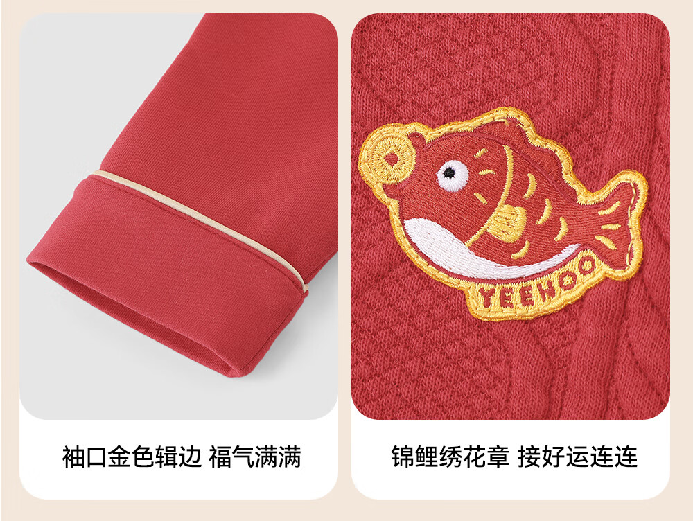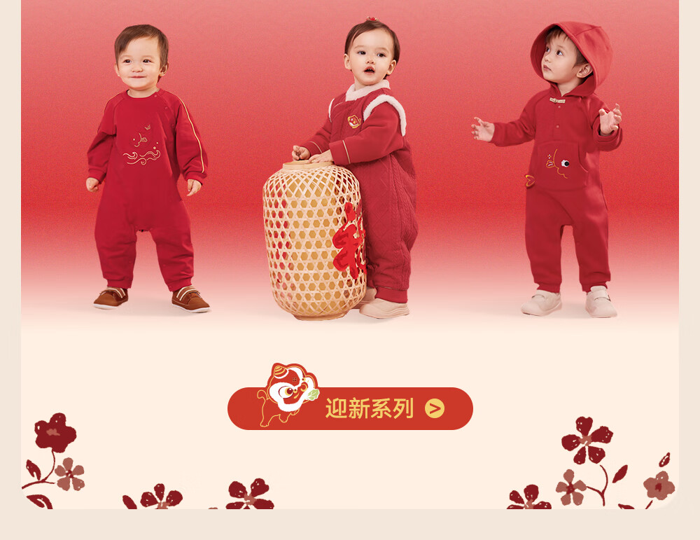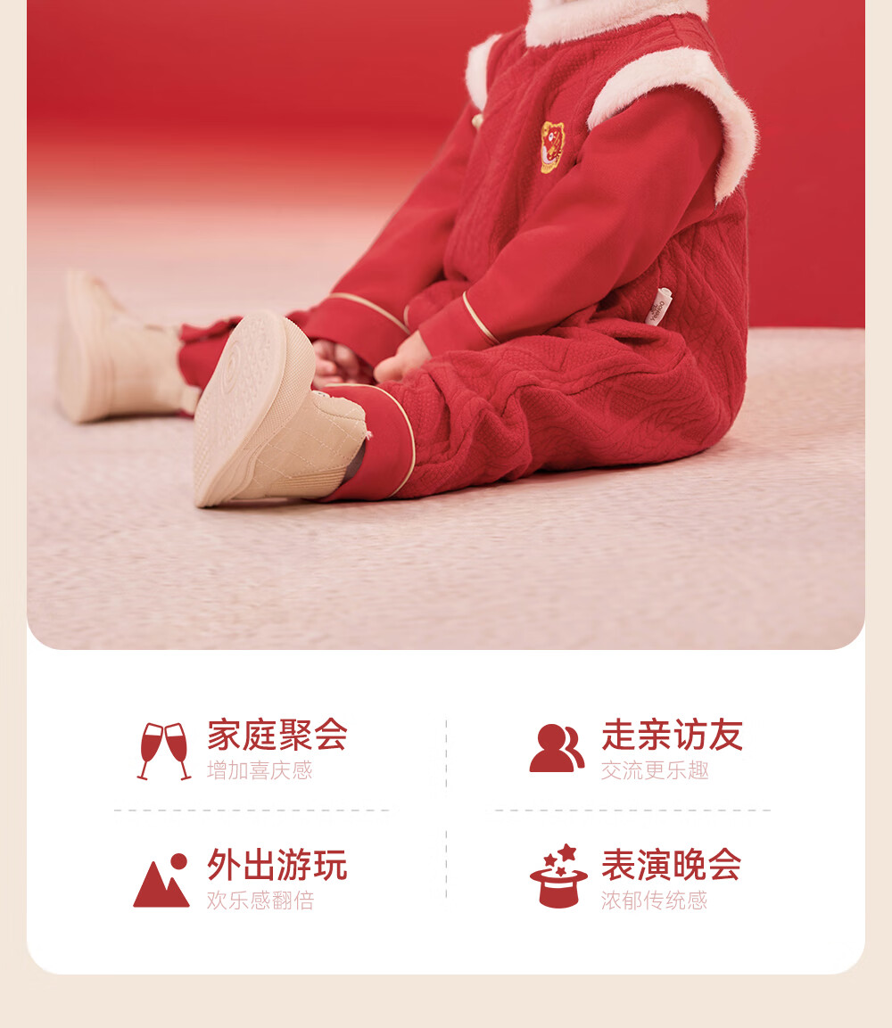 YEEHOO Baby New Year Clothes Autumn and Winter Warm Baby Clothes New Chinese Style Baby Jumpsuit Festive New Year Red-Unpadded Style 90cm (Recommended Height 78-90cm)