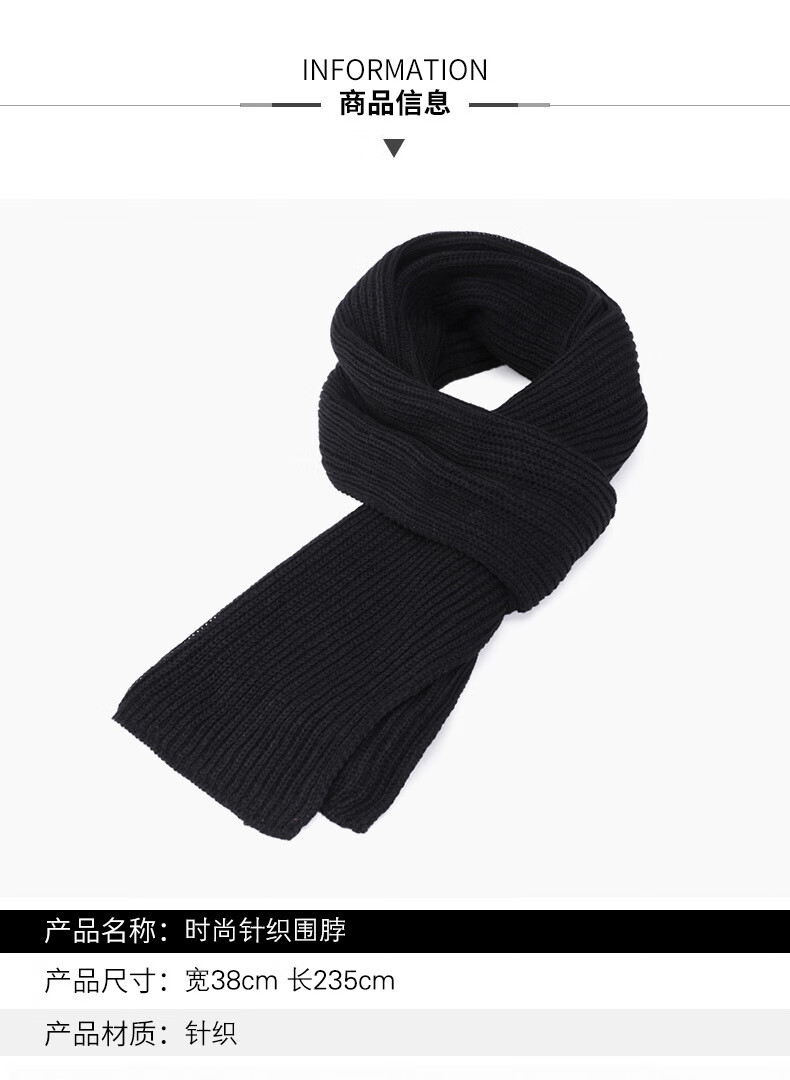 Scarf men's winter high-end solid color warm men's wool knitted scarf winter women's neck scarf hot sale in stock black 160-180cm