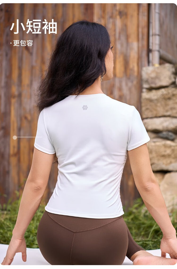 Fansheng Yoga summer breathable naked waist slimming quick-drying Pilates exercise round neck pleated waist short sleeve FC14353 without chest pad naked white XL