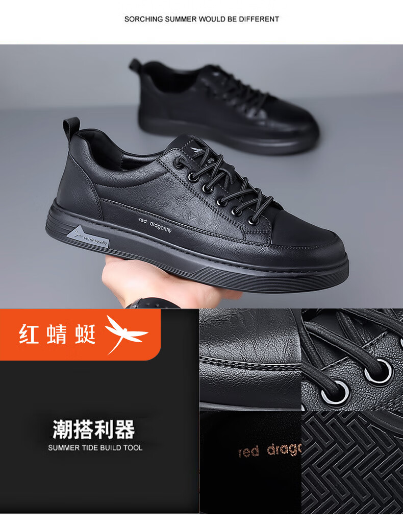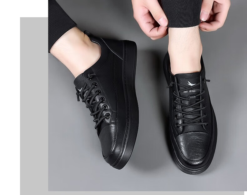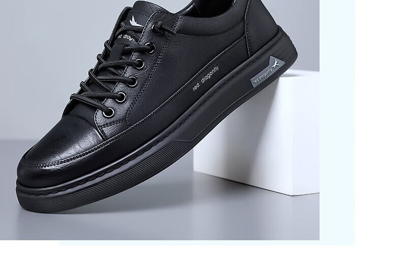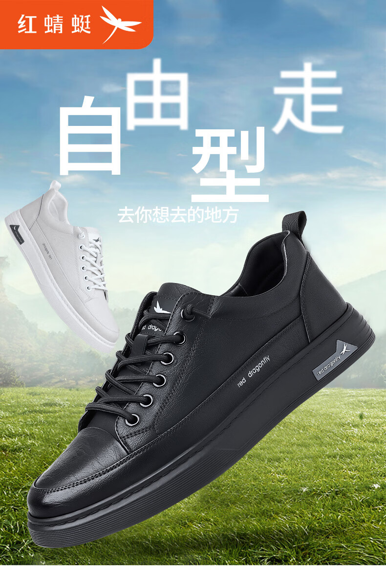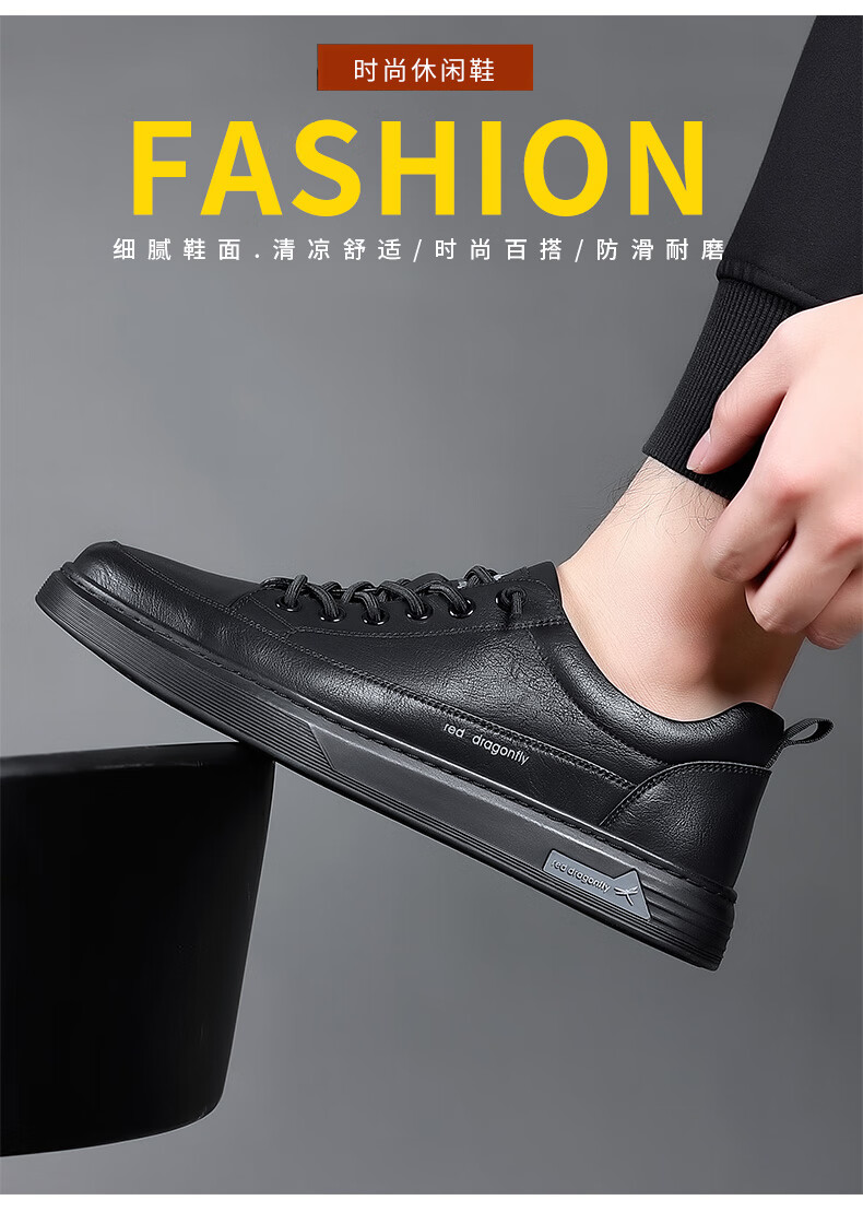 Red Dragonfly Men's Shoes Autumn New Fashion Genuine Leather Shoes Trendy Versatile Sports Casual Shoes Men's Slip-on Breathable Leather Shoes C02251667 Black 40 Standard Leather Shoe Size - Such as sports shoes wearing 41 and shooting 40