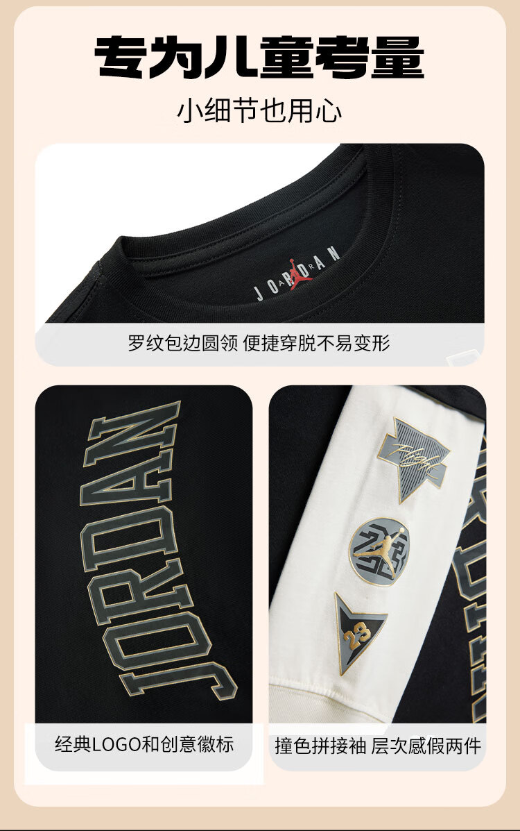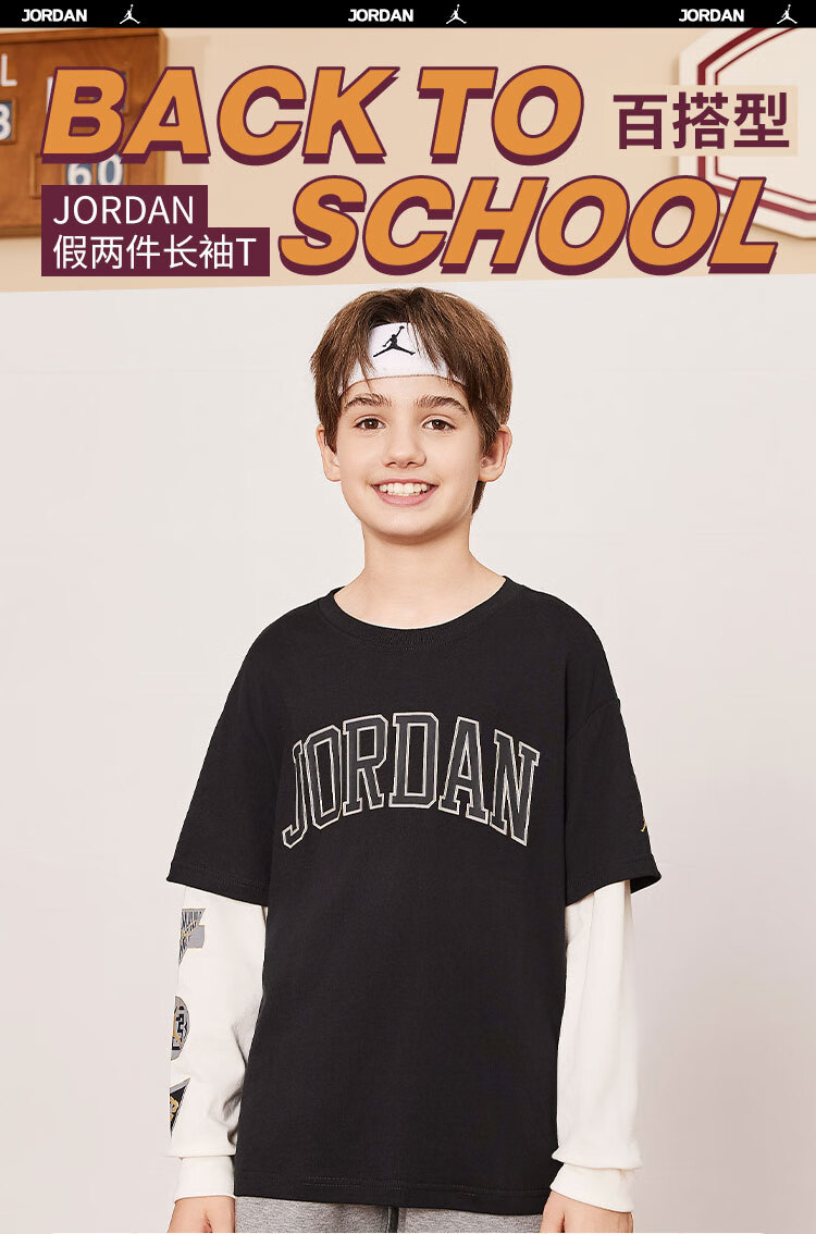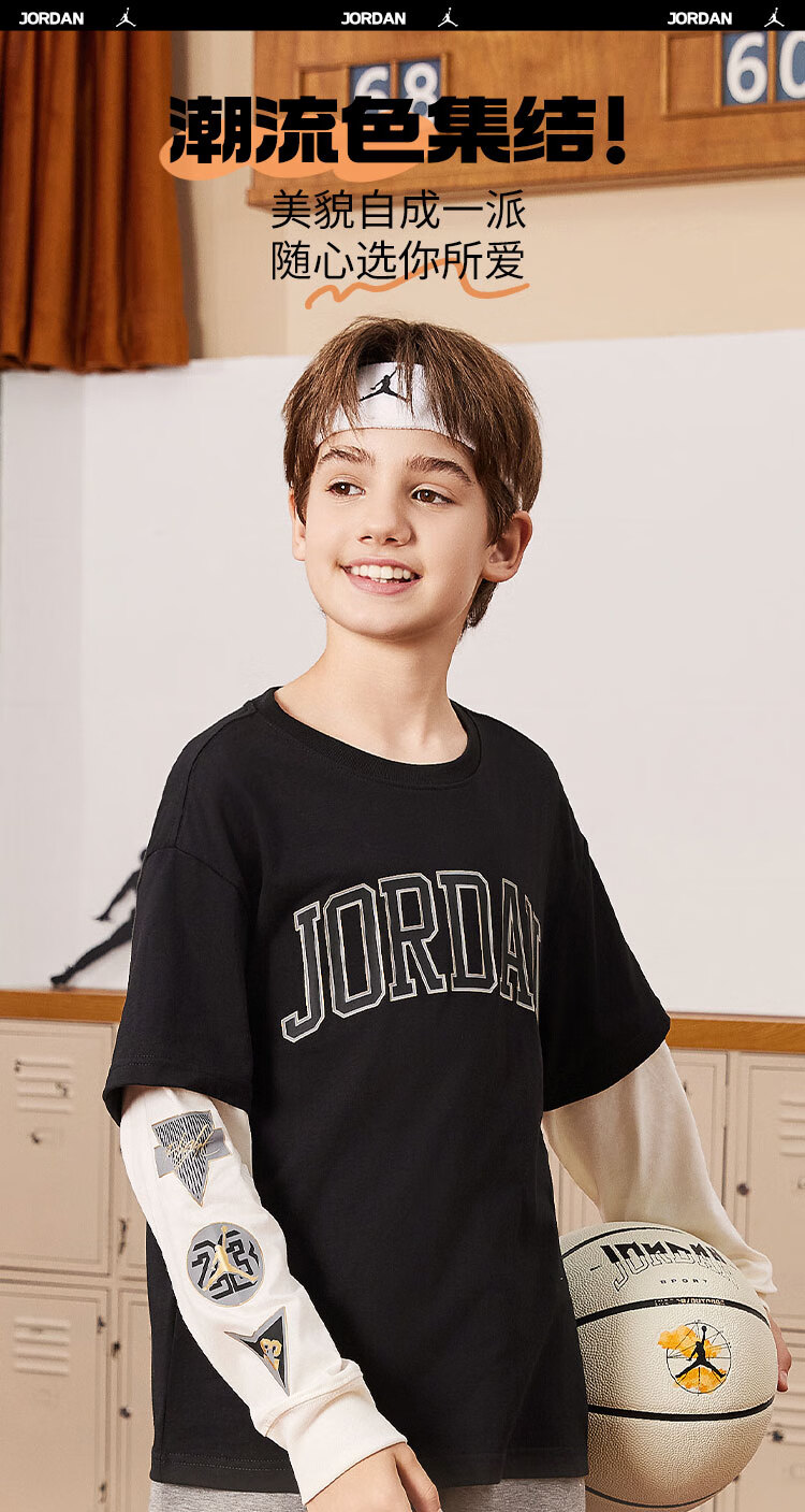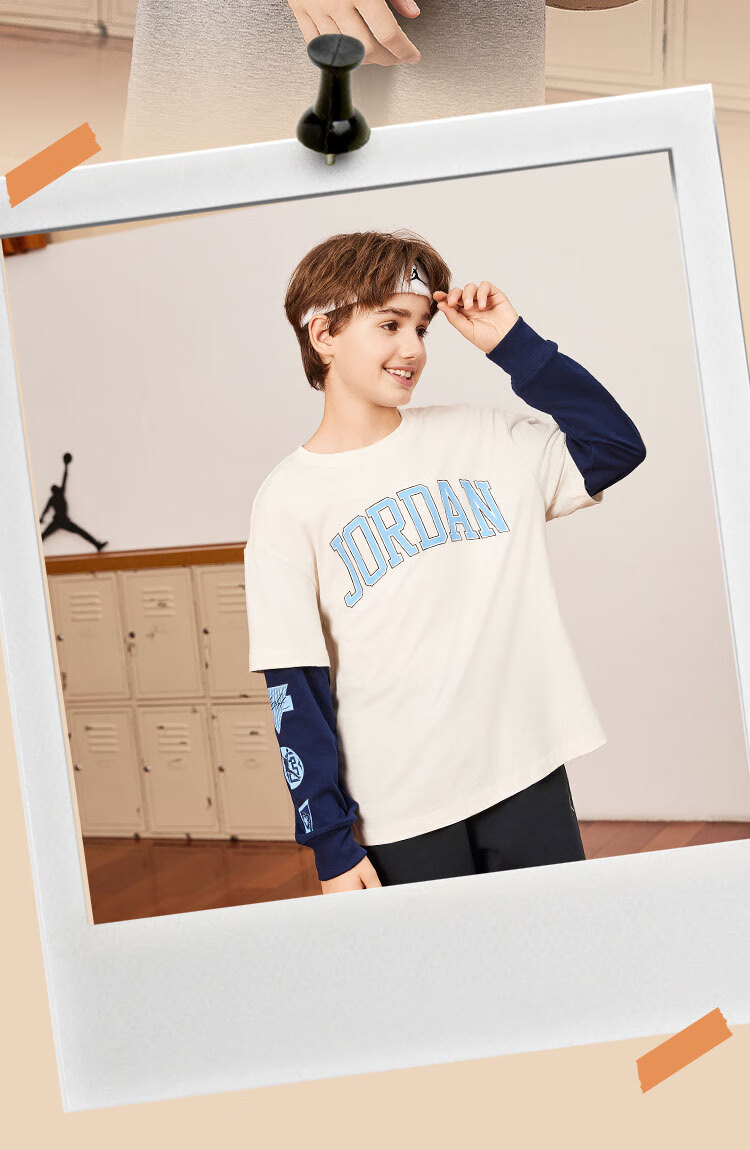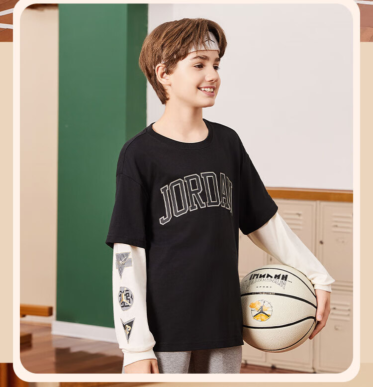 NIKE JORDAN Nike AJ children's clothing boys' fake two-piece pure cotton long-sleeved T-shirt autumn new children's bottoming shirt marshmallow pure cotton 160/76 recommended height 152-158cm