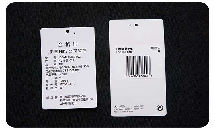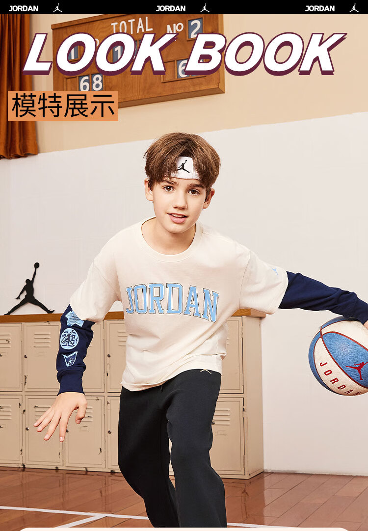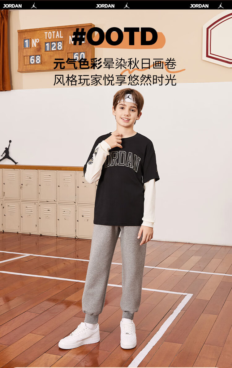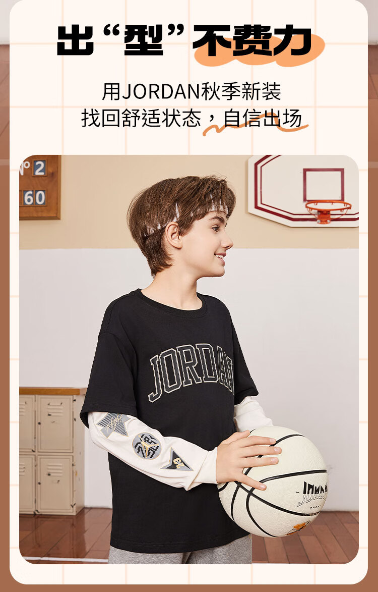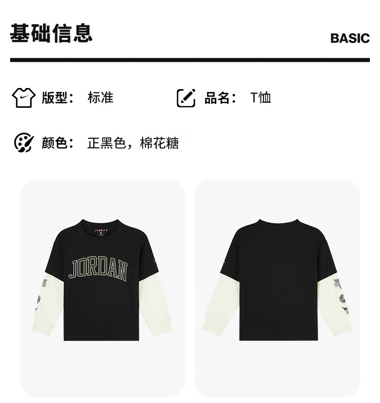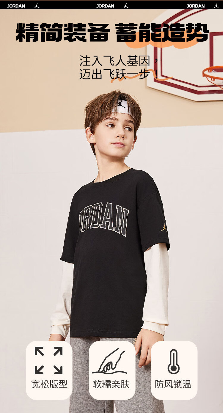 NIKE JORDAN Nike AJ children's clothing boys' fake two-piece pure cotton long-sleeved T-shirt autumn new children's bottoming shirt marshmallow pure cotton 160/76 recommended height 152-158cm