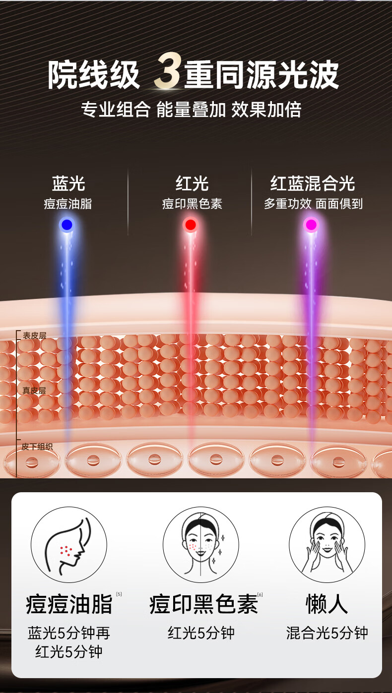 YOUNG DREAMYD Acne Clearing, Acne Rejuvenating and Rejuvenating Device Red and Blue Light Light Print Skin Rejuvenation Home Beauty Device Large Row Whitening Lamp Mask Device Acne Clearing and Rejuvenating Skin Device