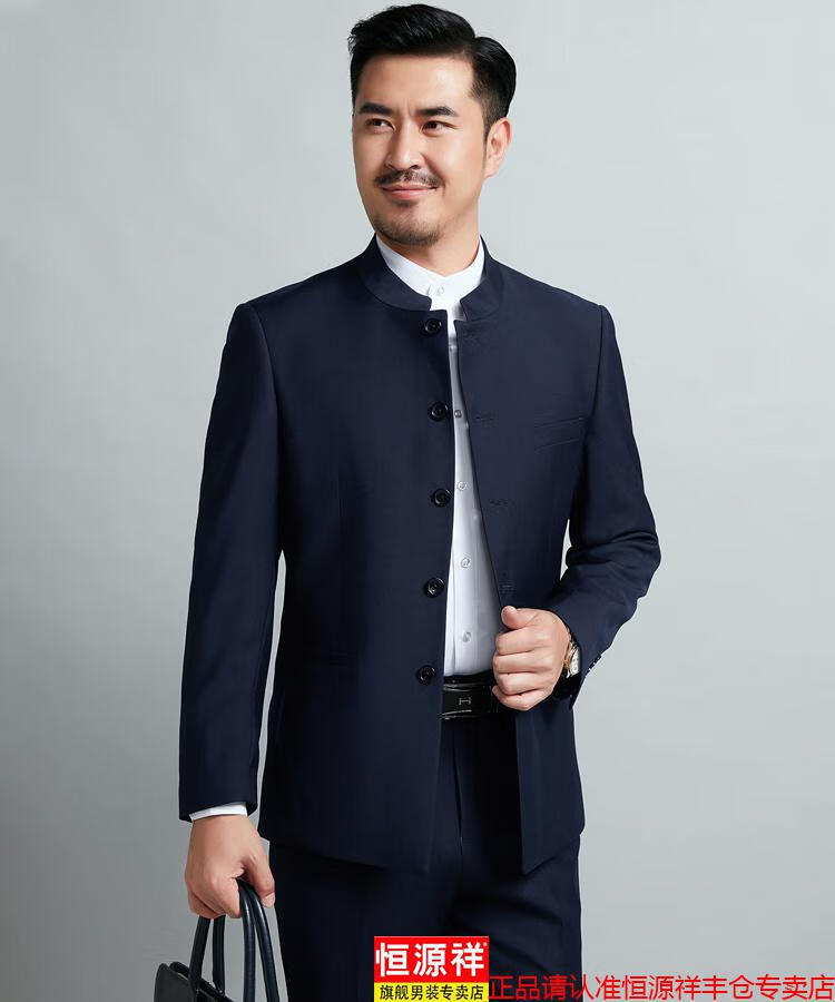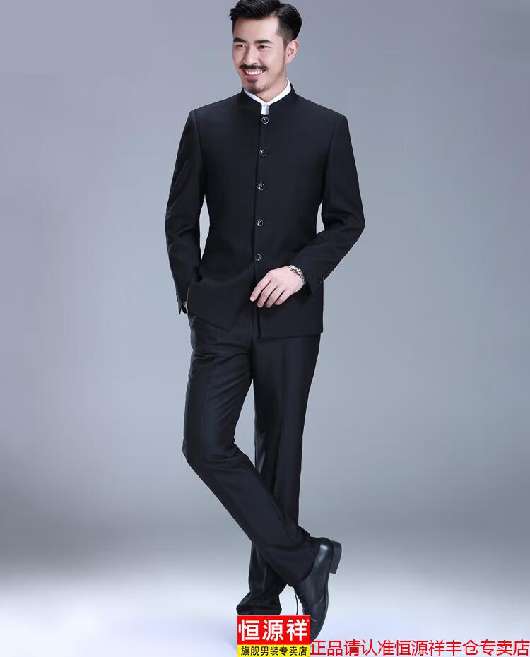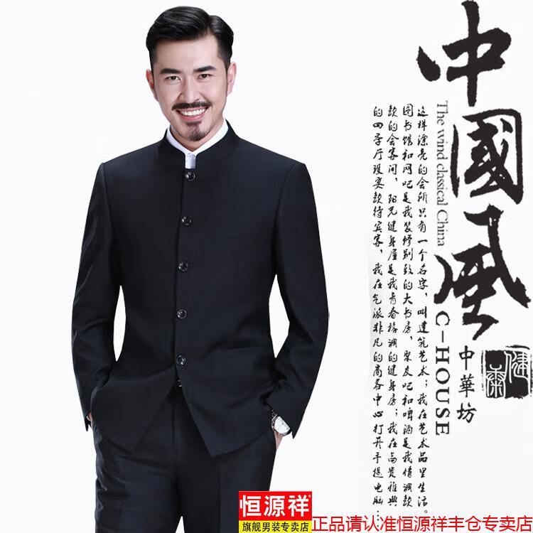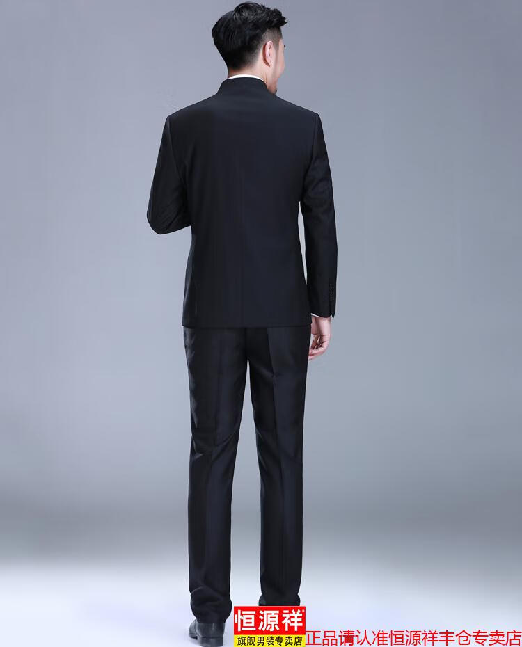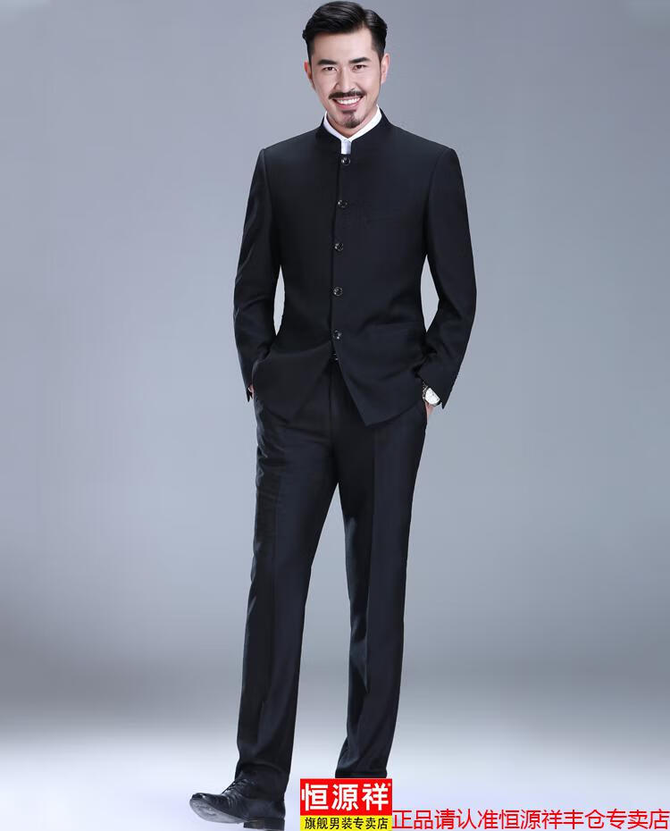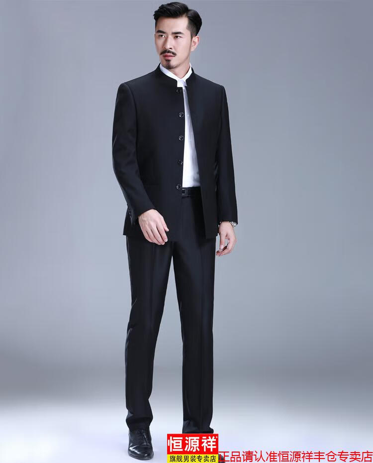 Hengyuanxiang light luxury high-end tunic suit men's high-end coat national style stand-up collar formal suit dad's wedding new Chinese style Tang suit stand-up collar black 2XL 185 A