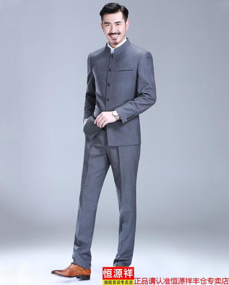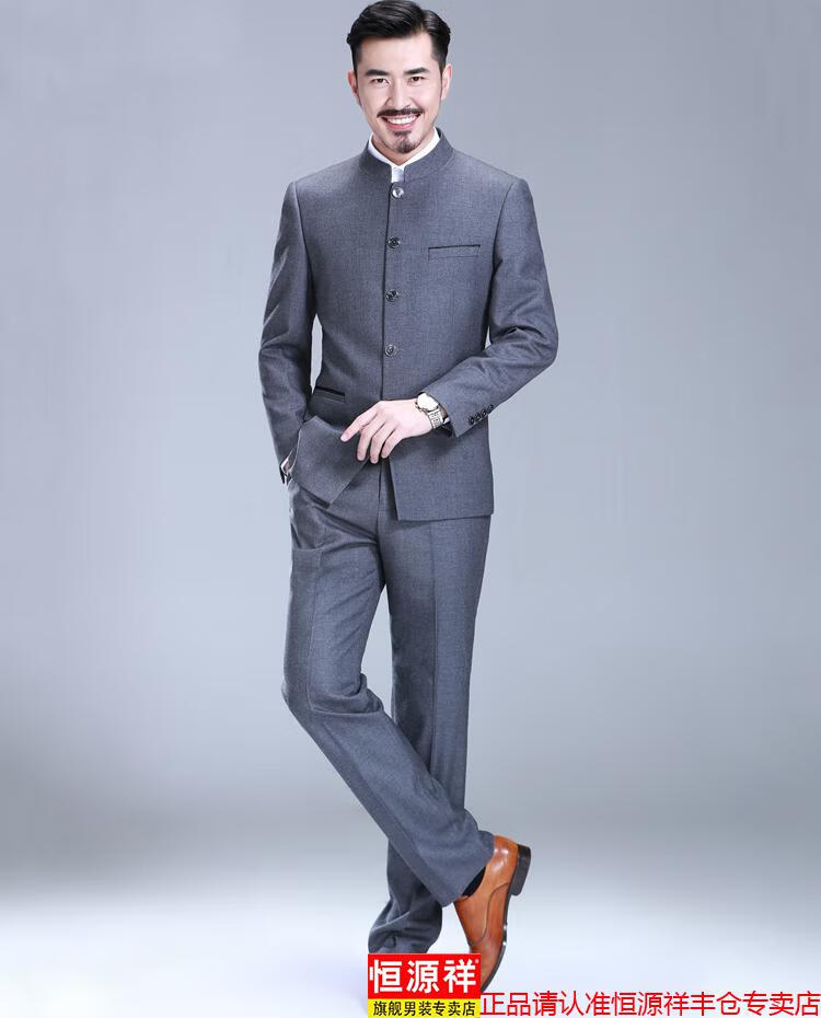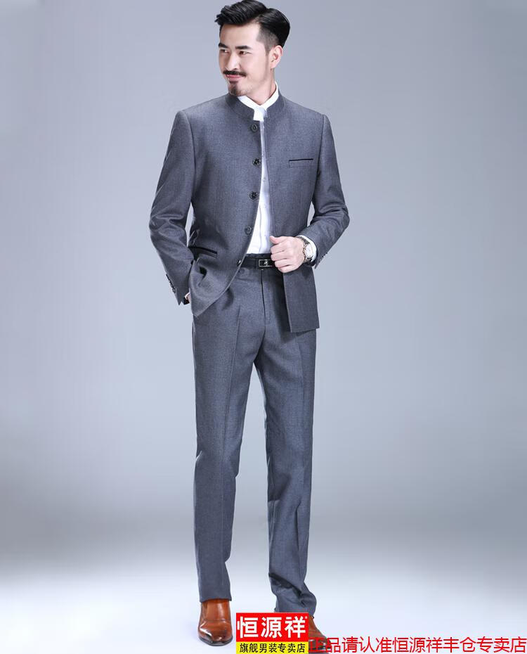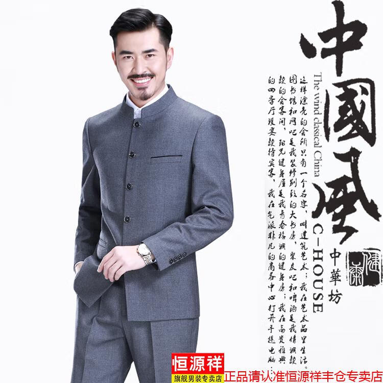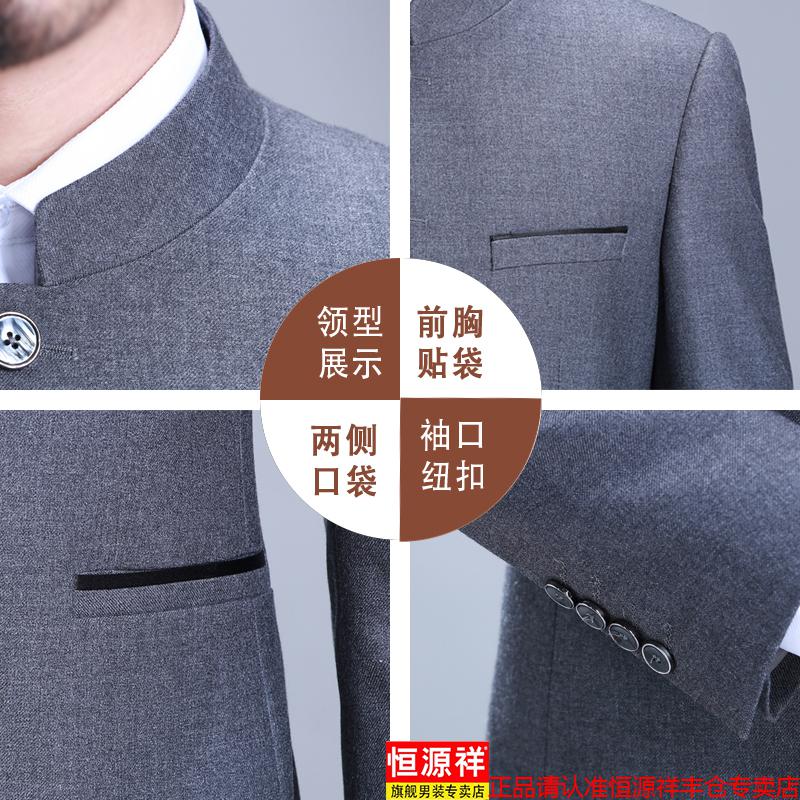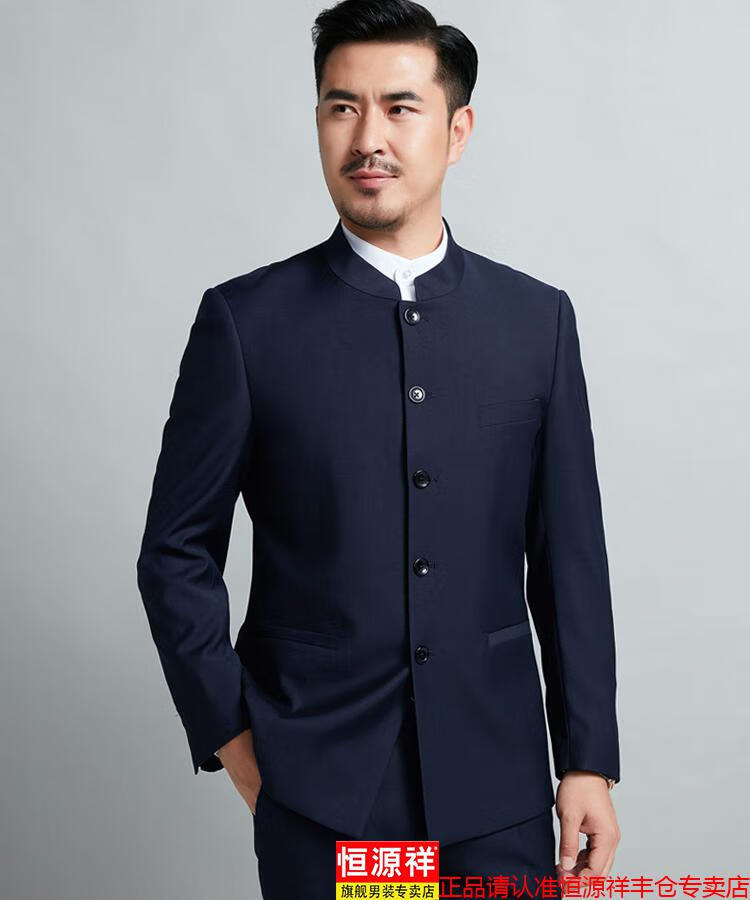 Hengyuanxiang light luxury high-end tunic suit men's high-end coat national style stand-up collar formal suit dad's wedding new Chinese style Tang suit stand-up collar black 2XL 185 A