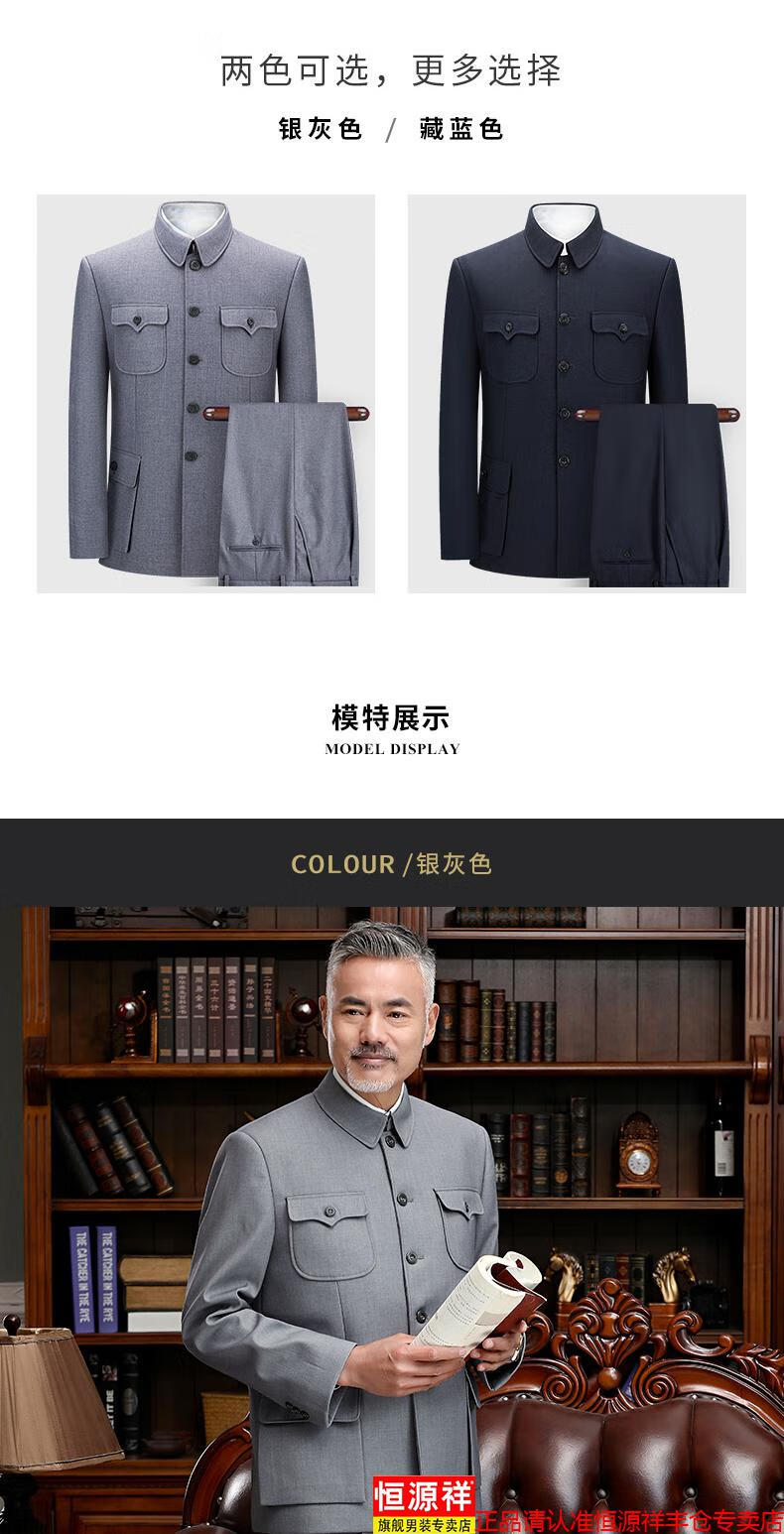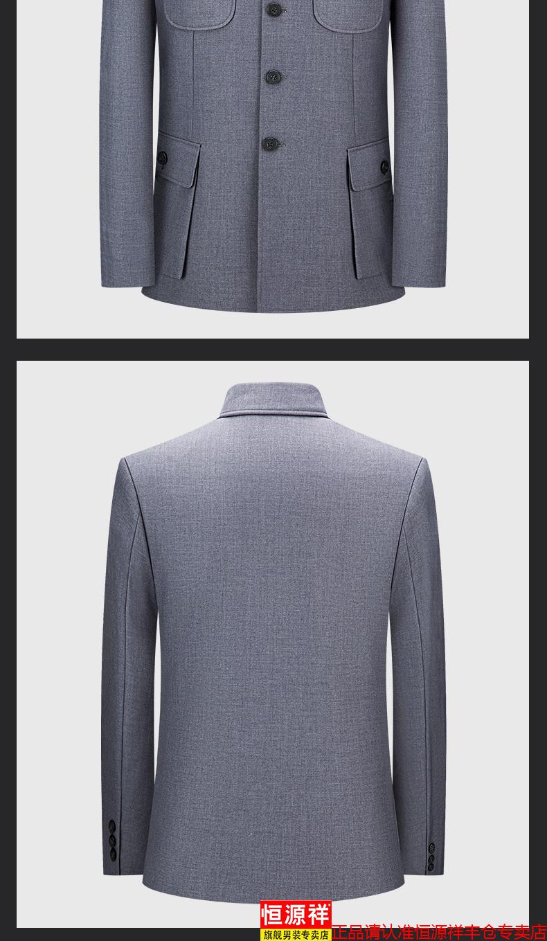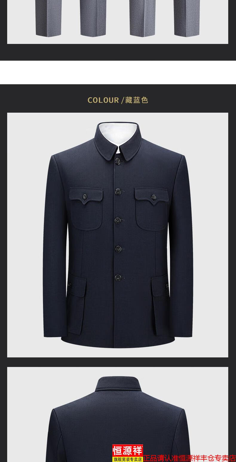 Hengyuanxiang high-end middle-aged and elderly autumn and winter Chinese tunic suits for daily business banquets for dads, Chinese style suits, Mao's tunic suits, navy blue S 165/70A