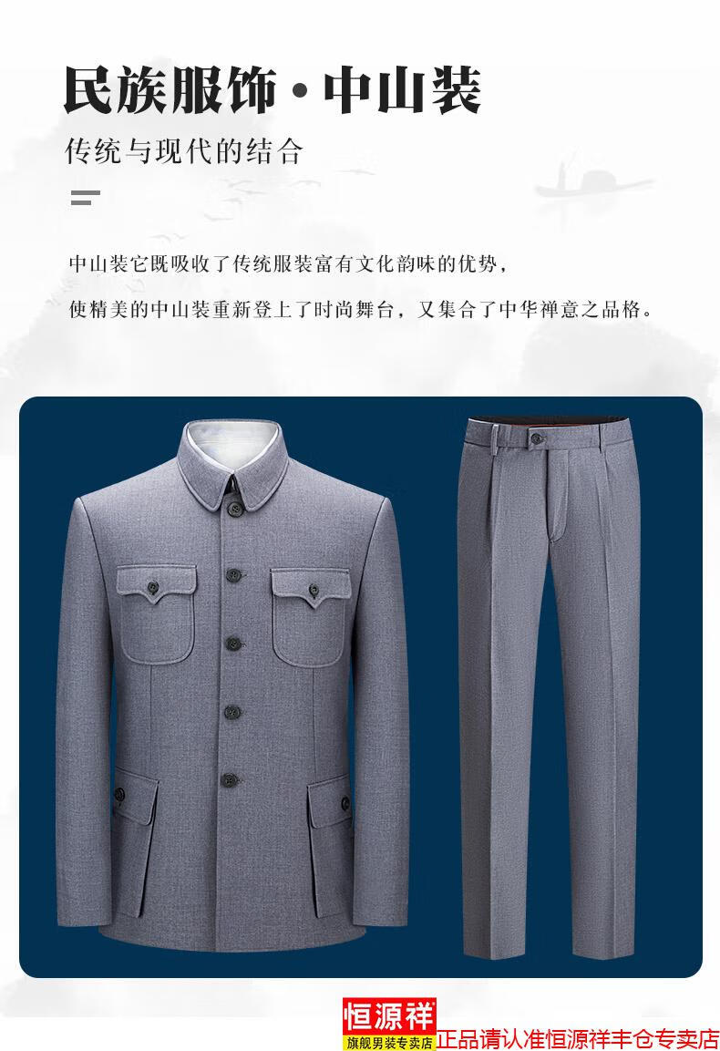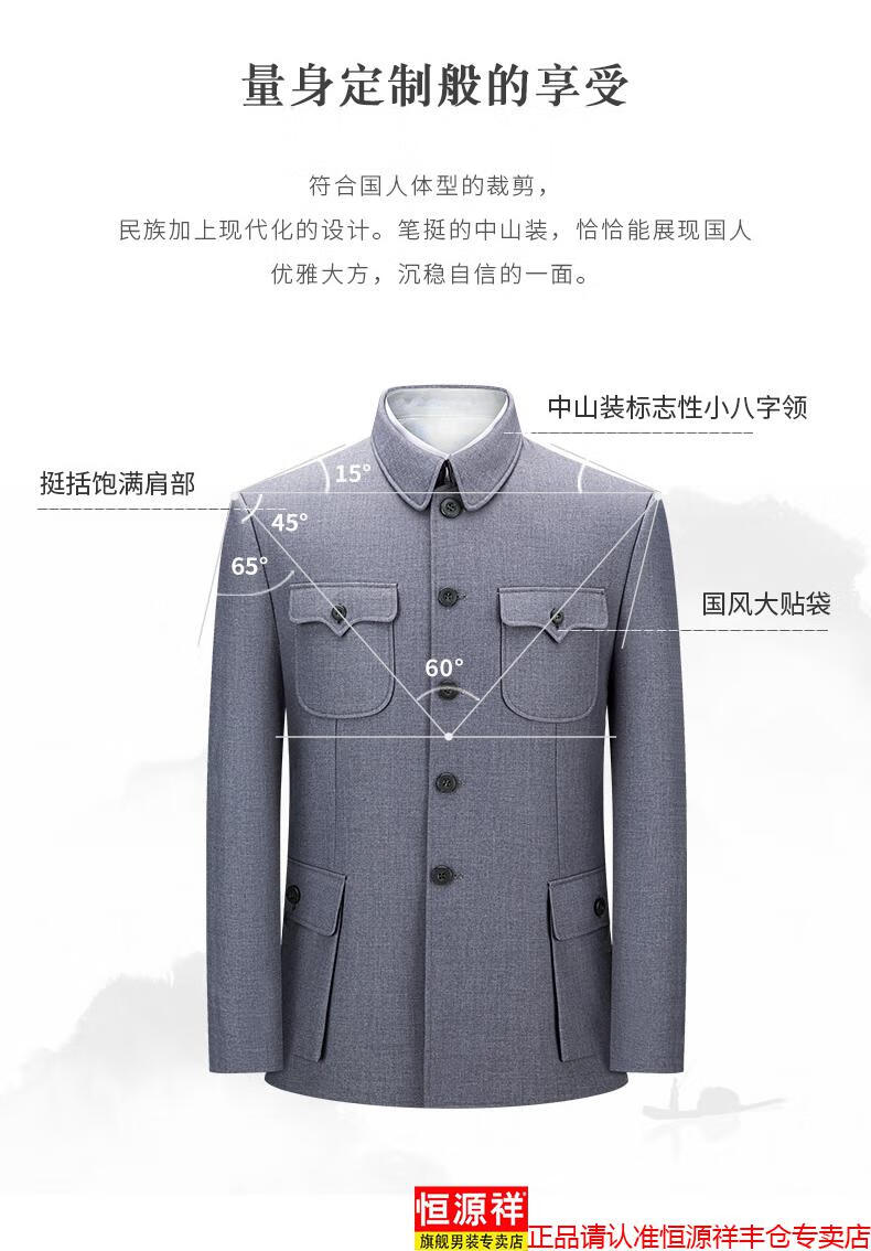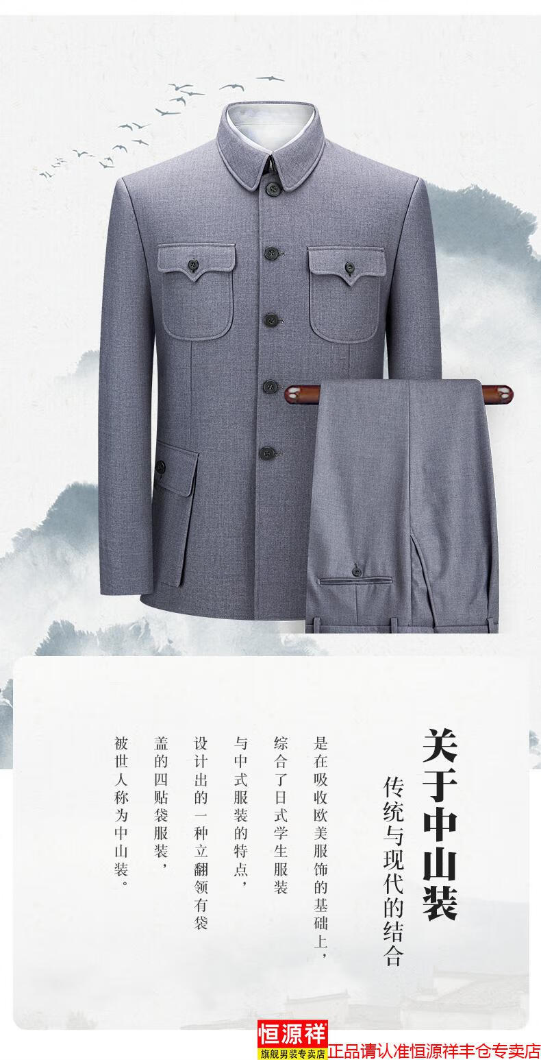 Hengyuanxiang high-end middle-aged and elderly autumn and winter Chinese tunic suits for daily business banquets for dads, Chinese style suits, Mao's tunic suits, navy blue S 165/70A