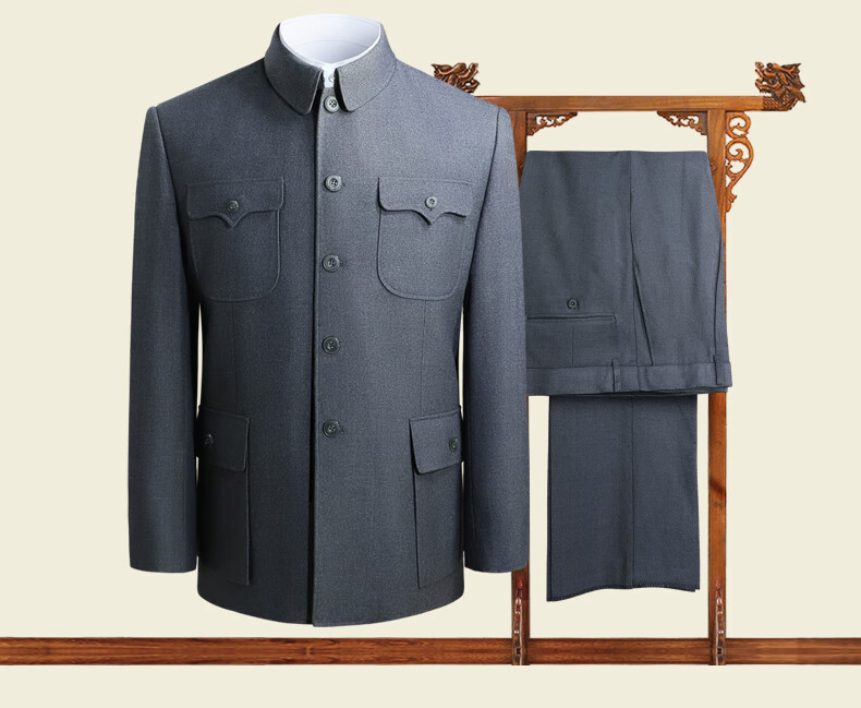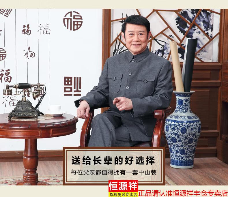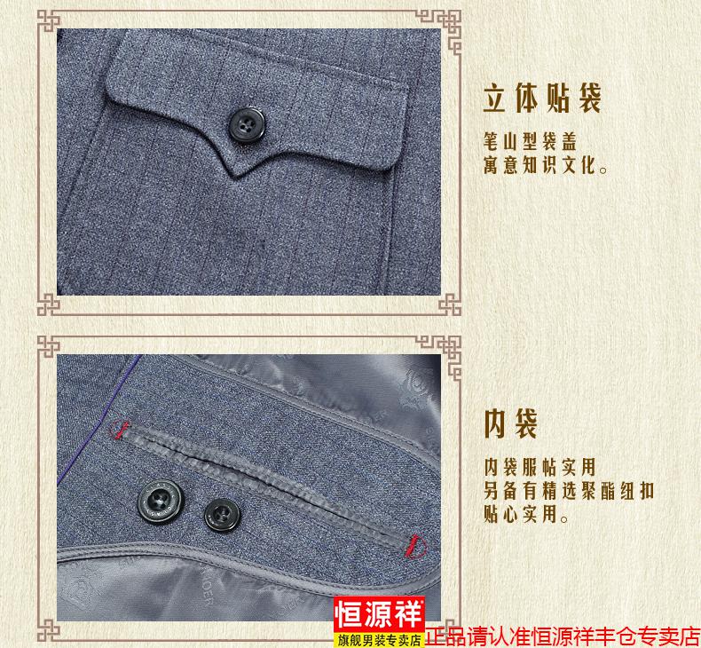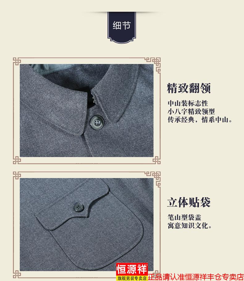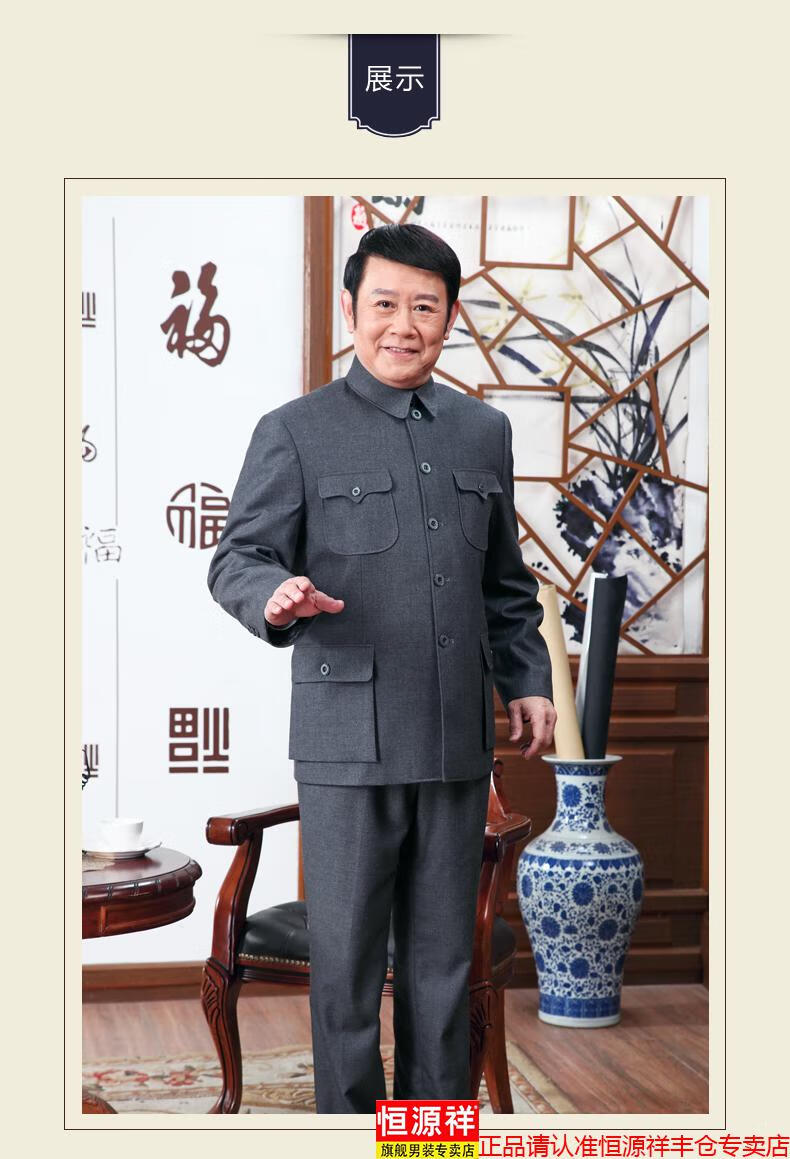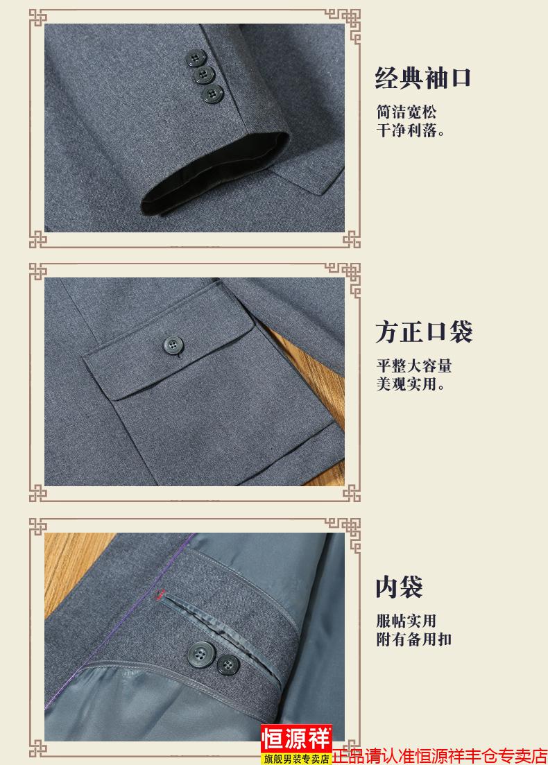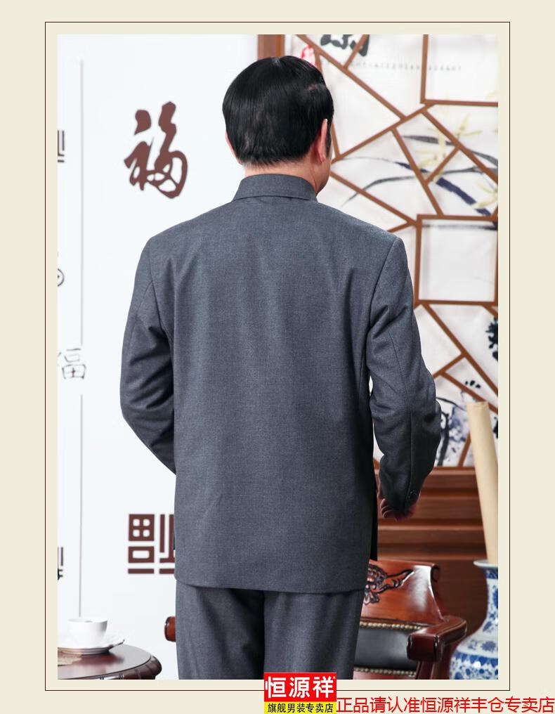 Hengyuanxiang high-end middle-aged and elderly tunic suit loose tunic suit dad spring and autumn suit men's Chinese stand-up collar grandpa suit 1308 gray 3XL 190/80