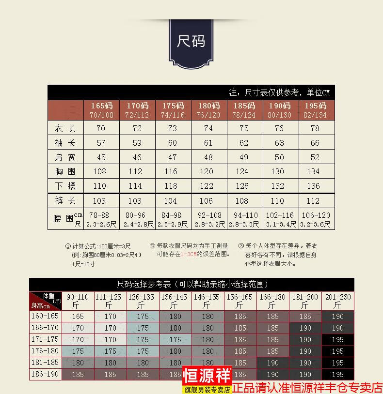 China (cm) 165 / 88-90 170 / 96-98 175 / 108-110 180 / 118-122 185 / 126-130