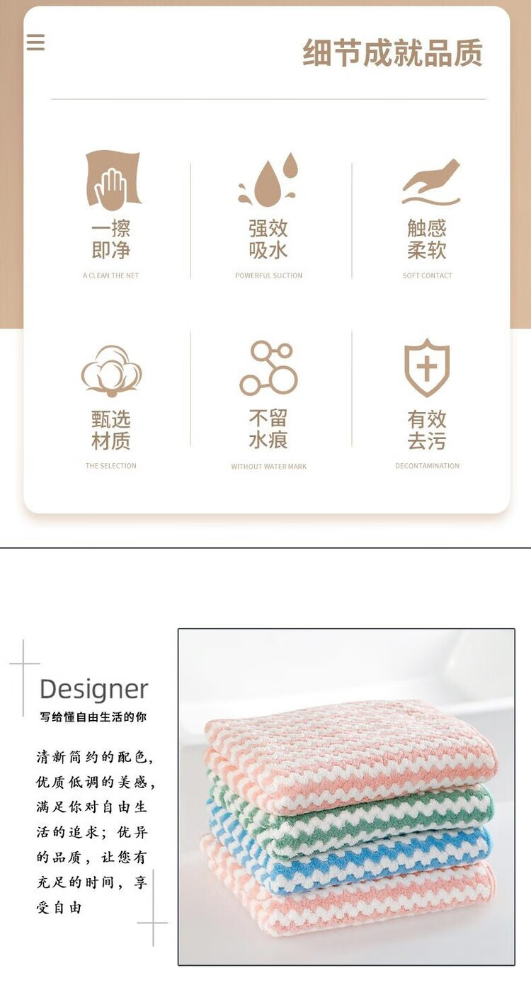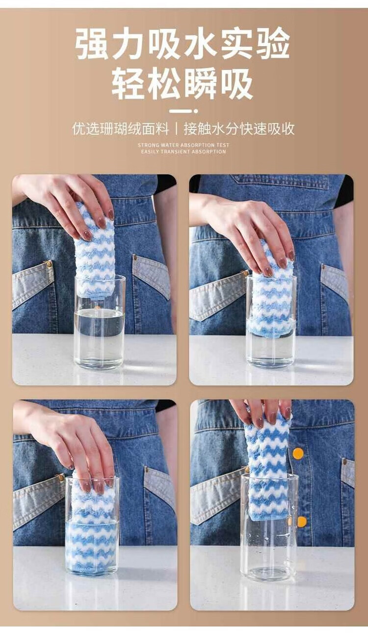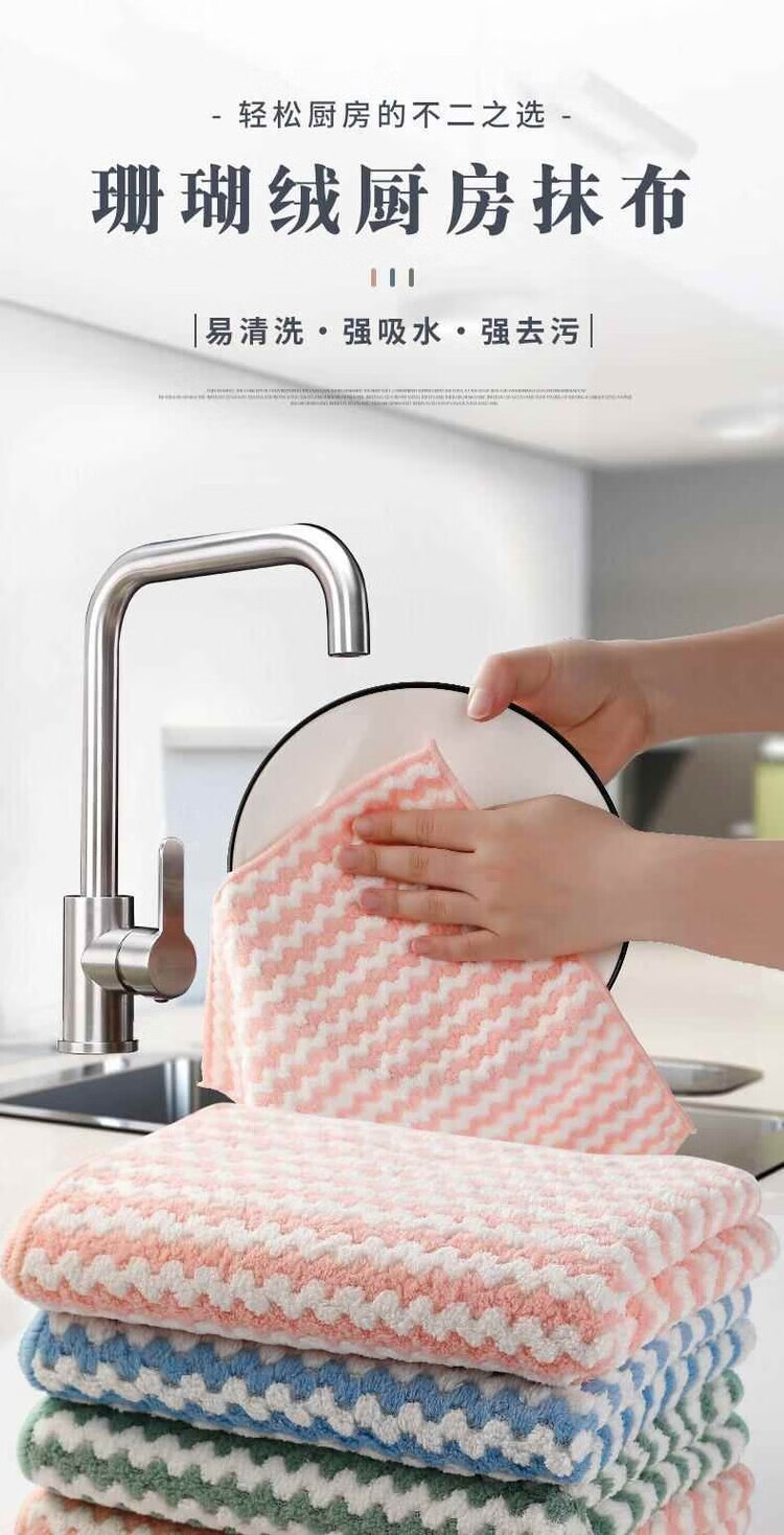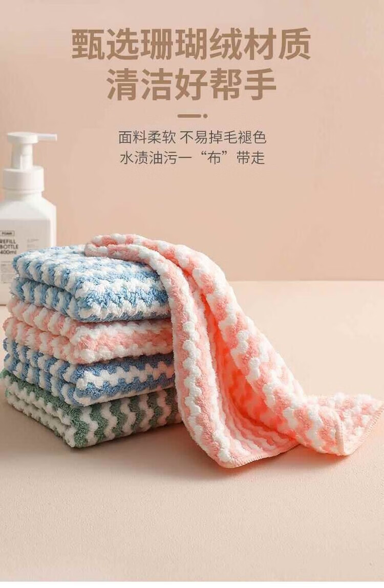Coral velvet dishcloth, kitchen rag, water-absorbent, non-greasy, housekeeping cleaning, coral velvet wavy rag - 1 piece in random colors