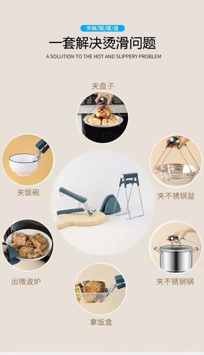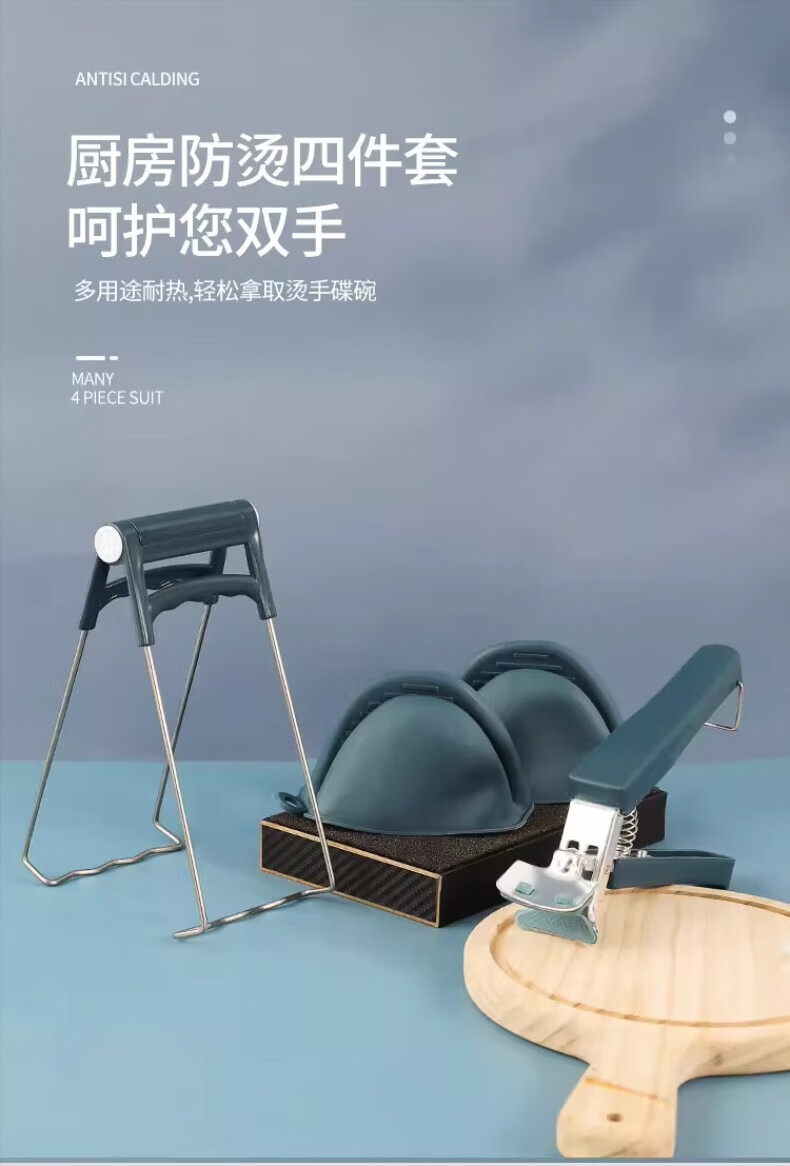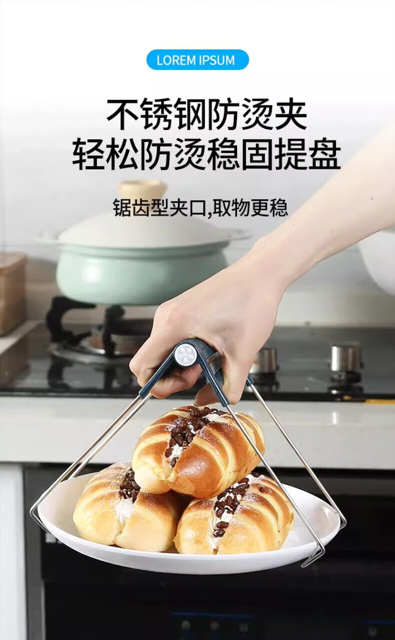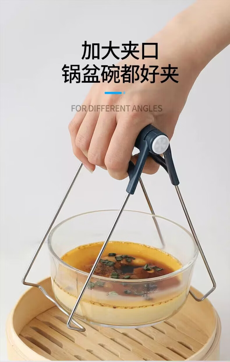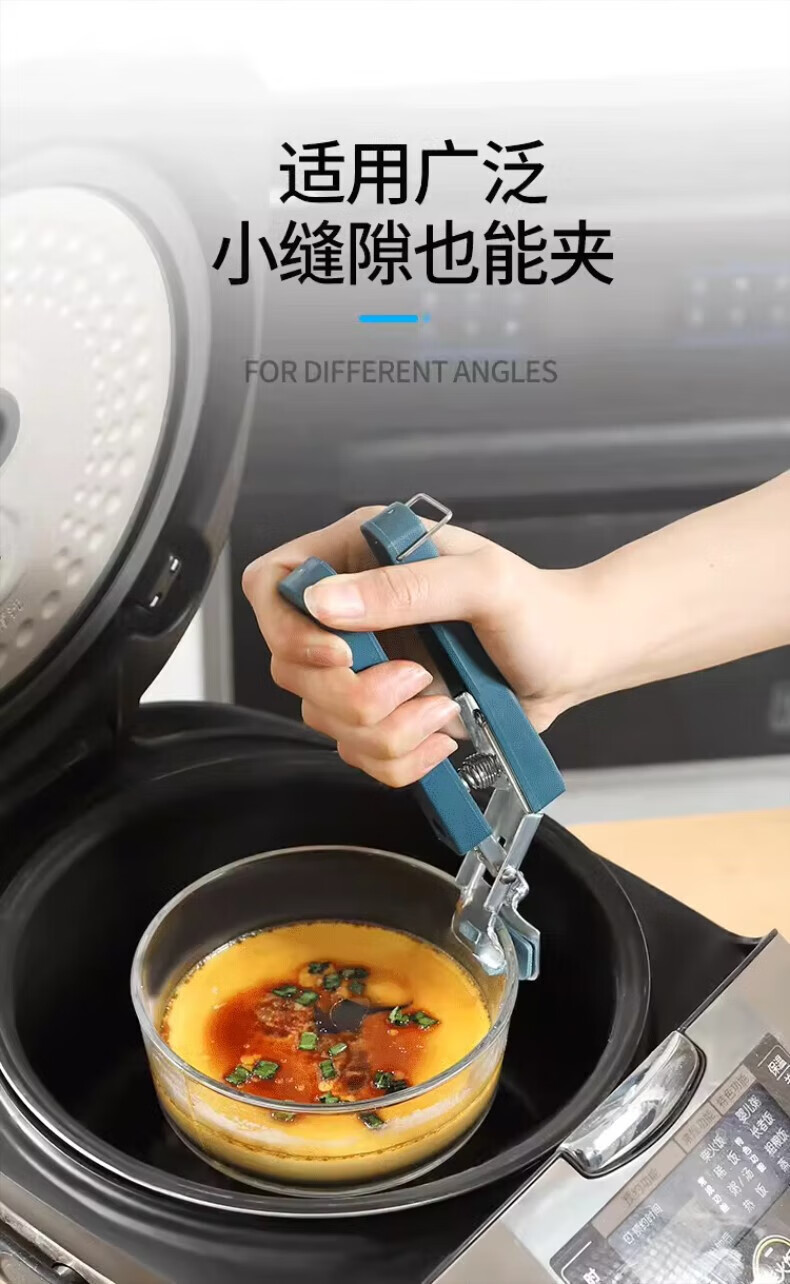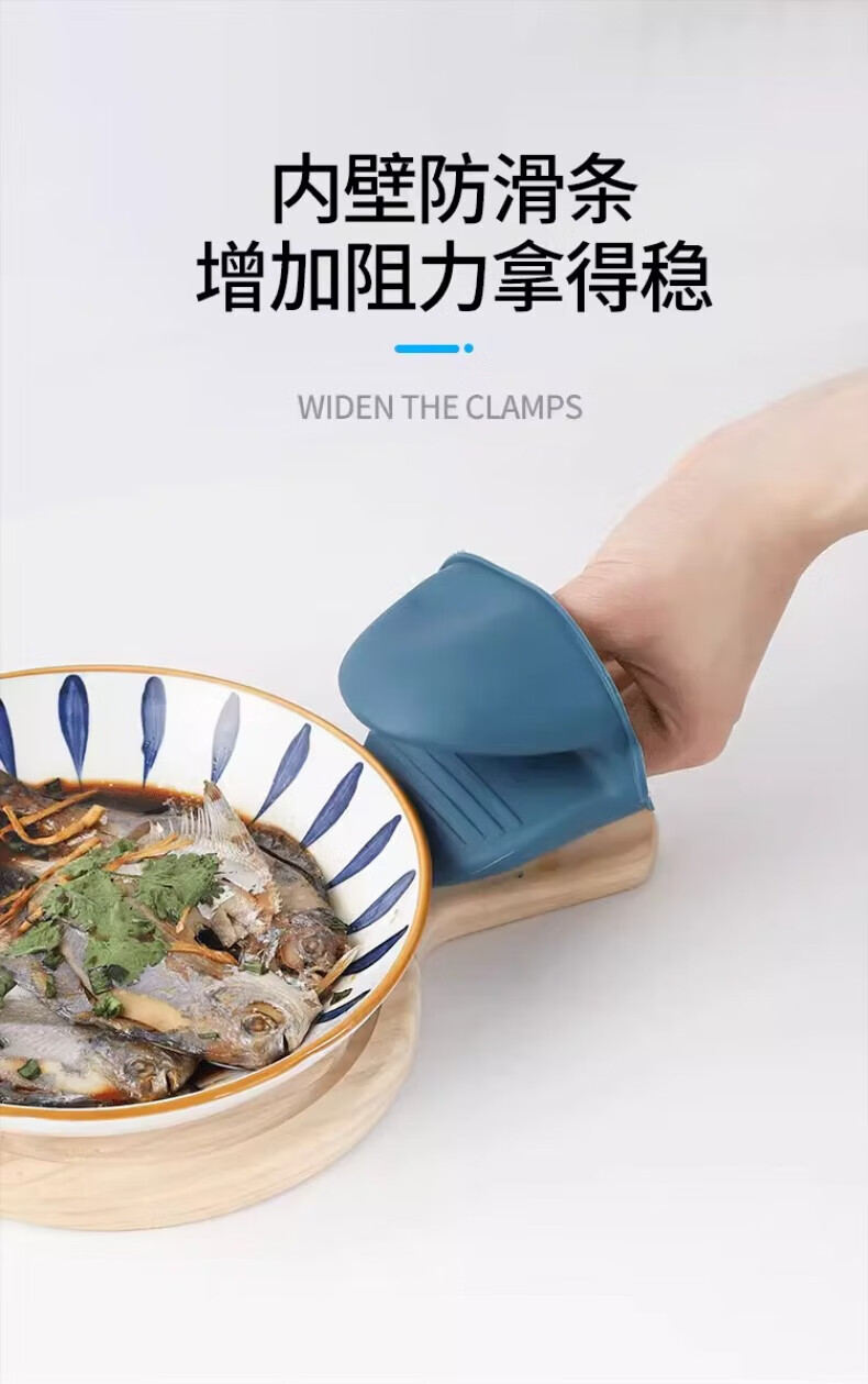 Anti-scalding bowl clip, silicone non-slip plate lifter, stainless steel bowl clip, kitchen microwave steaming dish removal clip, anti-scald clip, indigo, one pack
