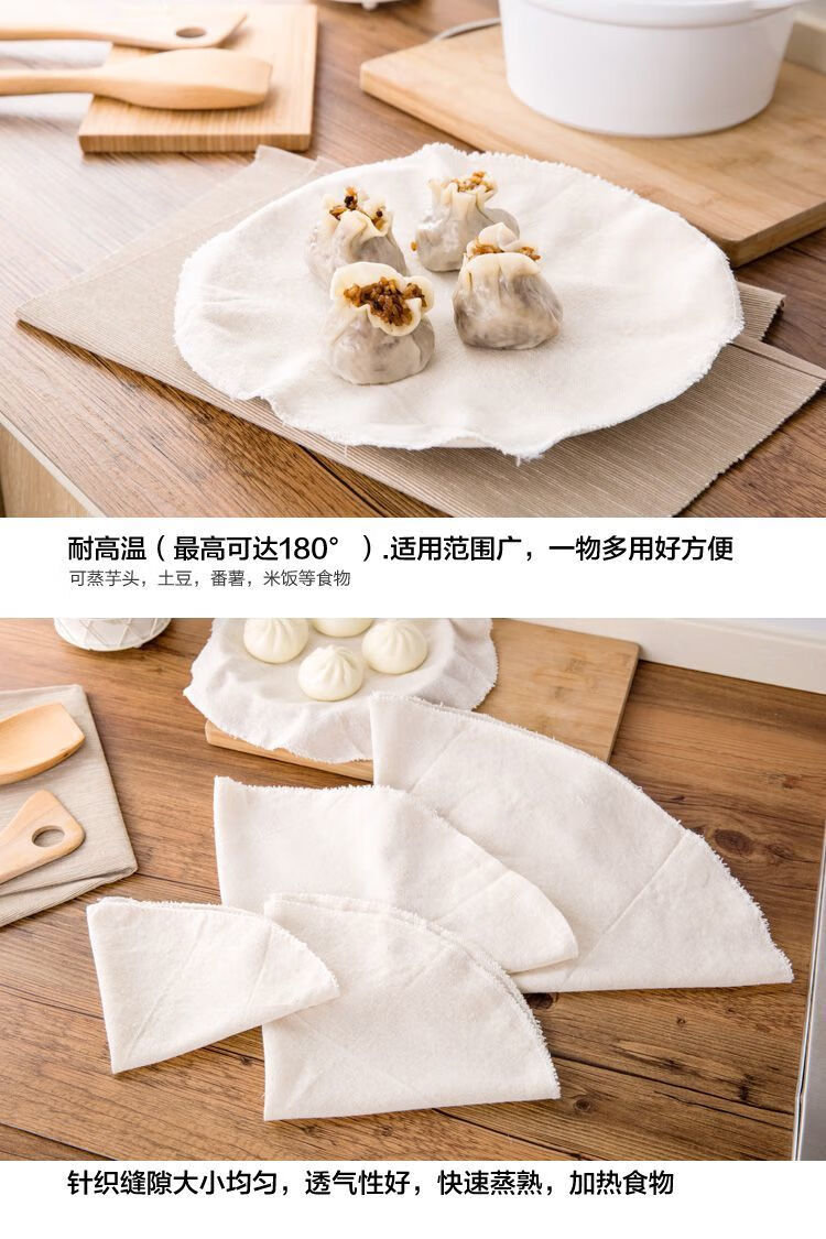 Steamer cloth, non-stick cotton gauze, food-grade steaming cloth, round steamed rice, steamed buns, buns, steamer pads 5-10 pieces thickened cotton steamer cloth *28cm Selected - 5 pieces