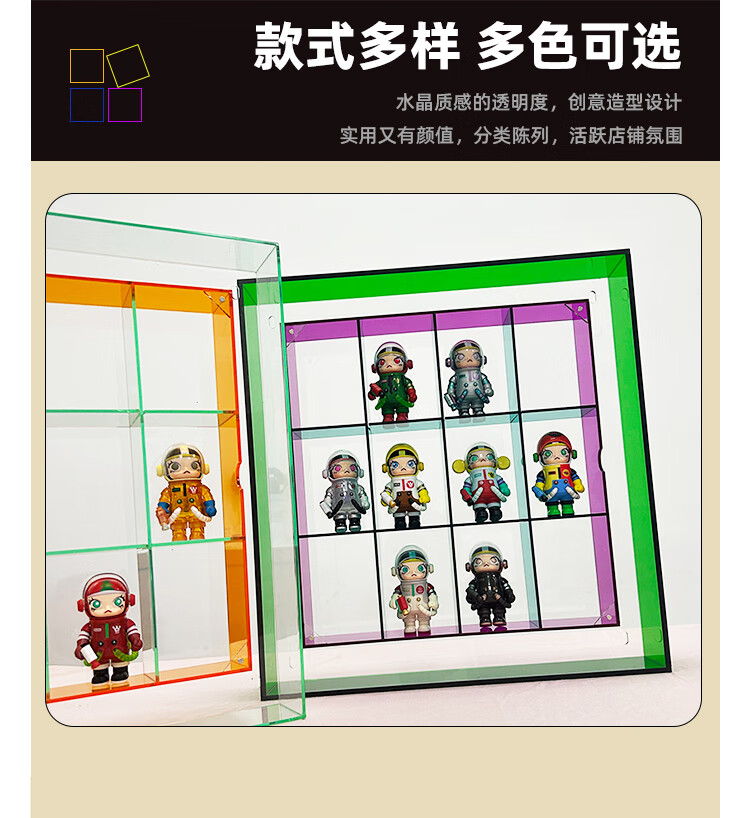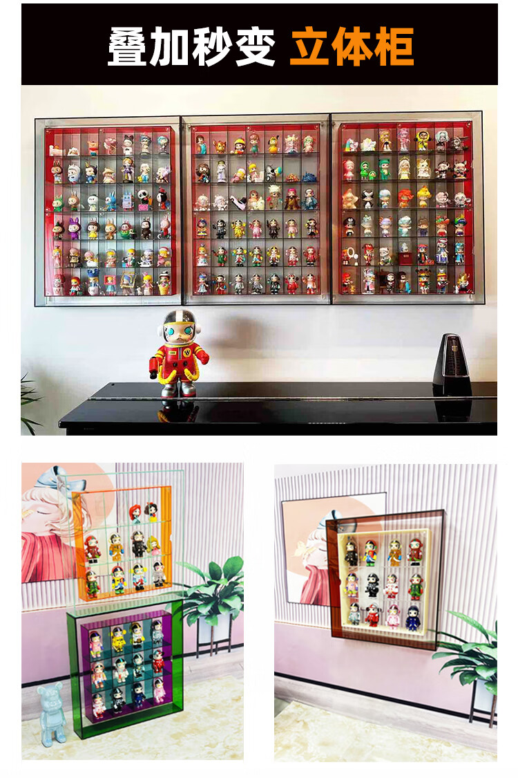 Bubble Mart floating wall hanging blind box doll doll ornaments desktop vertical color acrylic storage box Mickey exclusive