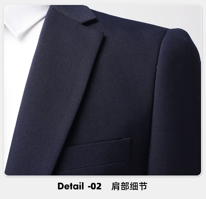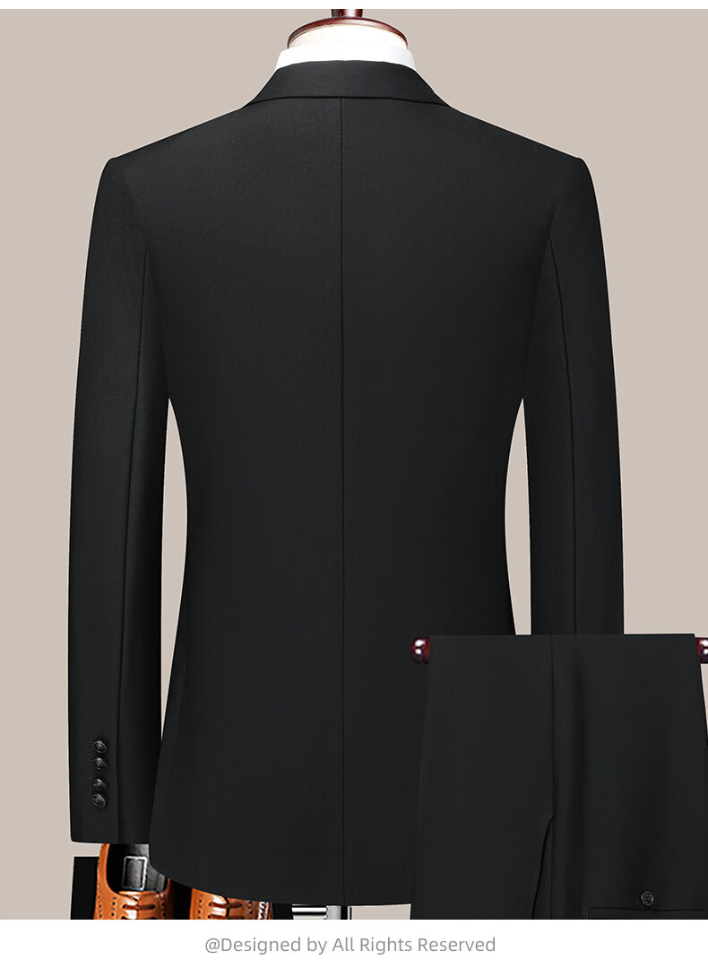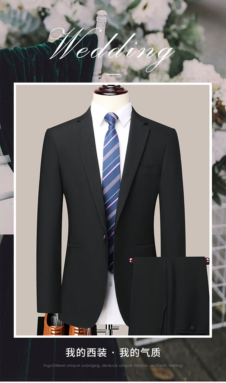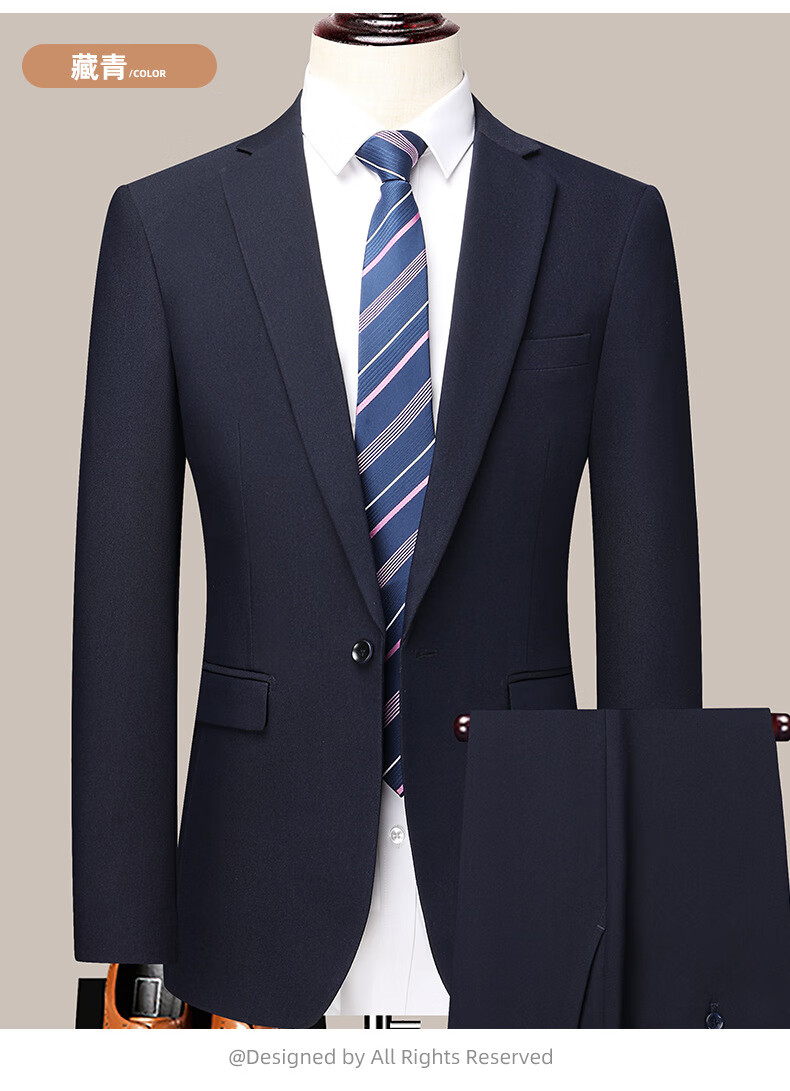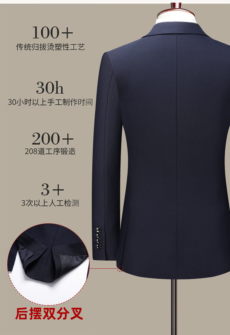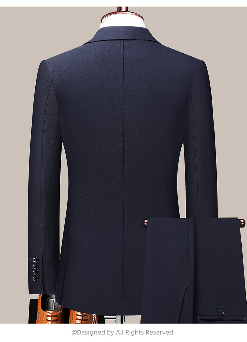 Pierre Cardin Solid Color Double Slit No-Iron Suit Youth Suit Men's Business Suit Korean Slim Formal Wedding Suit Navy 3XL 190