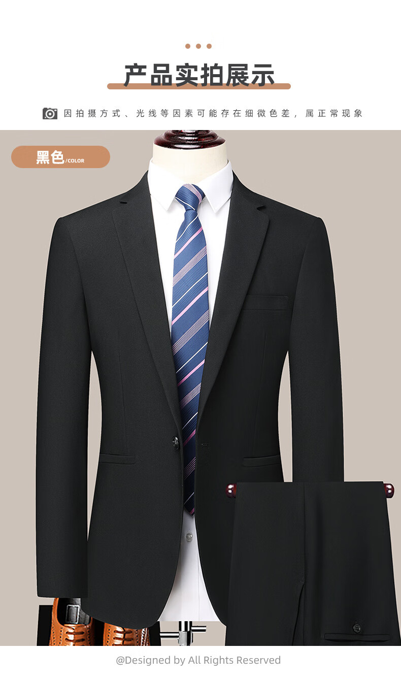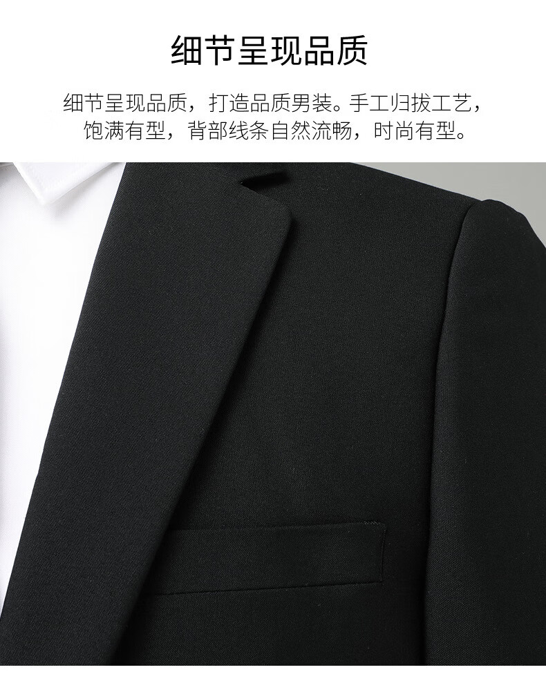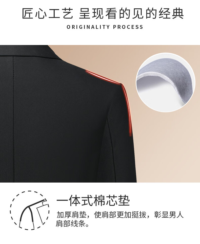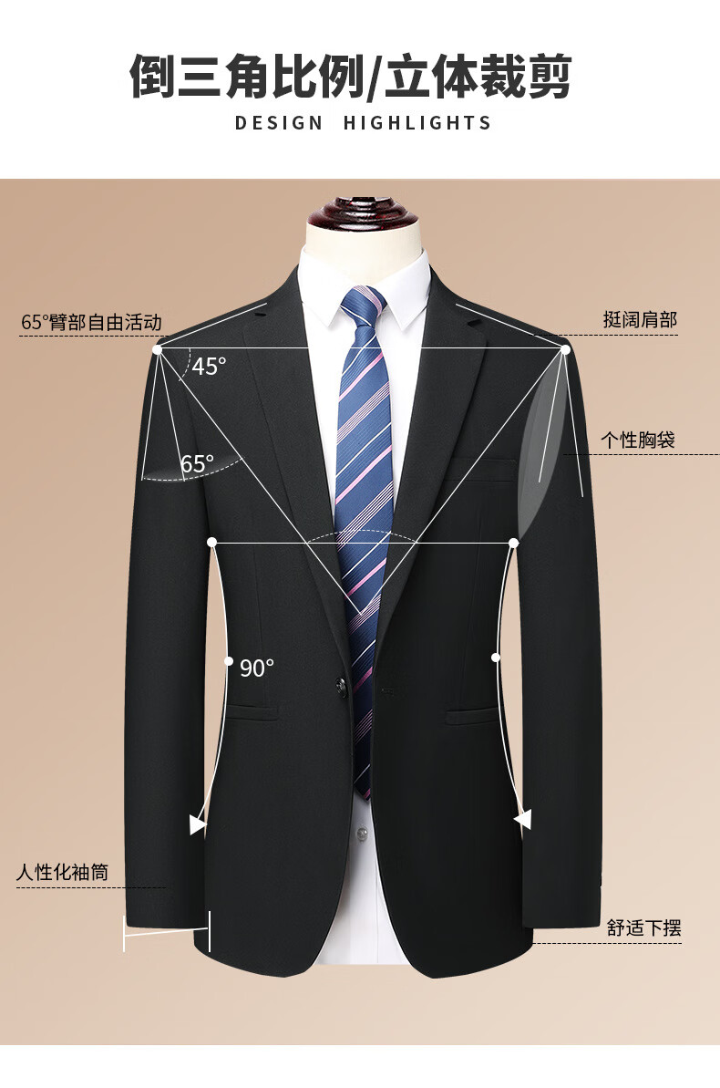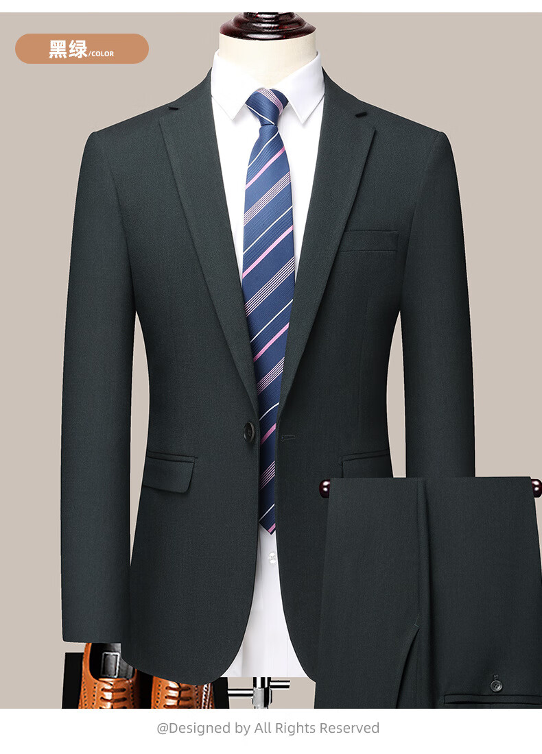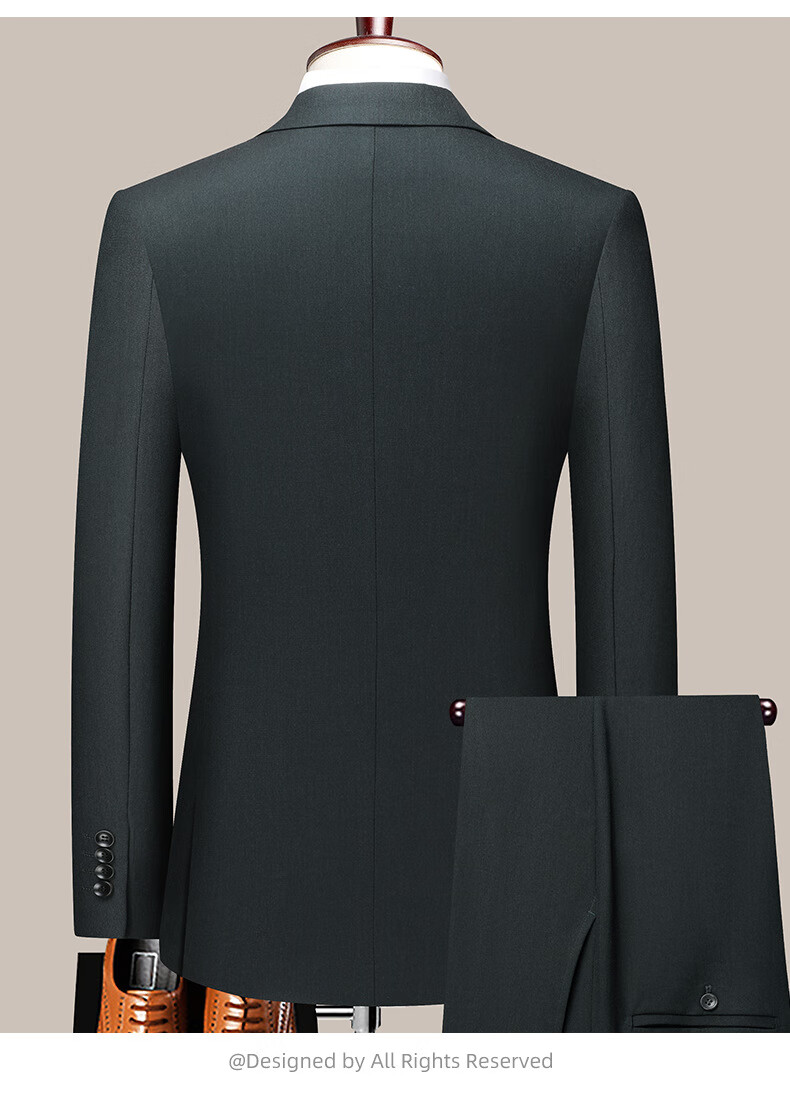 Pierre Cardin Solid Color Double Slit No-Iron Suit Youth Suit Men's Business Suit Korean Slim Formal Wedding Suit Navy 3XL 190