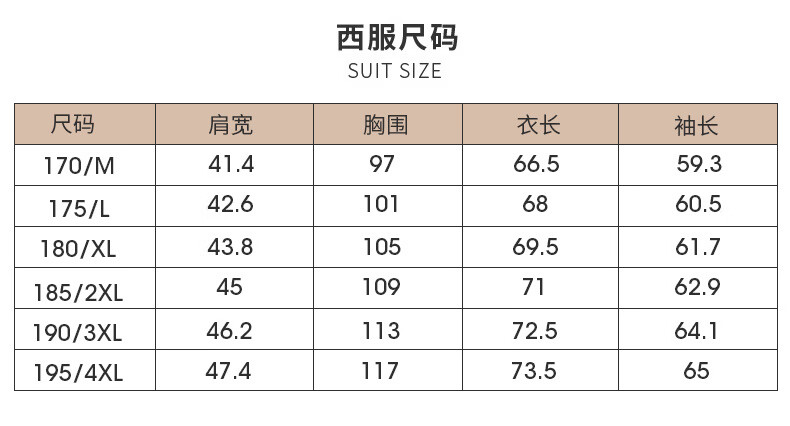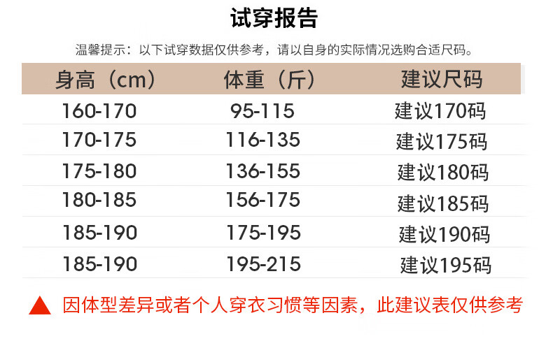China (cm) 165 / 88-90 170 / 96-98 175 / 108-110 180 / 118-122 185 / 126-130