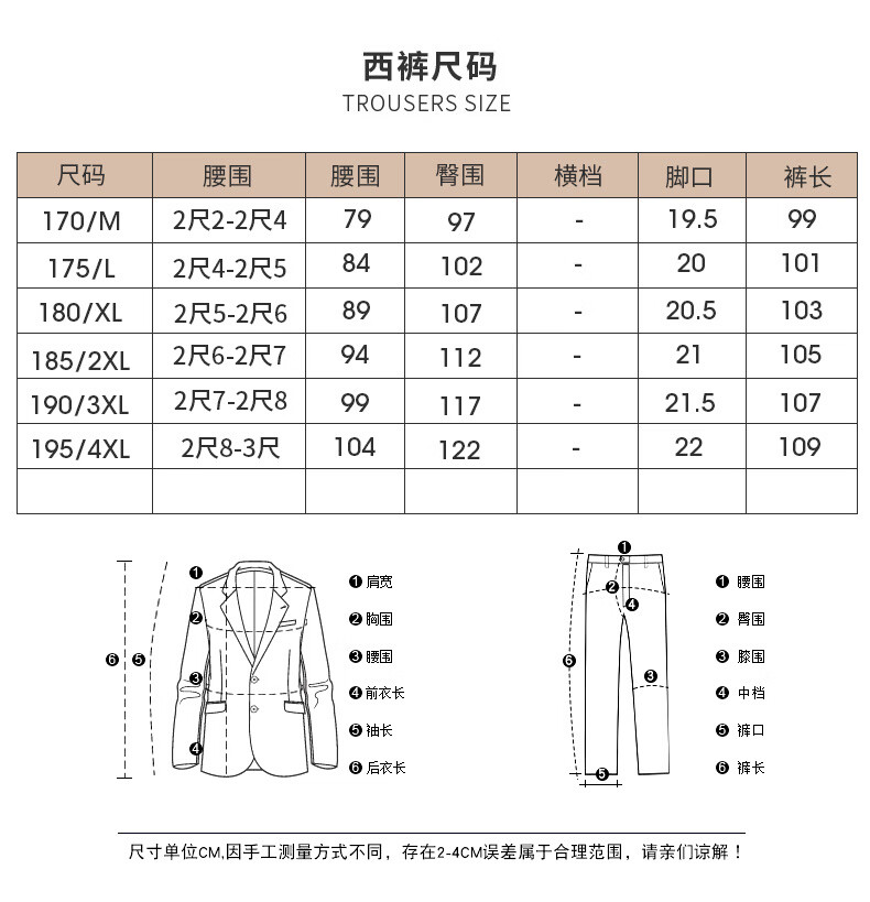 Outseam (cm) 99 cm 101.5 cm 104 cm 106.5 cm 109 cm