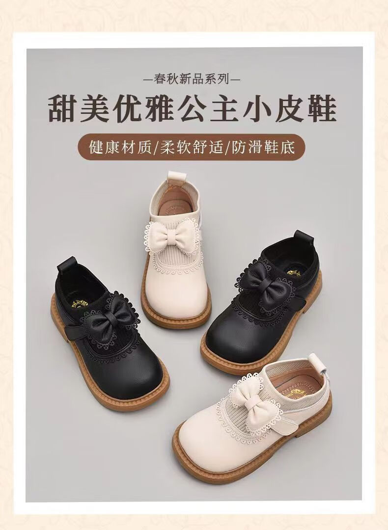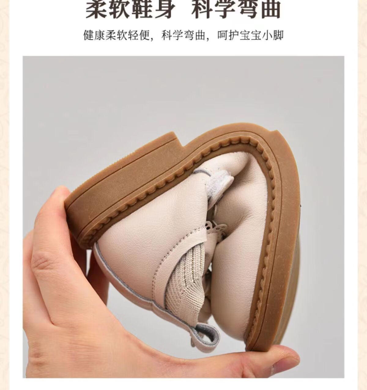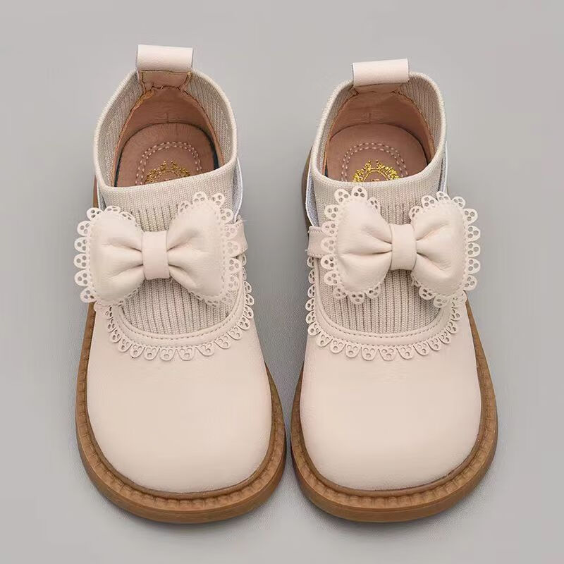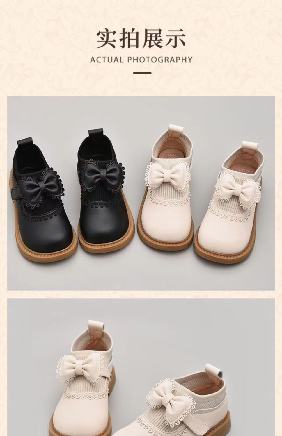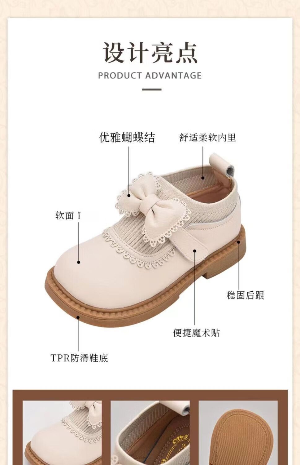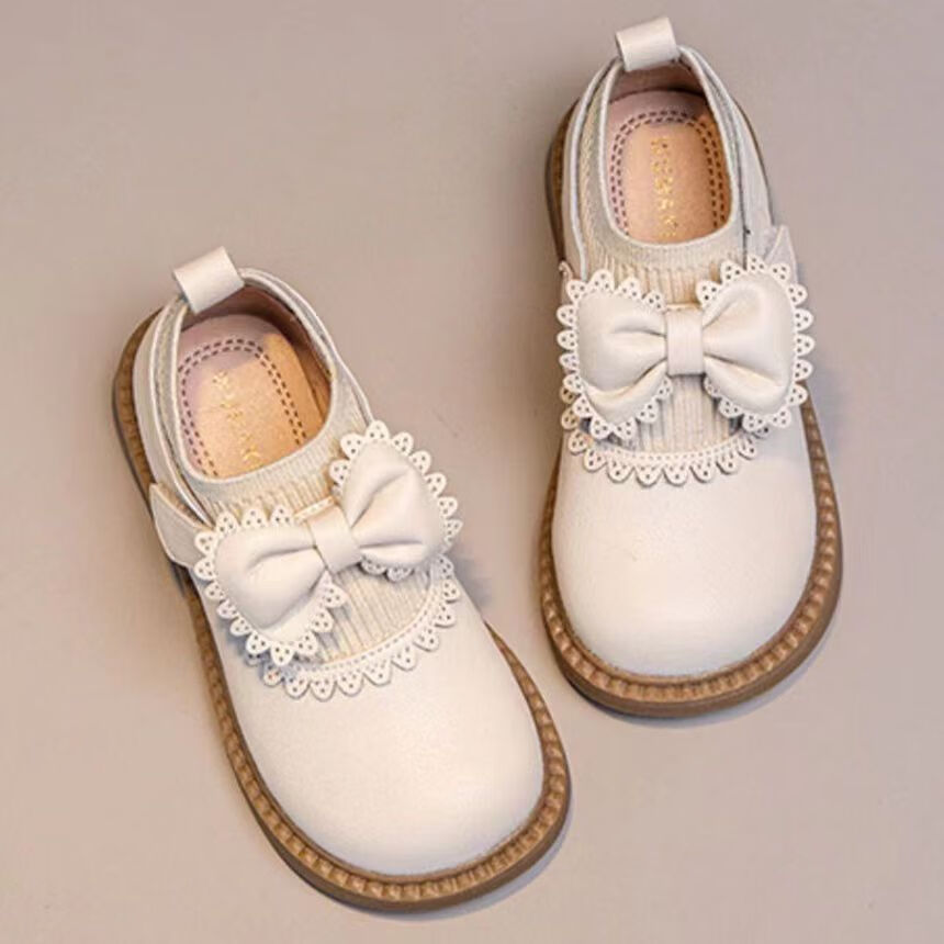G.duck Little Yellow Duck Girls' Shoes Super Soft Leather Shoes 2026 Spring and Autumn New Elastic Socks Princess Shoes Versatile Children's Shoes Off-White (Add 1cm to your foot length when ordering) 29 (inner length 18cm)
