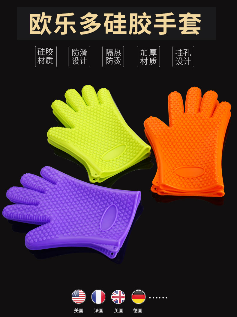 Olodo German silicone anti-scald gloves, high temperature resistant, heat-proof gloves, microwave gloves, oven insulation gloves, non-slip gloves, 2-pack of anti-scald gloves (glare purple)