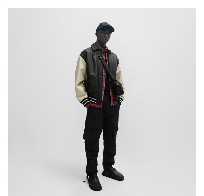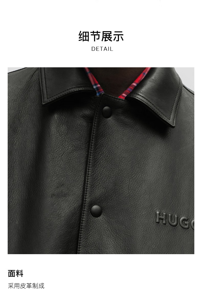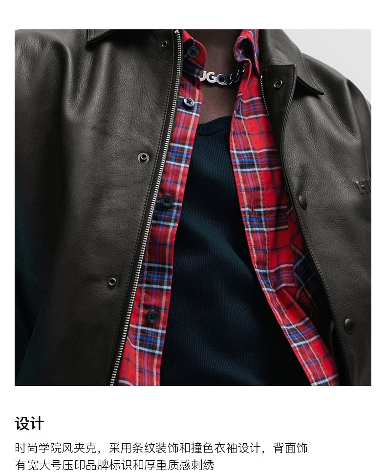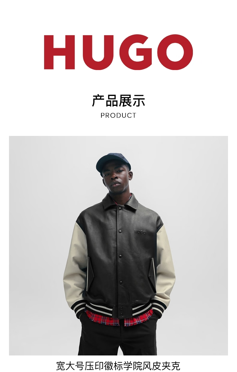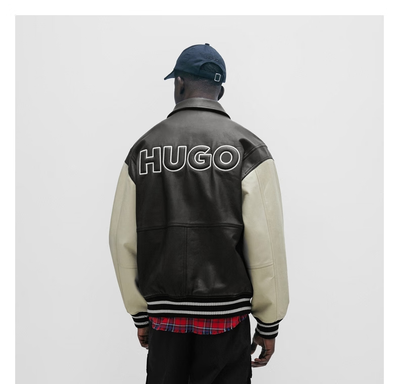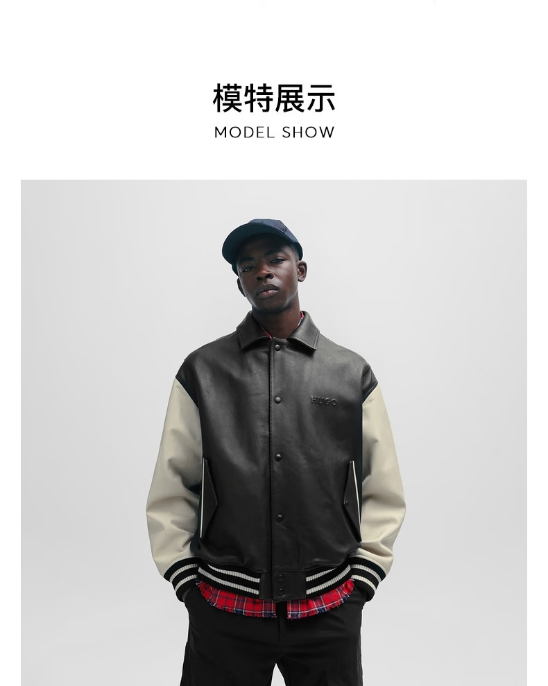 BOSS Daimaru Kalimaru same style 24 spring and summer new wide version college style casual leather jacket 001-Black S