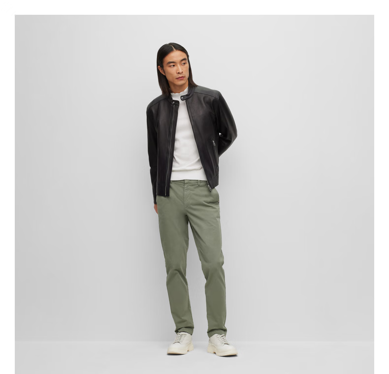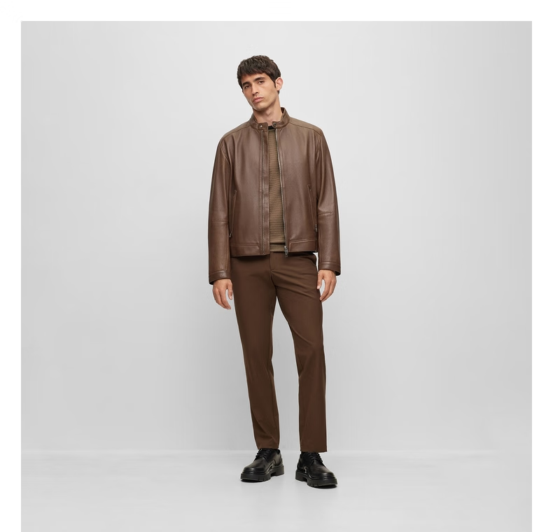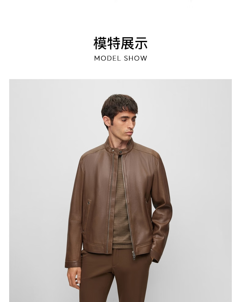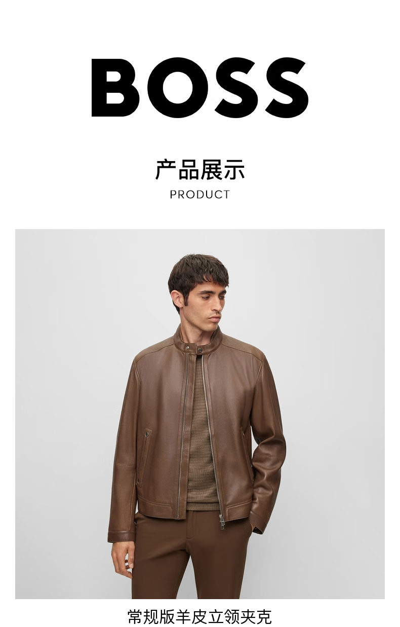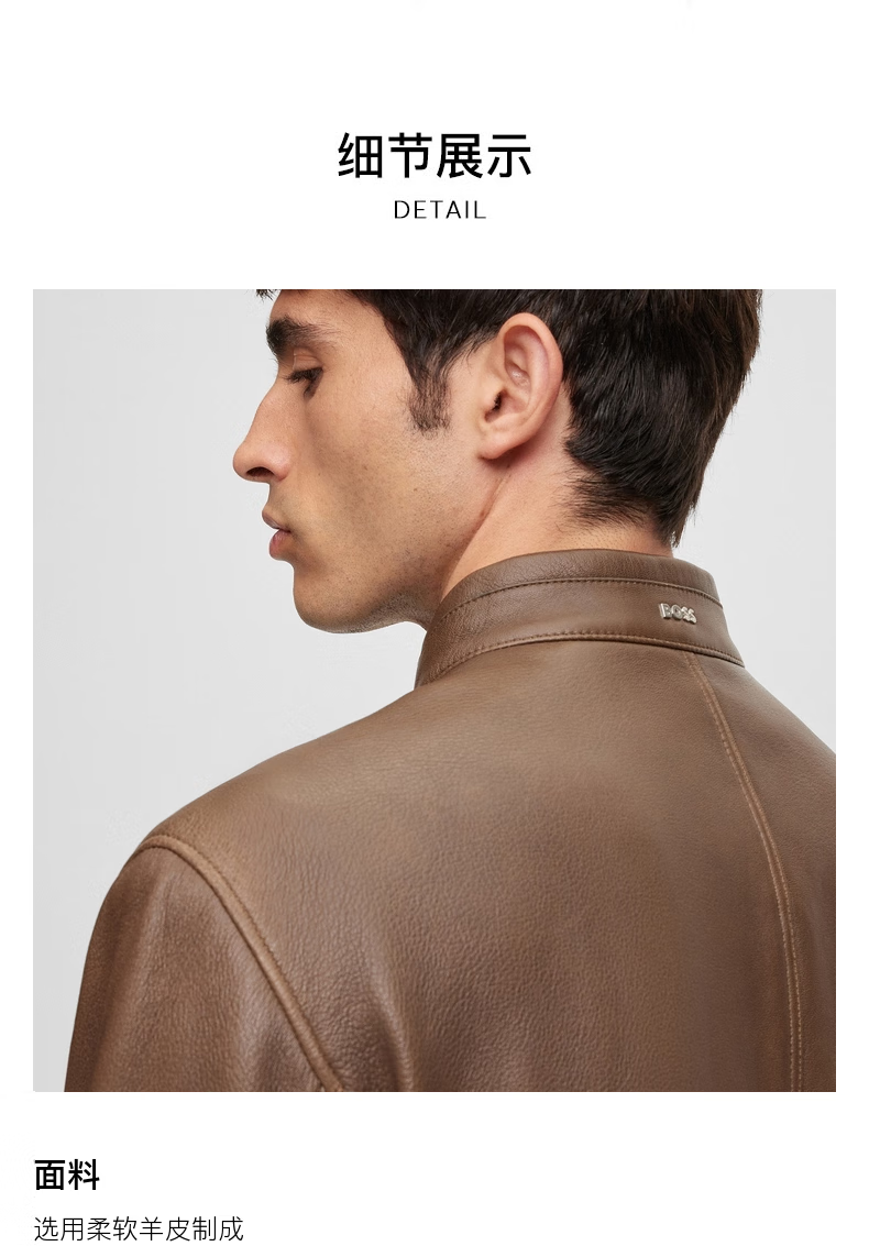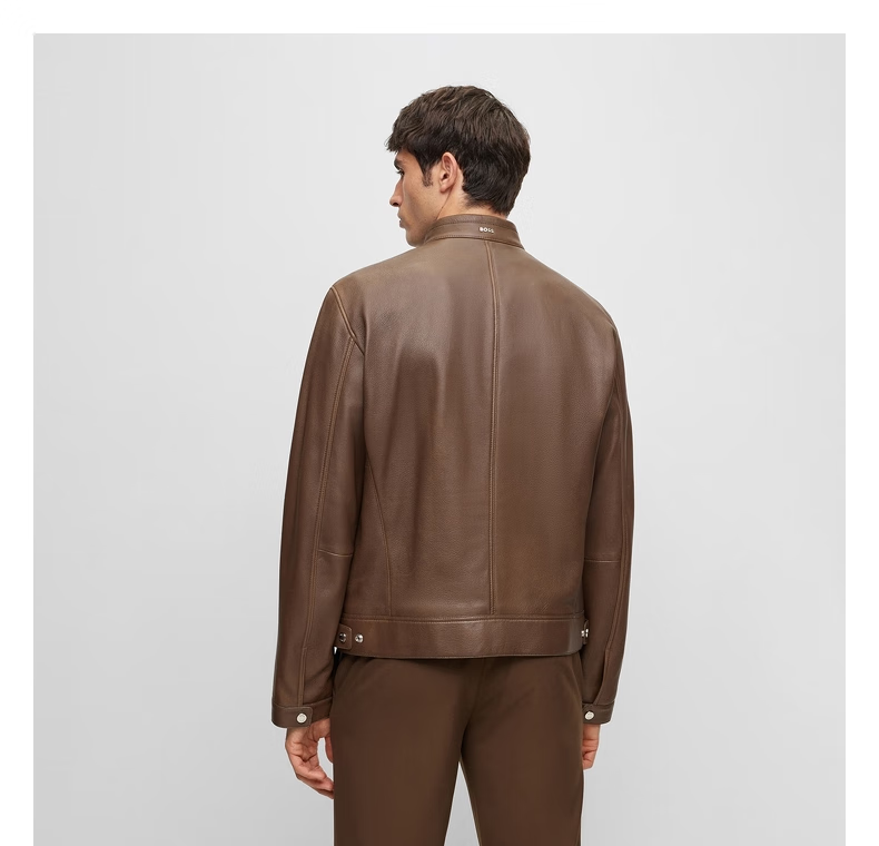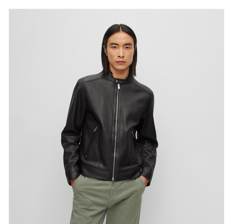 BOSS Motorcycle Leather Jacket Men's Fashionable Casual Stand Collar Sheepskin Jacket 001-Black 50